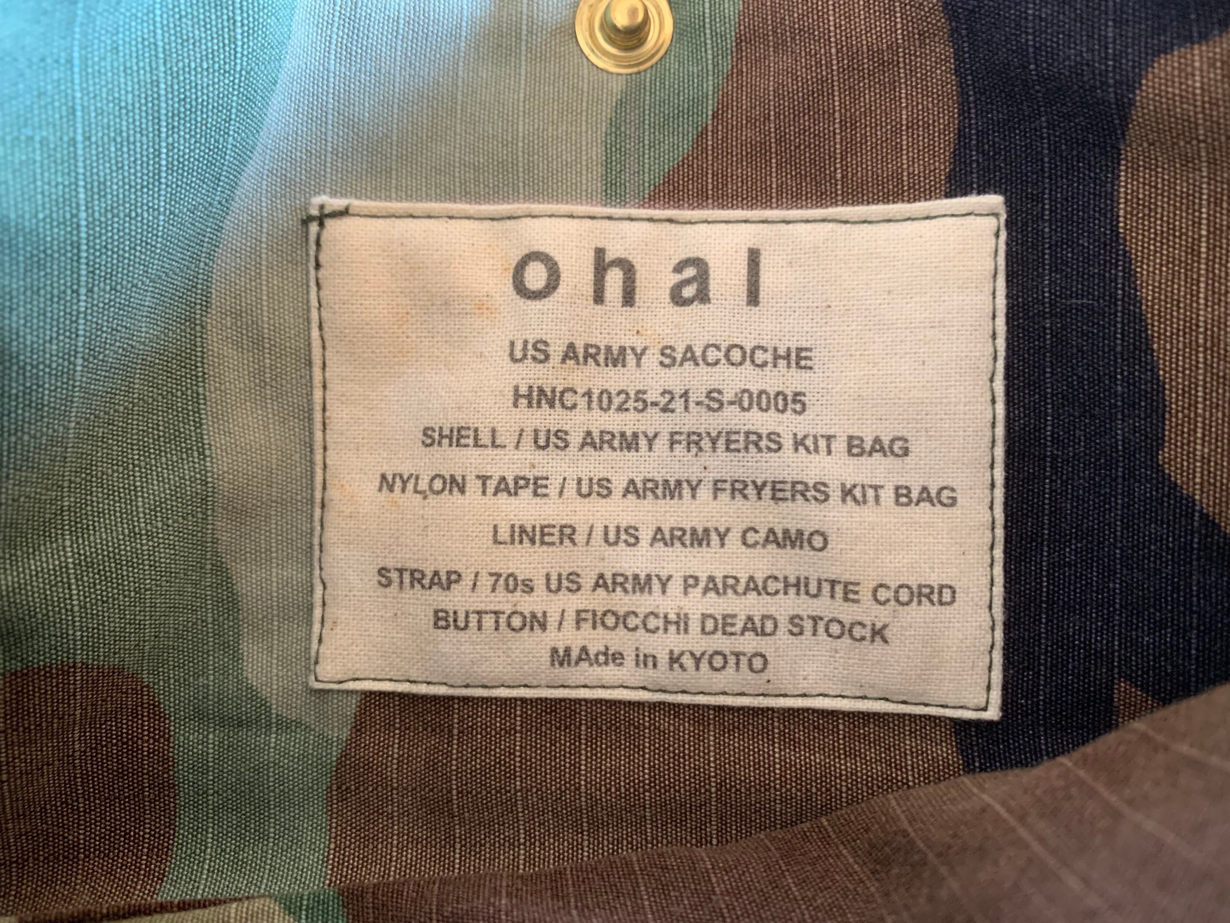 ボディーはナイロン素材、裏地はUS ARMYのリップストップ素材のウッドランドカモです。