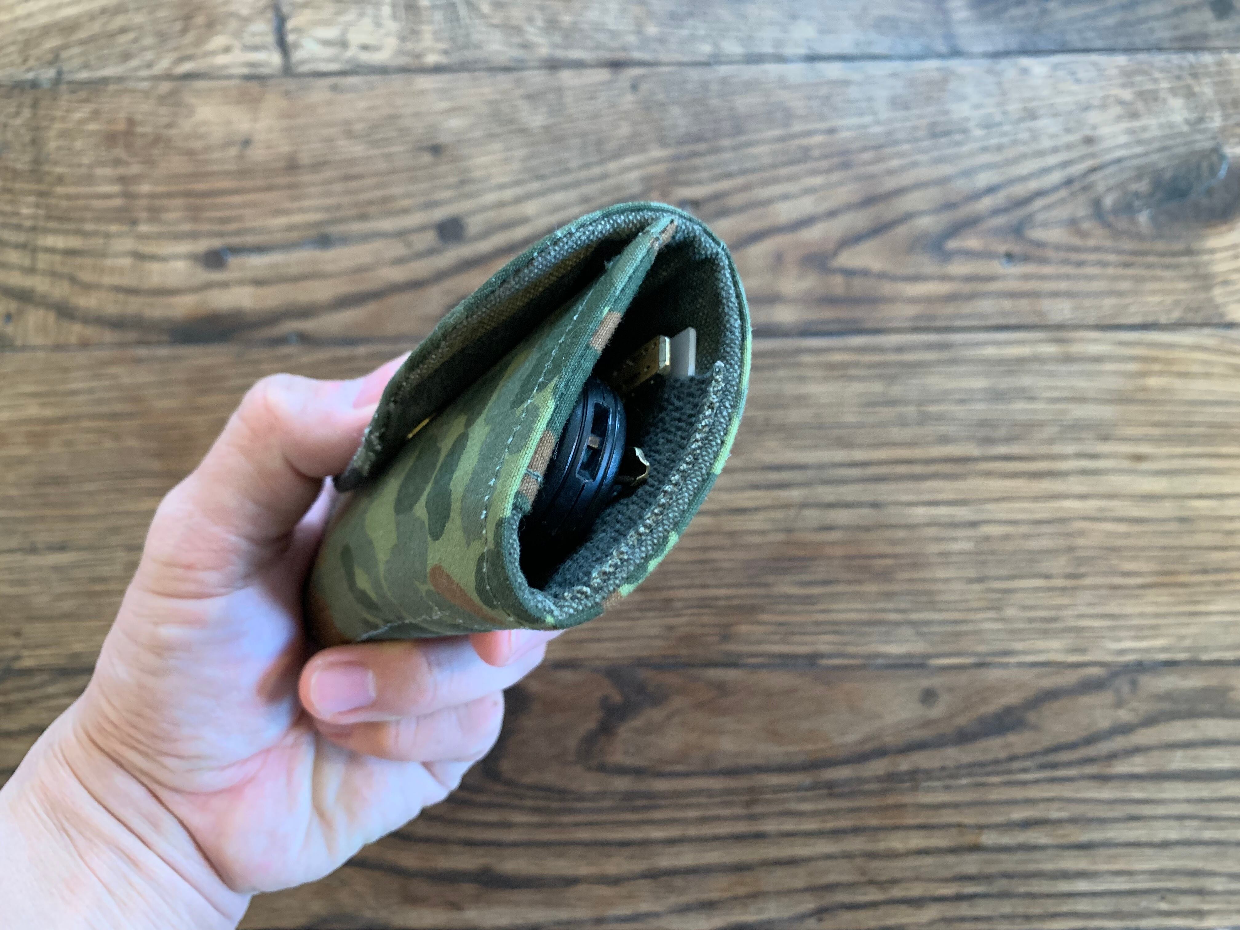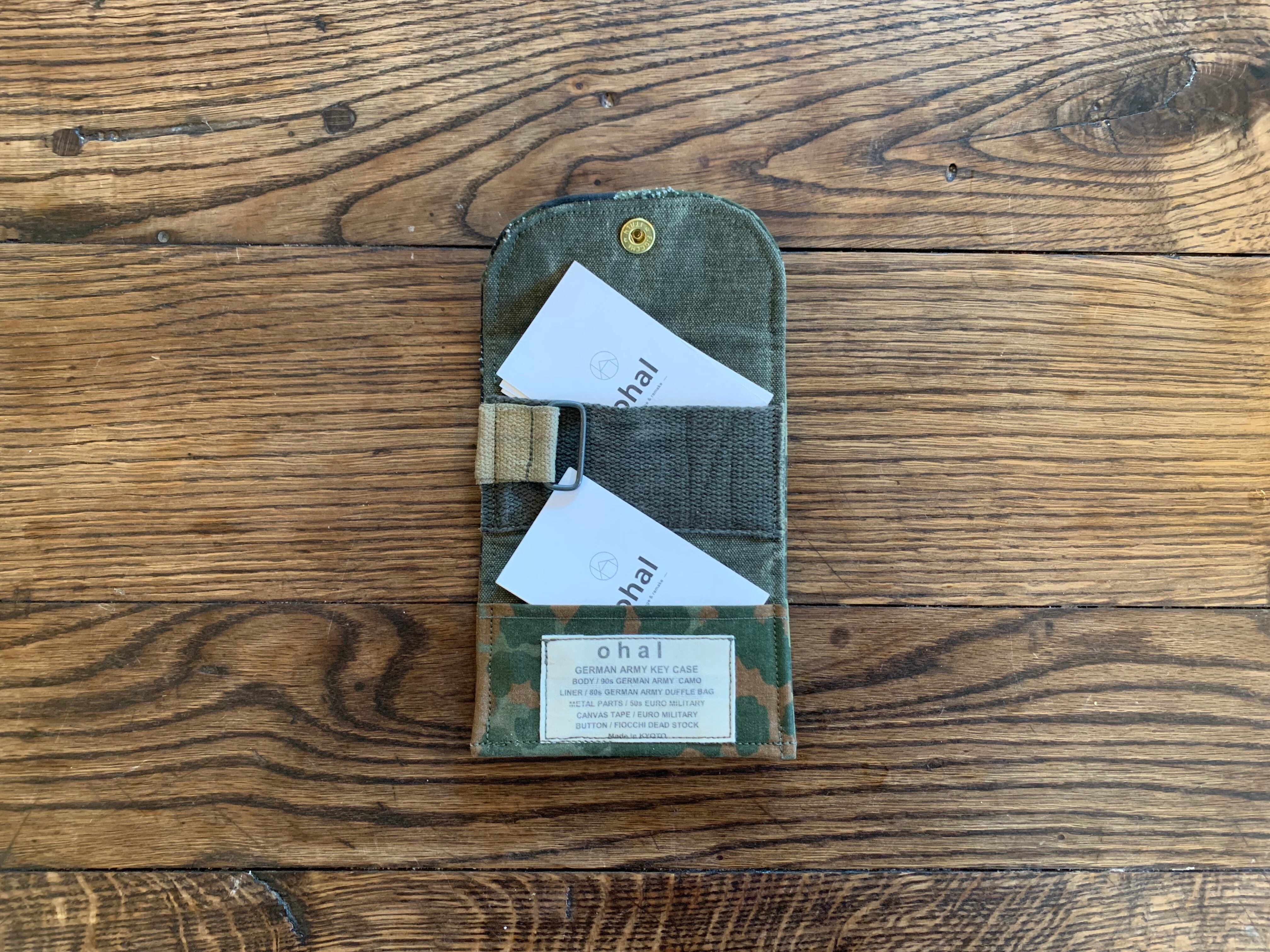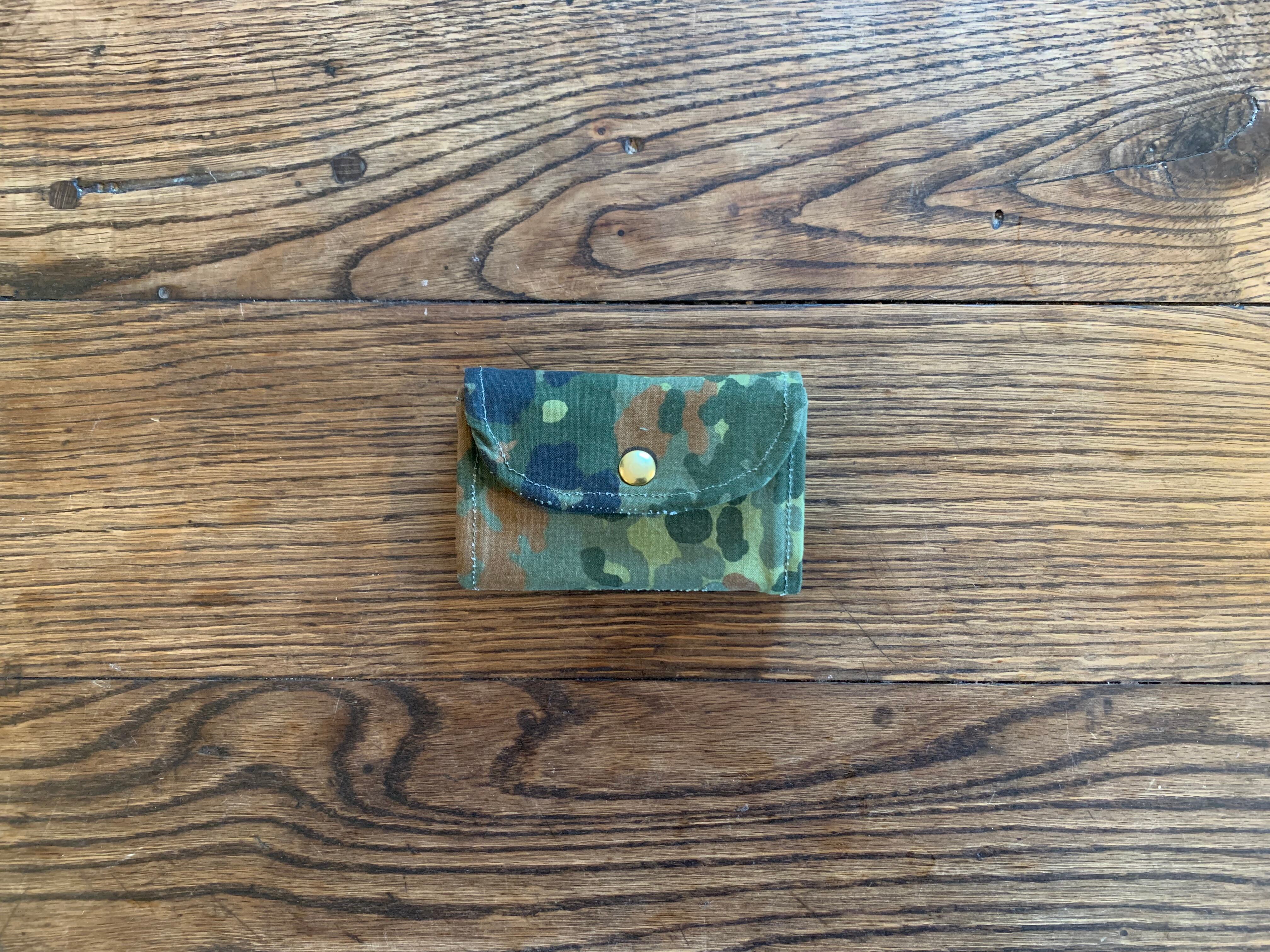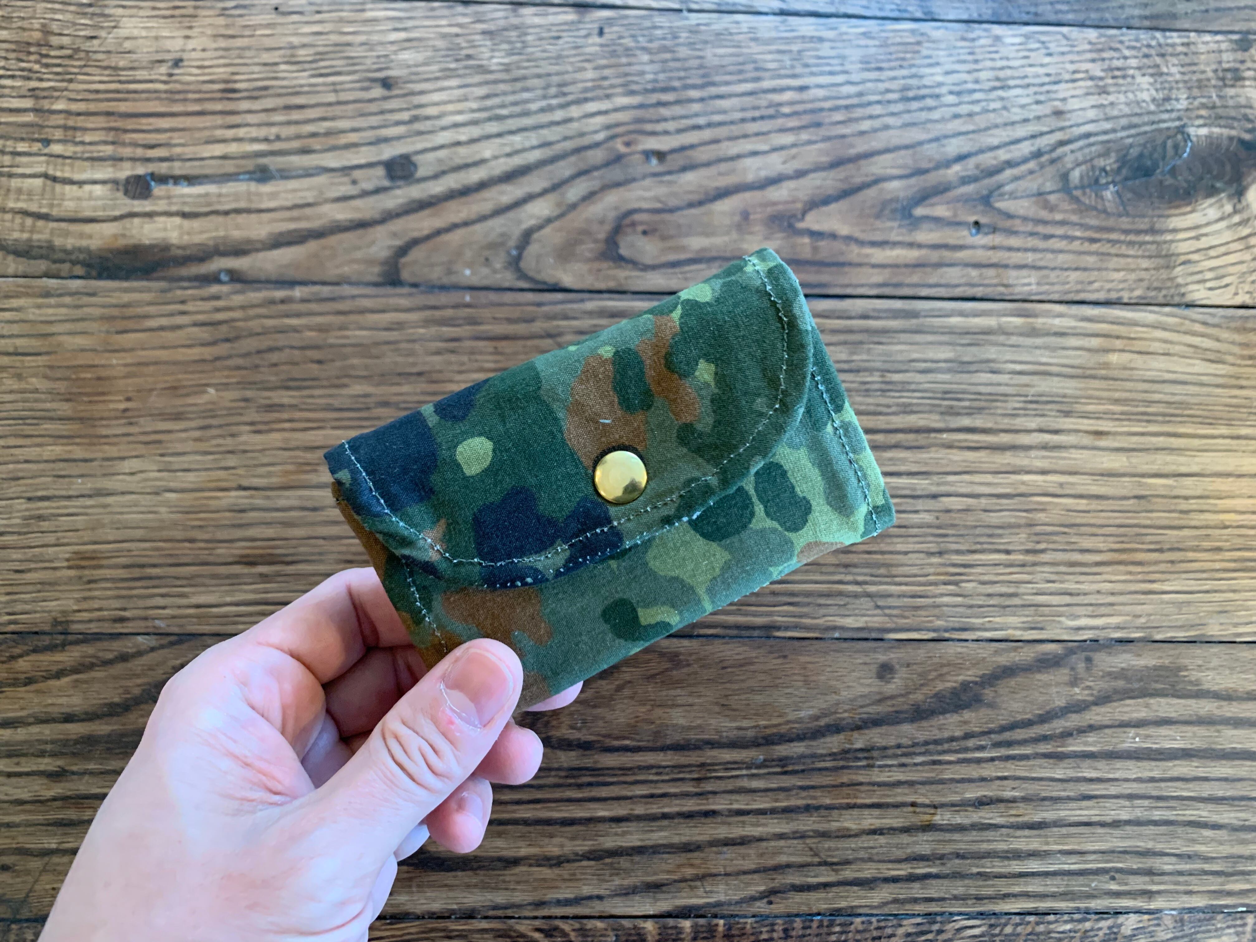 表地は90年代のドイツ軍のカモフラージュの生地、裏地には80年代のドイツ軍のダッフルバッグの生地を使用しております。