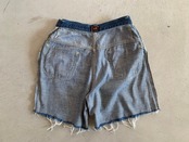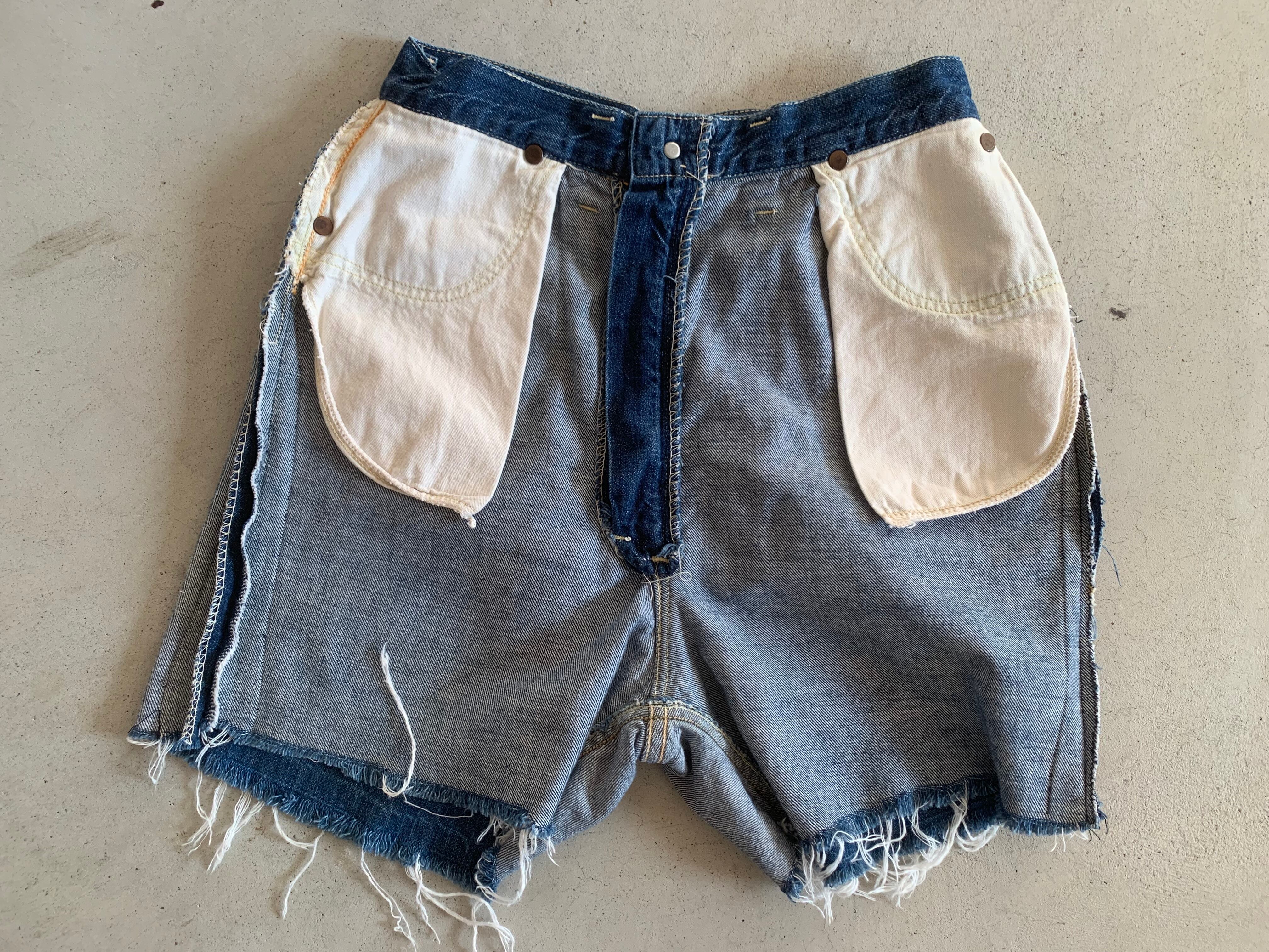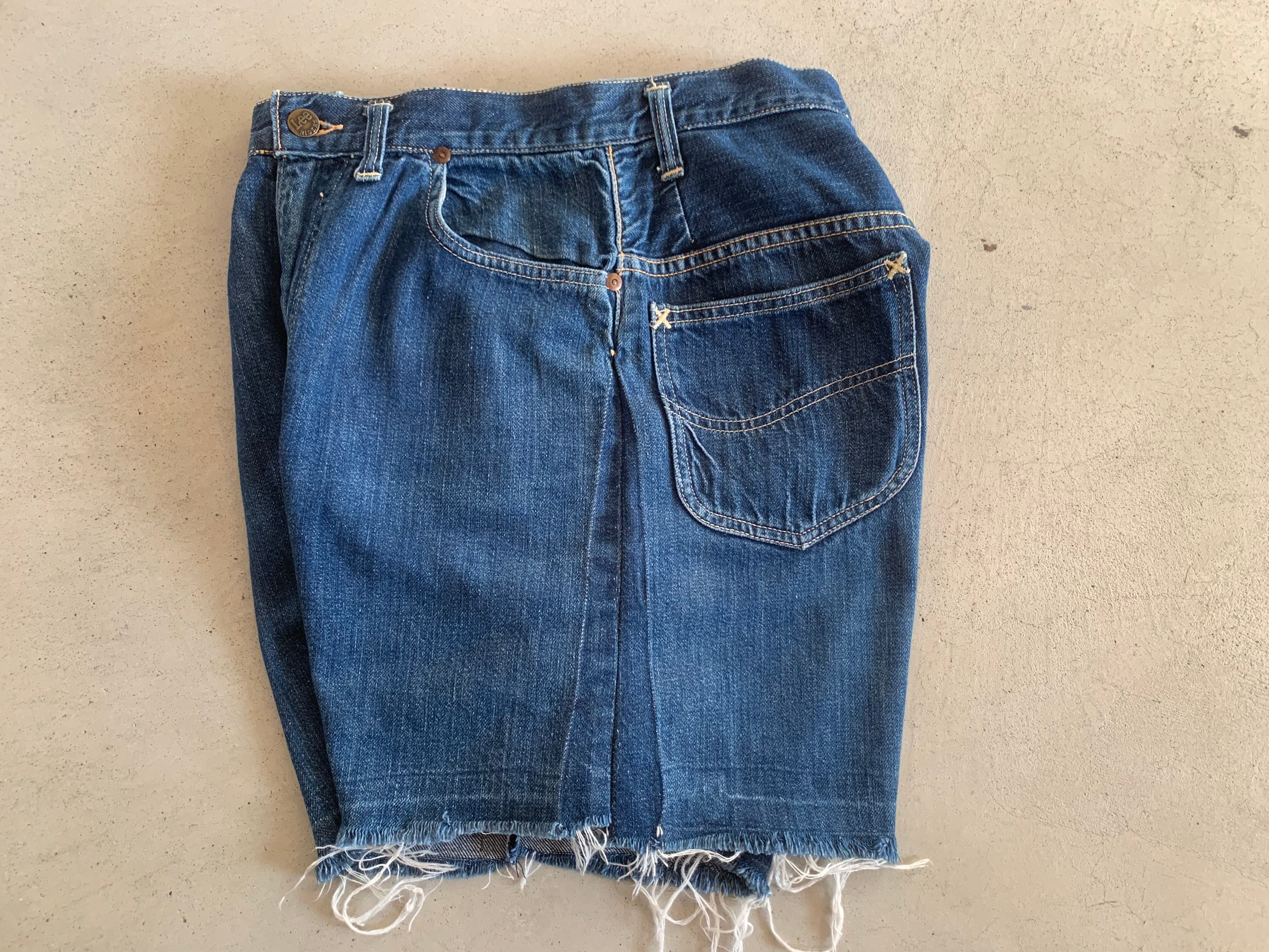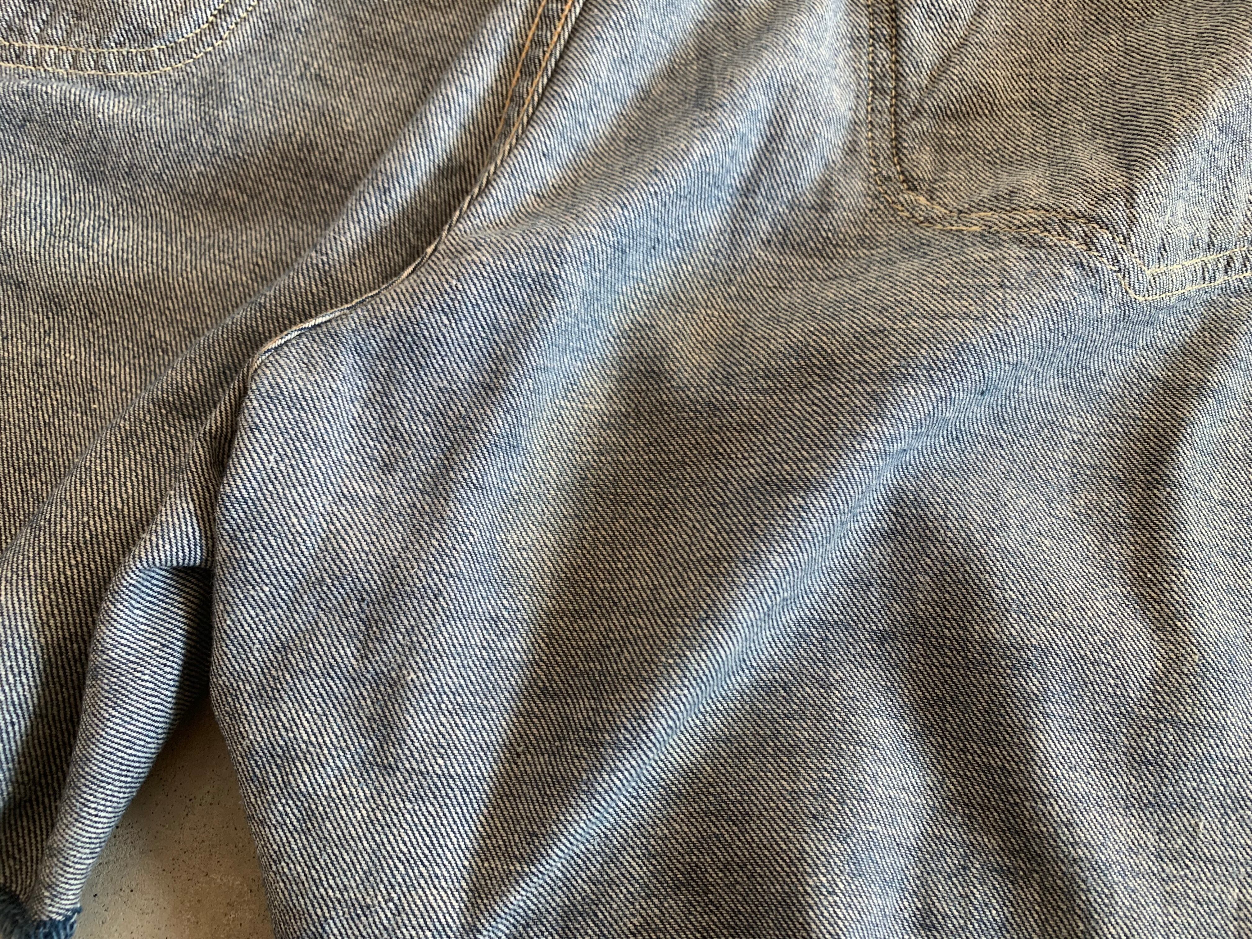 脇を詰められていたので、元の縫い代に戻したのですが、片方の端が少しカットしてあり左右で裾幅に差異がでてしまってます。そういった歪な雰囲気もヴィンテージの味として販売しておりますのでご了承ください。