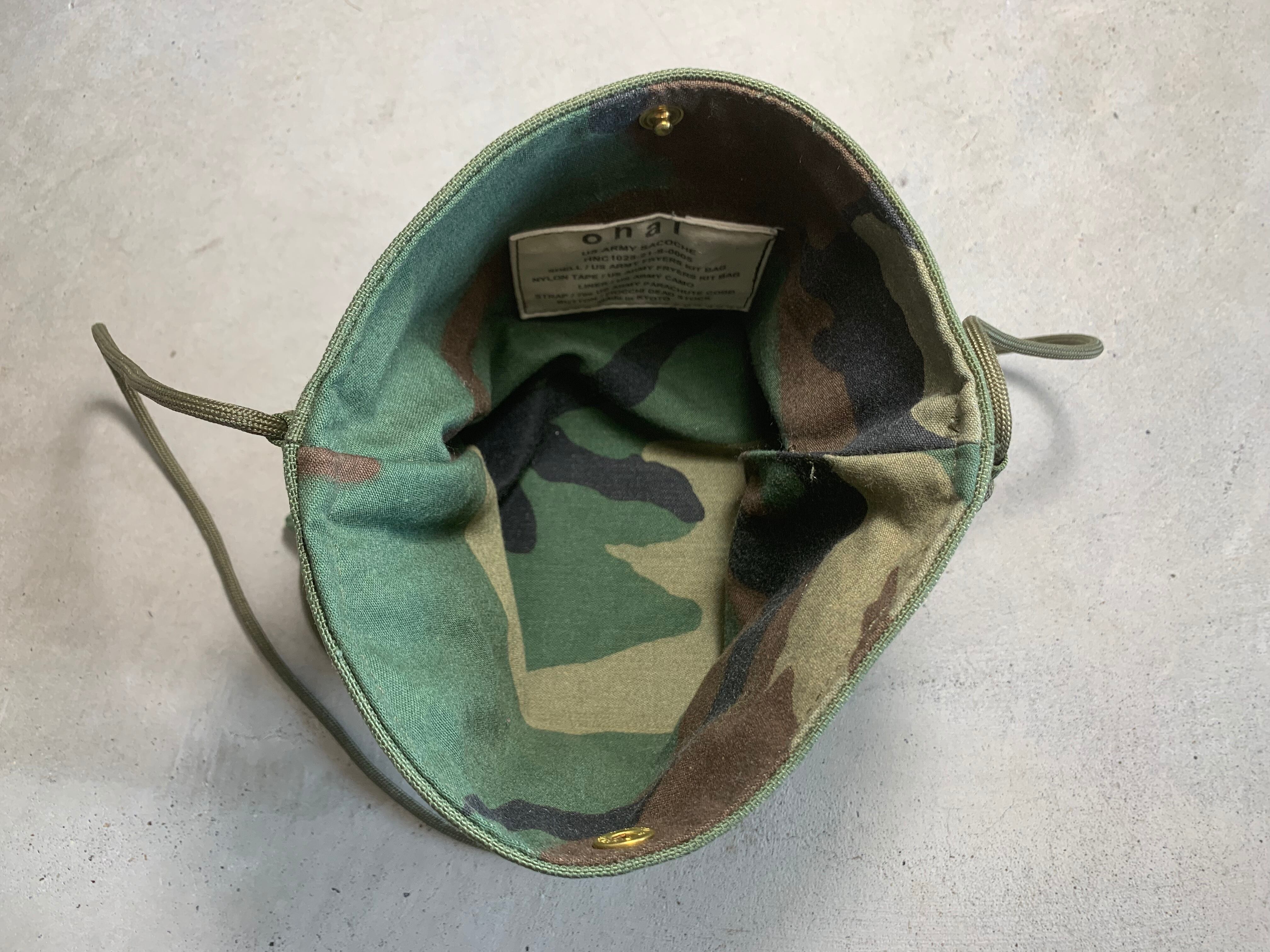 ボディーはナイロン素材、裏地はUS ARMYのリップストップ素材のウッドランドカモです。