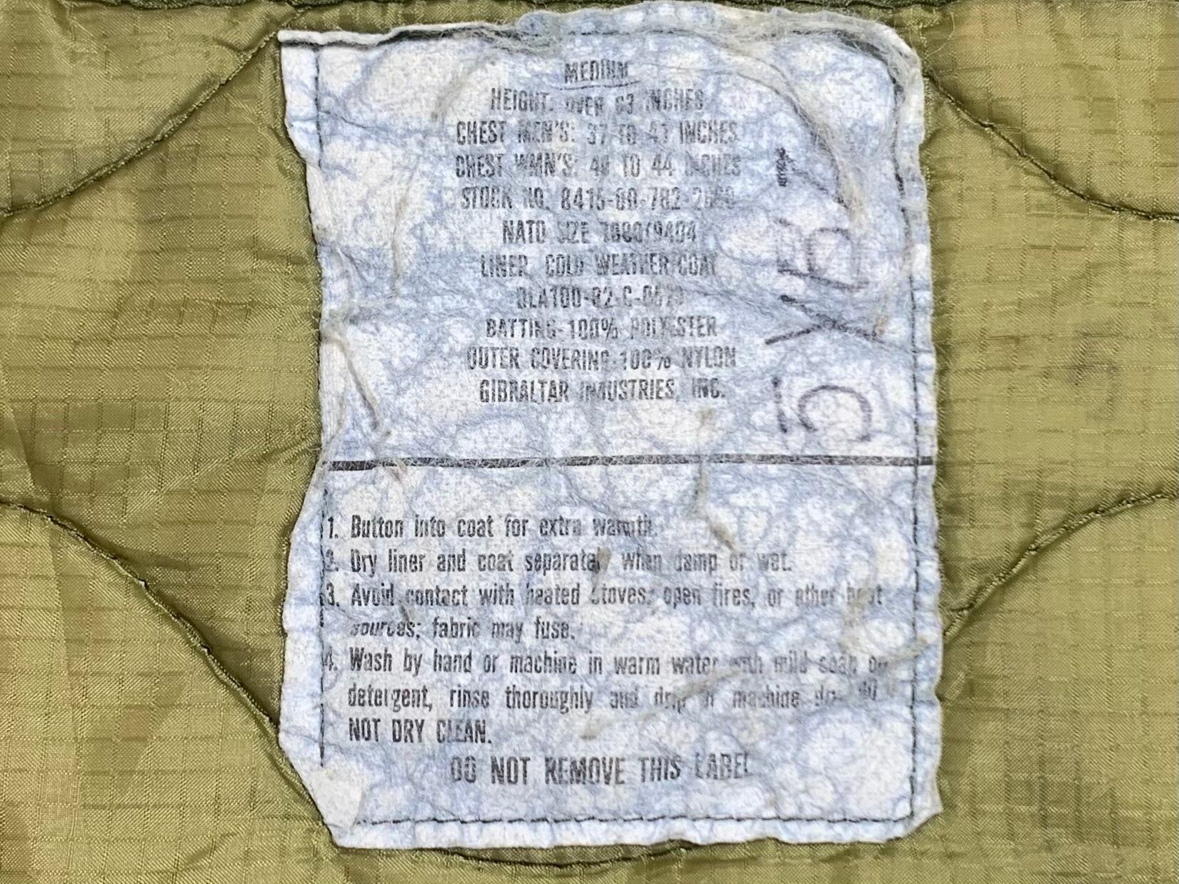 ボディーは米軍に1982年に納入された、M-65ジャケットの中に取り付ける、キルティングライナー。