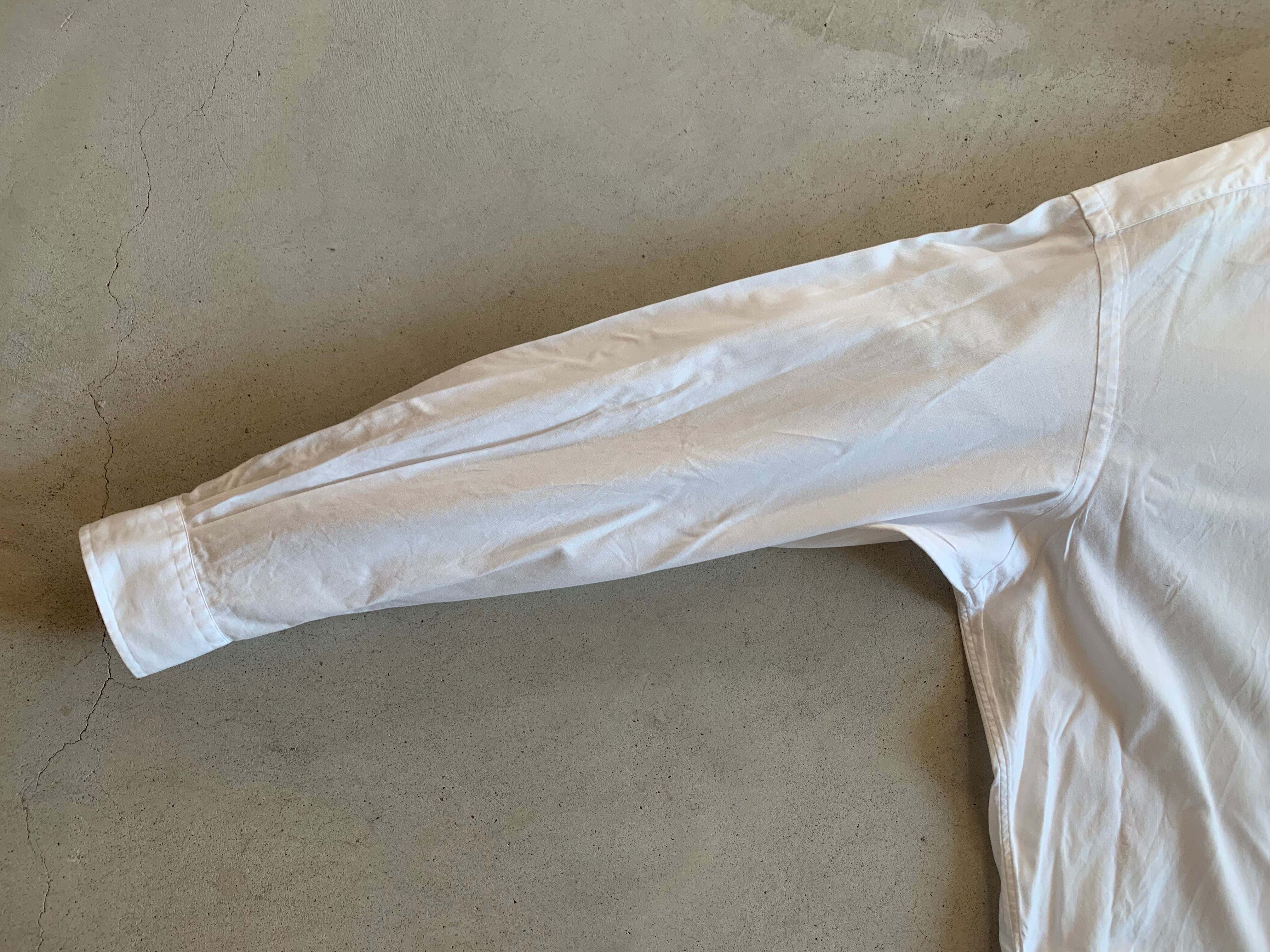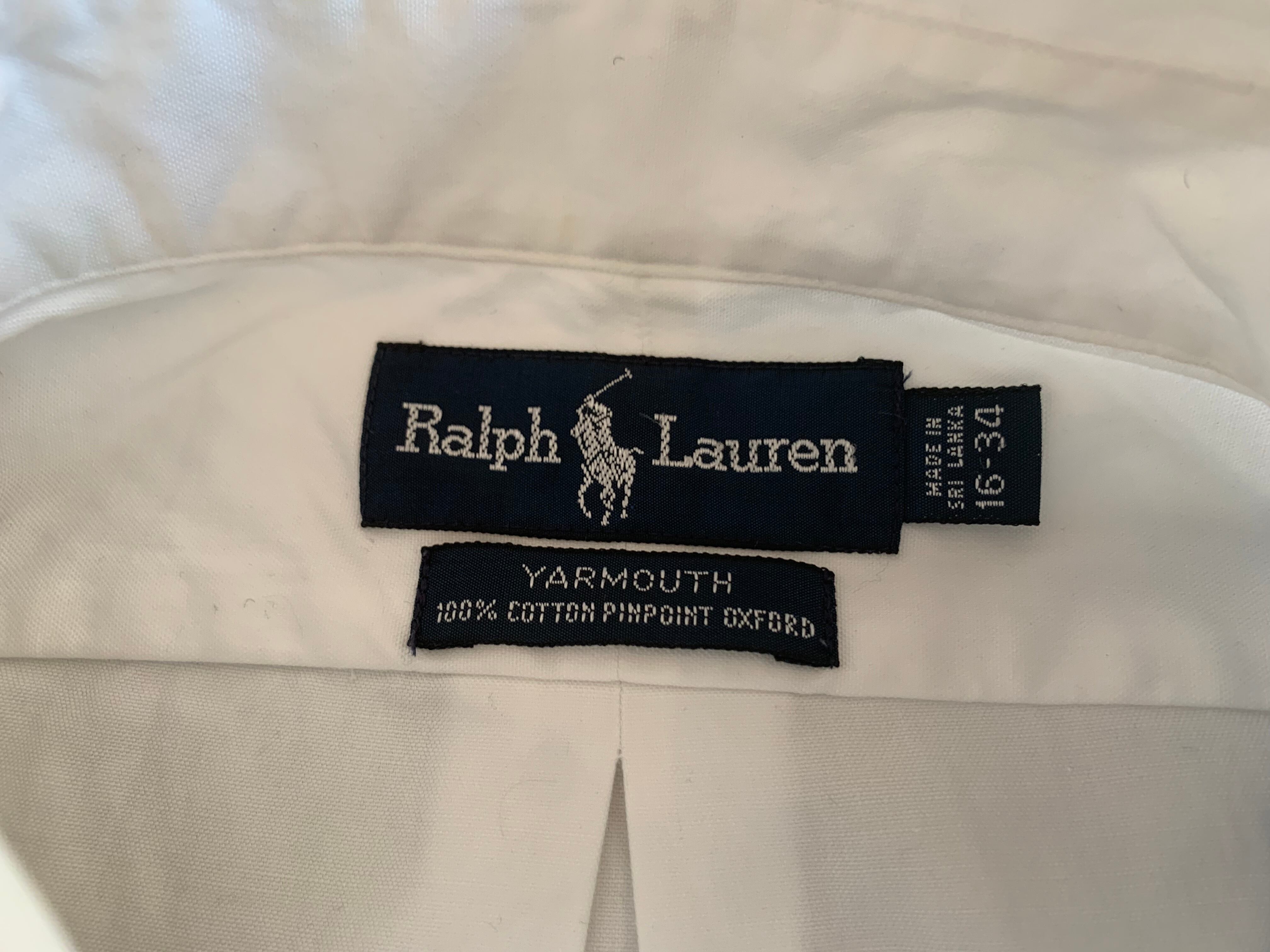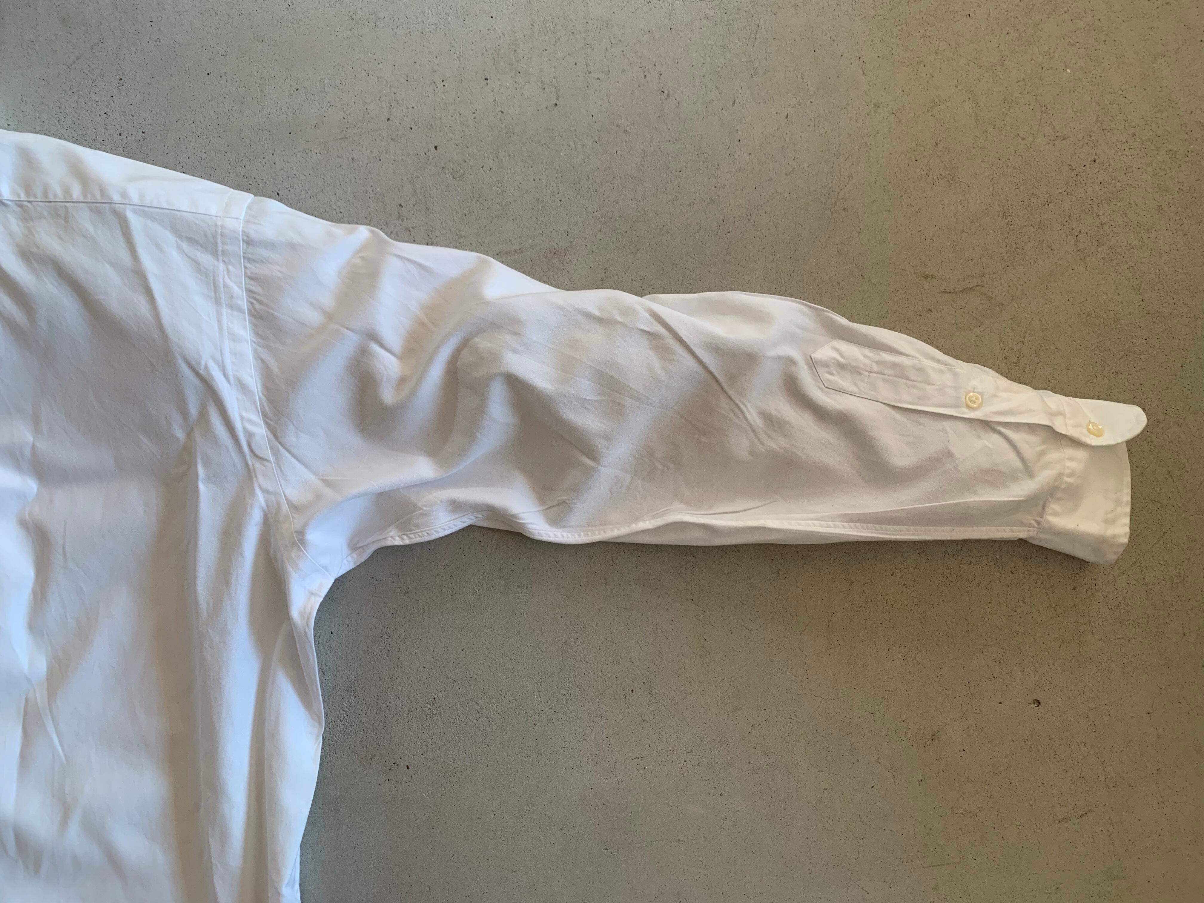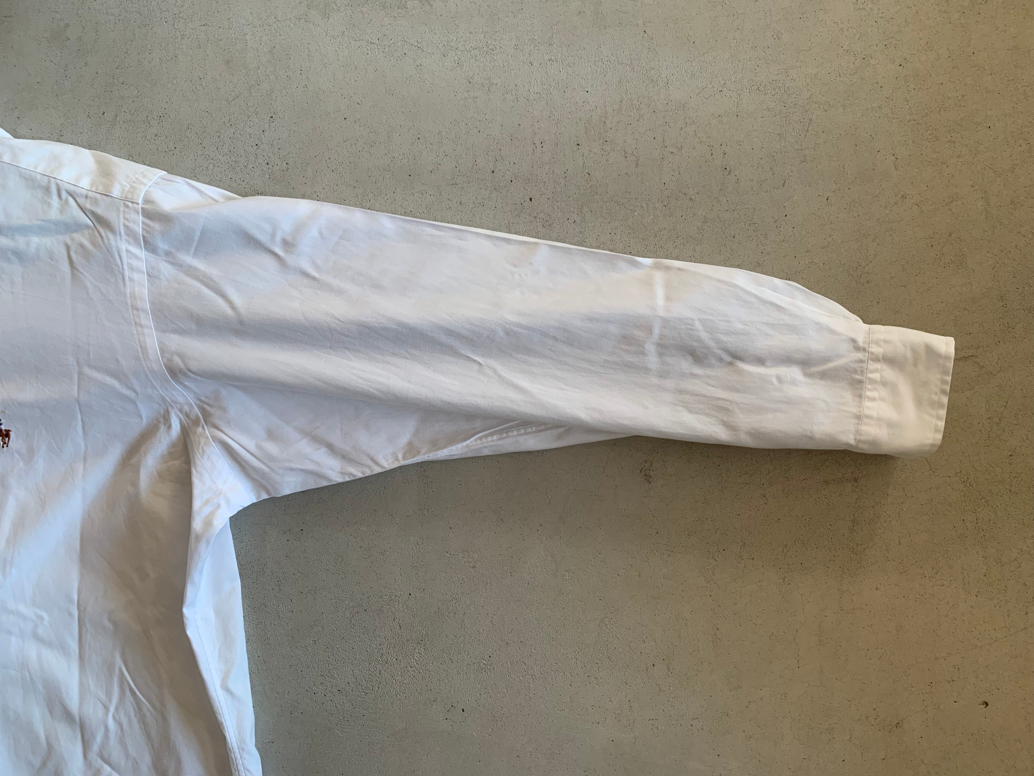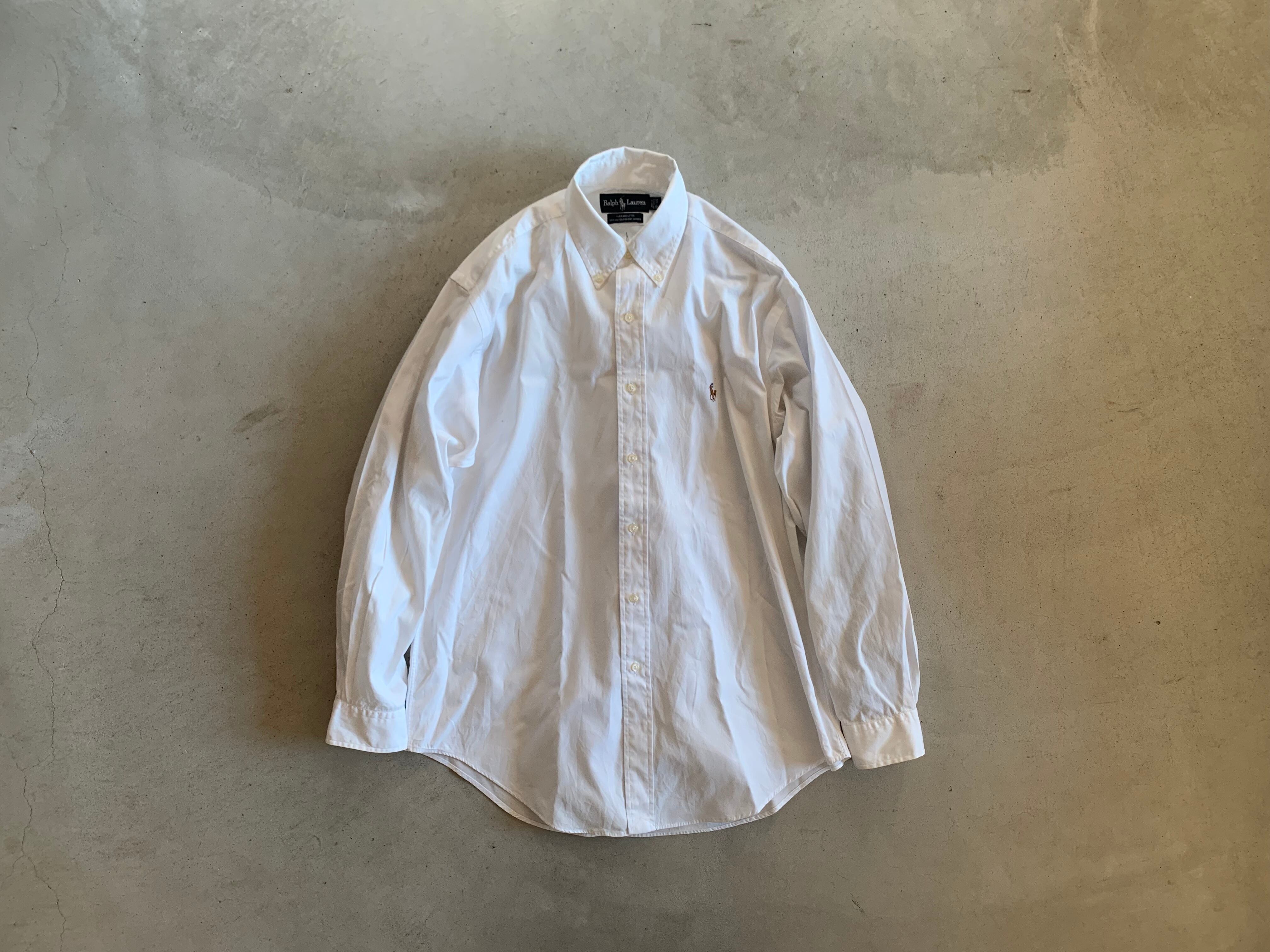 90年代頃のラルフローレンのシャツ。素材はピンポイントオックスフォードです。ブロードとオックスフォードの間くらいの厚さで、綿密度の高い生地になります。