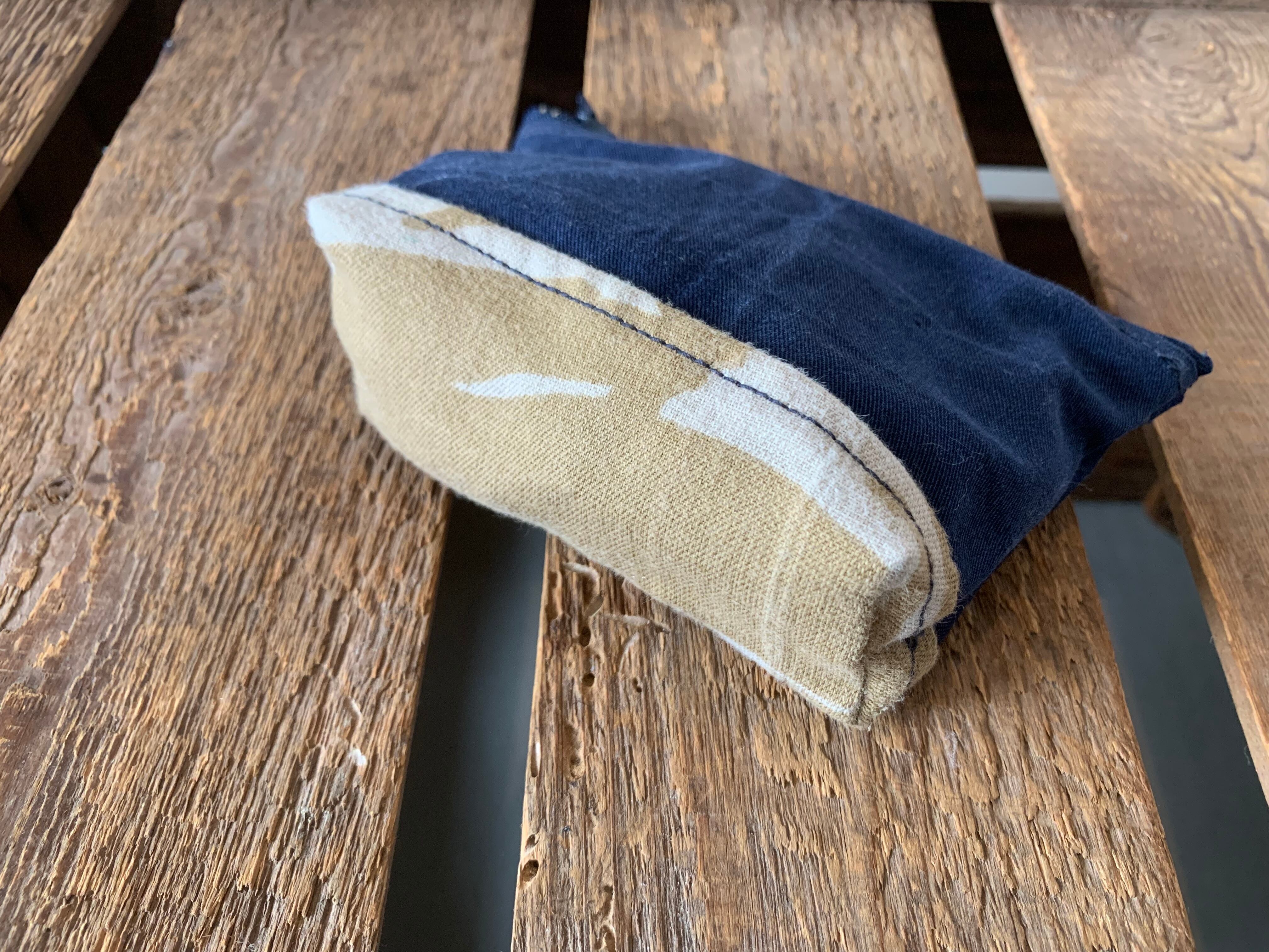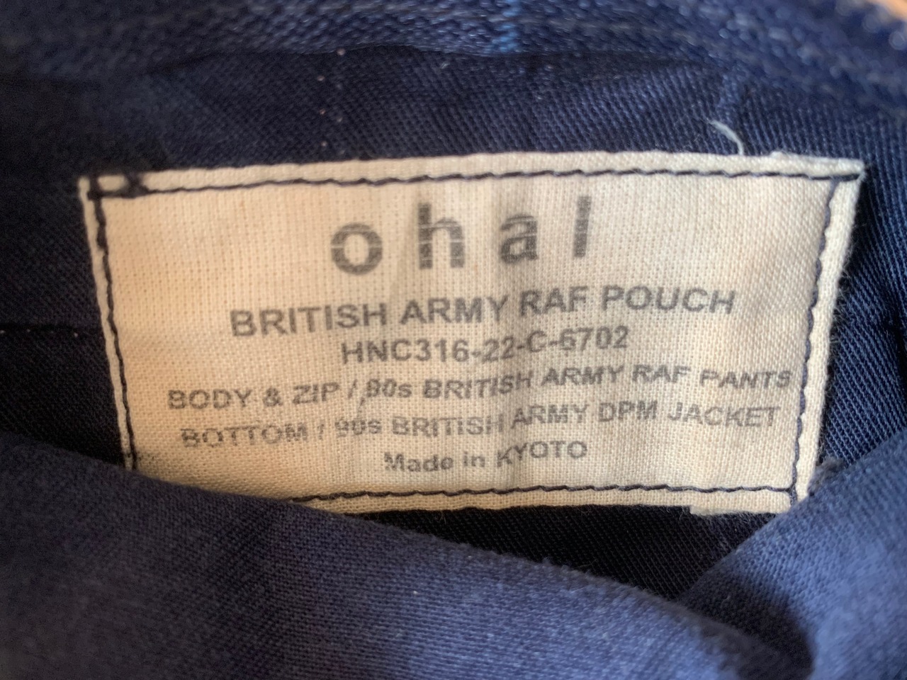 ボディーは90年代の英軍のRAF(ロイヤルエアフォース)の生地で、ファスナーも同じパンツについていたファスナーを使用しています。ボトムは同じく90年代頃の英軍のデザートカモのジャケットの生地です。