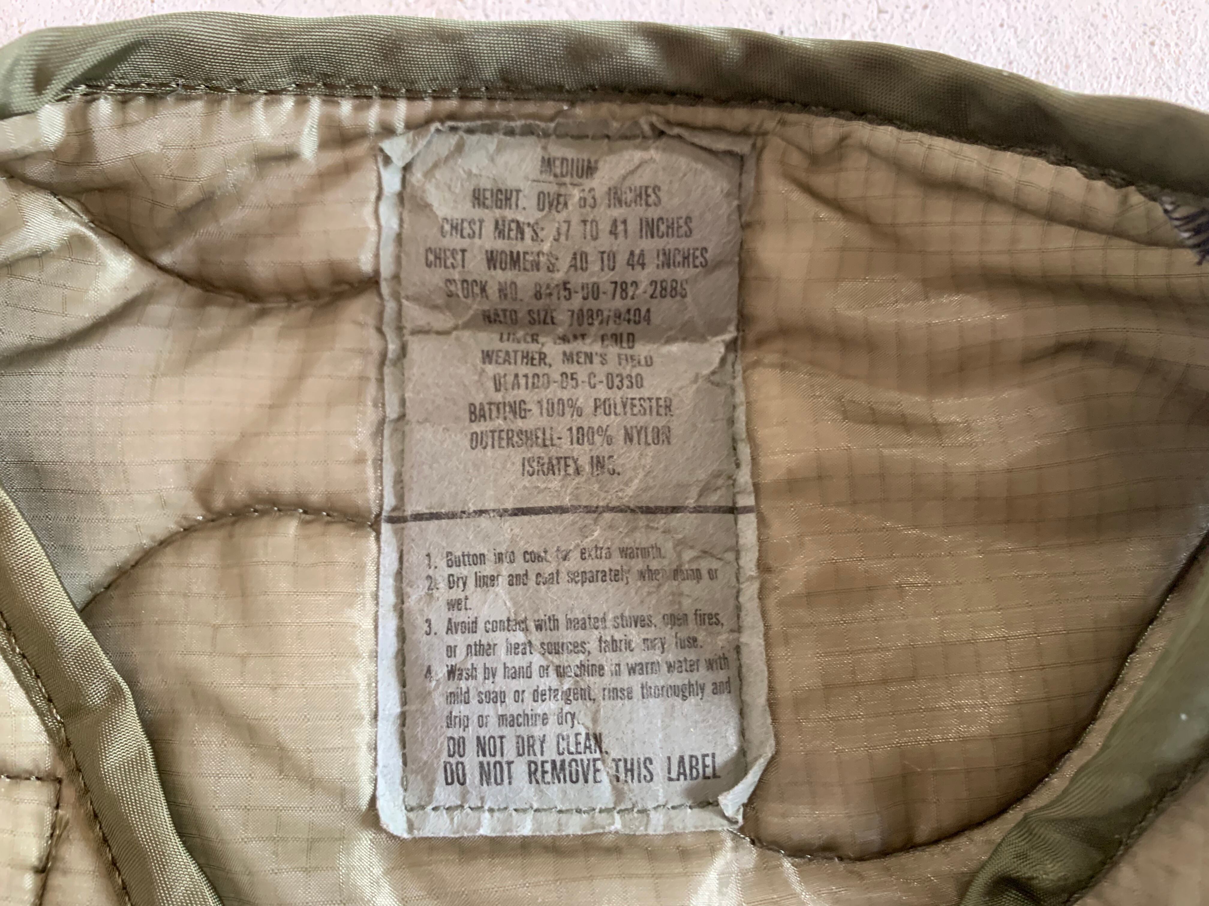 ボディーは米軍に1985年に納入された、ジャケットの中に取り付ける、キルティングライナー。