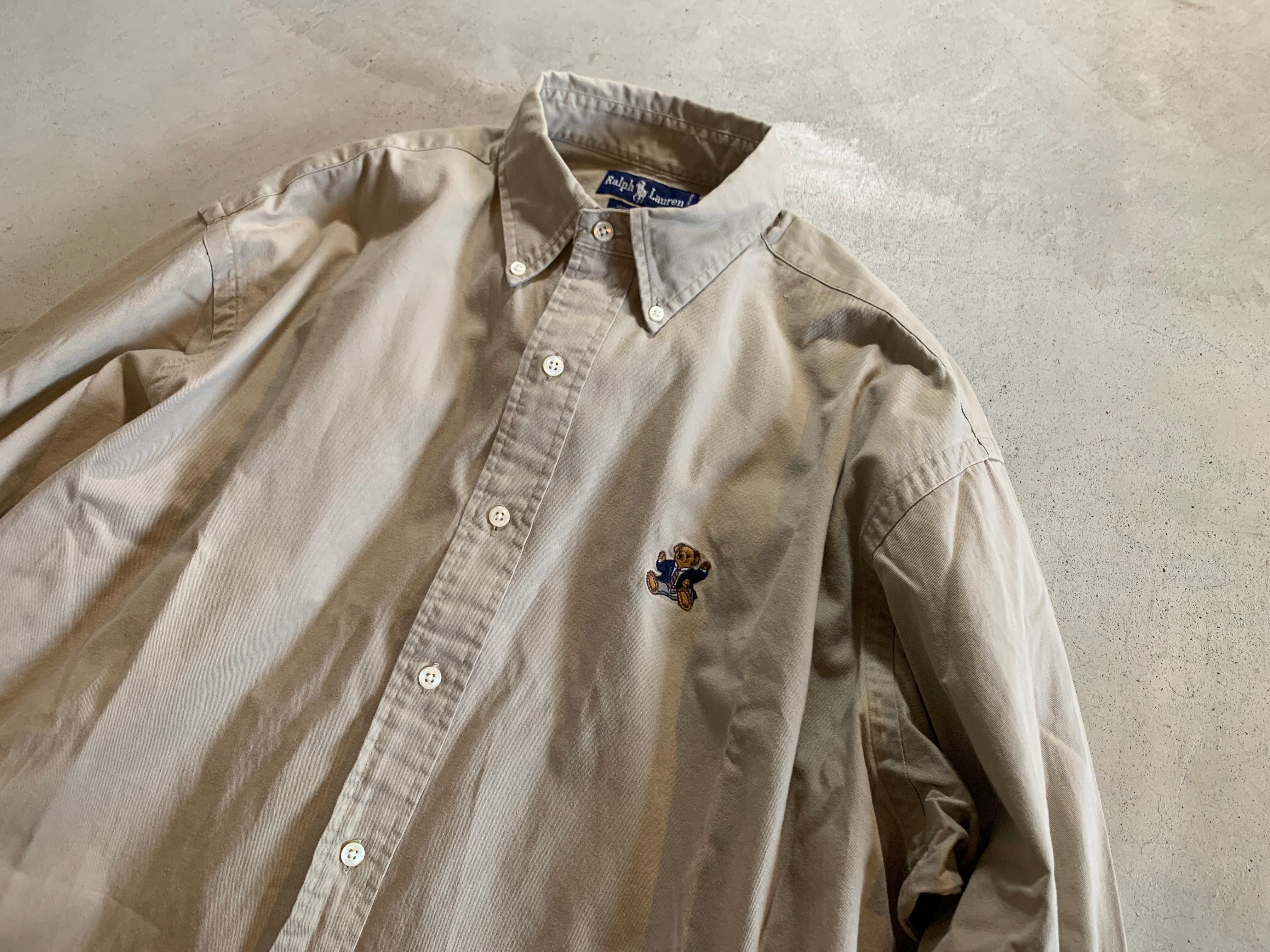 90年代のラルフローレンのシャツ。胸には定番のポニーロゴではなく、ポロベアーが刺繍された一枚。ポロベアー物はコレクターも多い希少な一枚です。