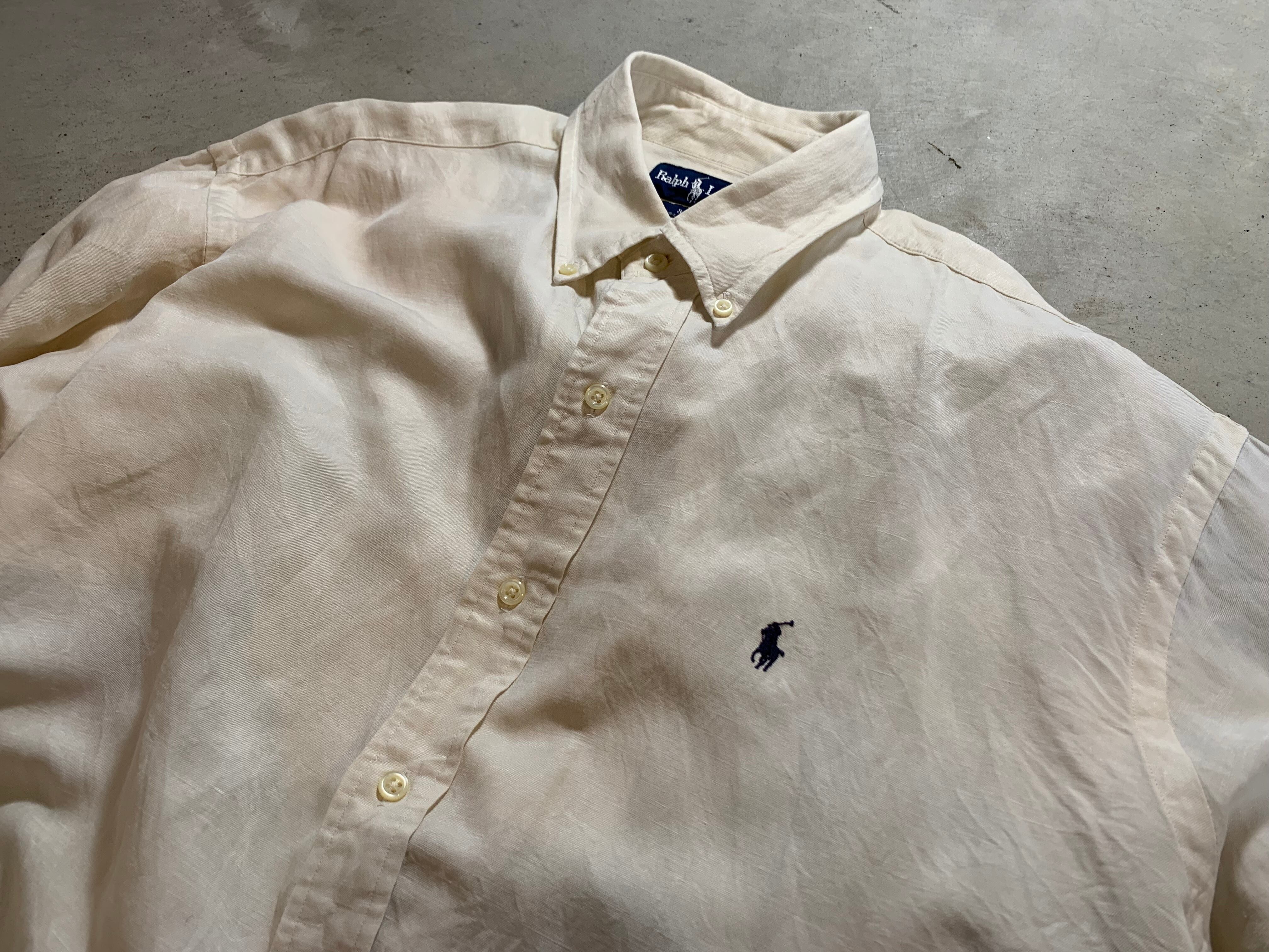 ラルフローレンのシルクとリネンの混合素材の肌触りが気持ちいい高級感のある一枚。こちらは韓国ライセンスの一枚で、品質表示がハングルで記載されています。