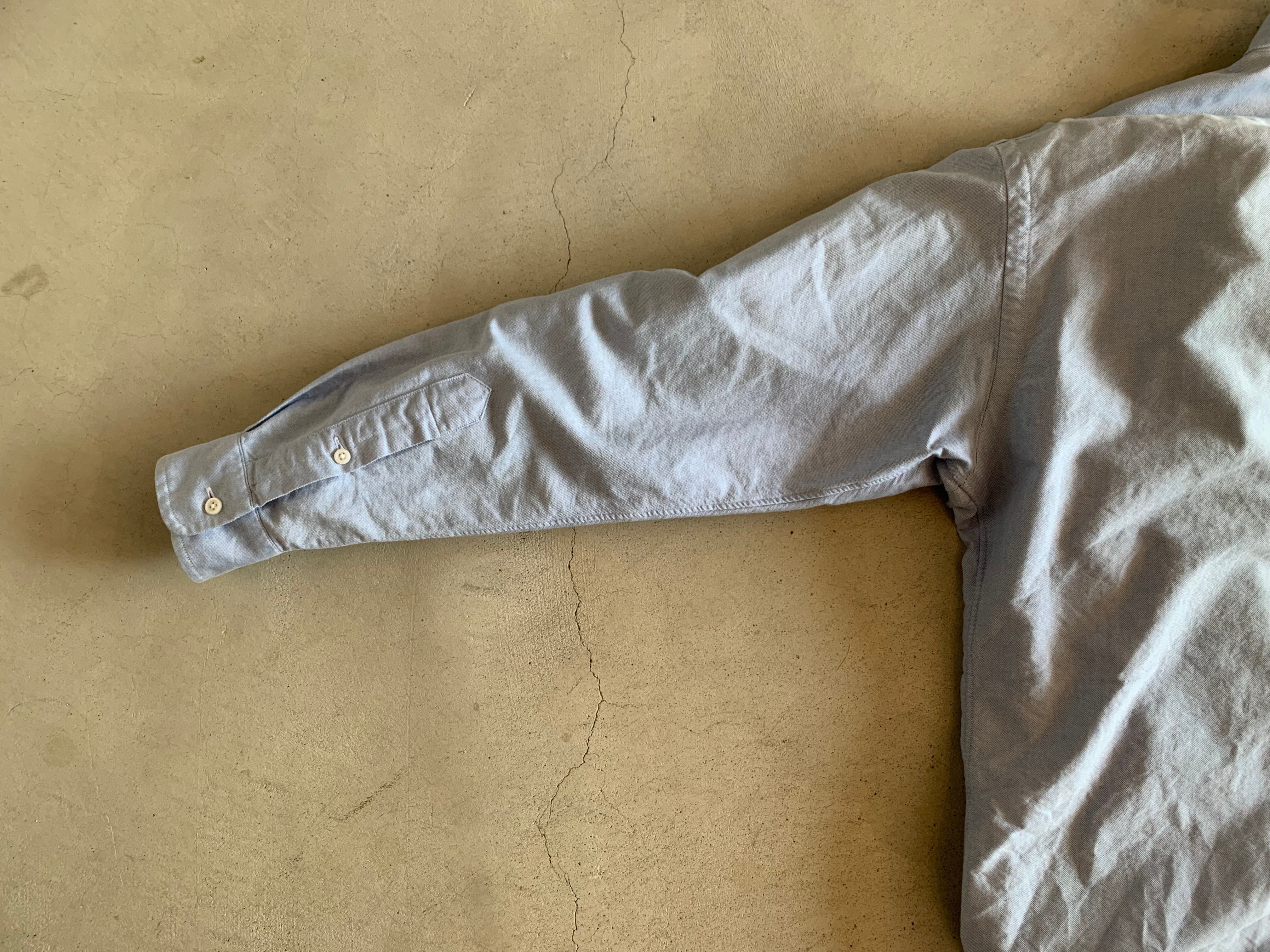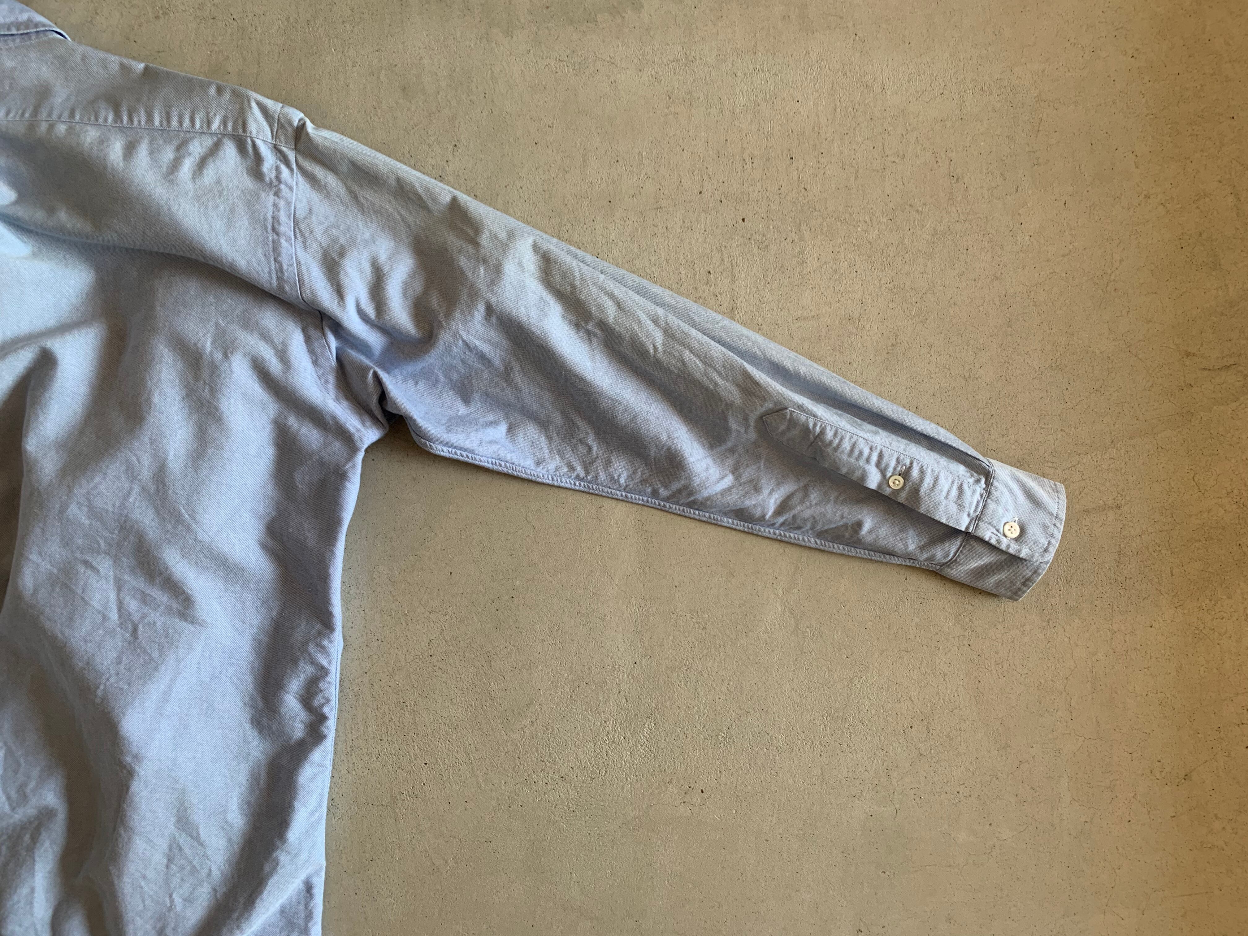 素材はコットン100%のオックスフォード。色味はサックスブルーで爽やかなカラーリング。