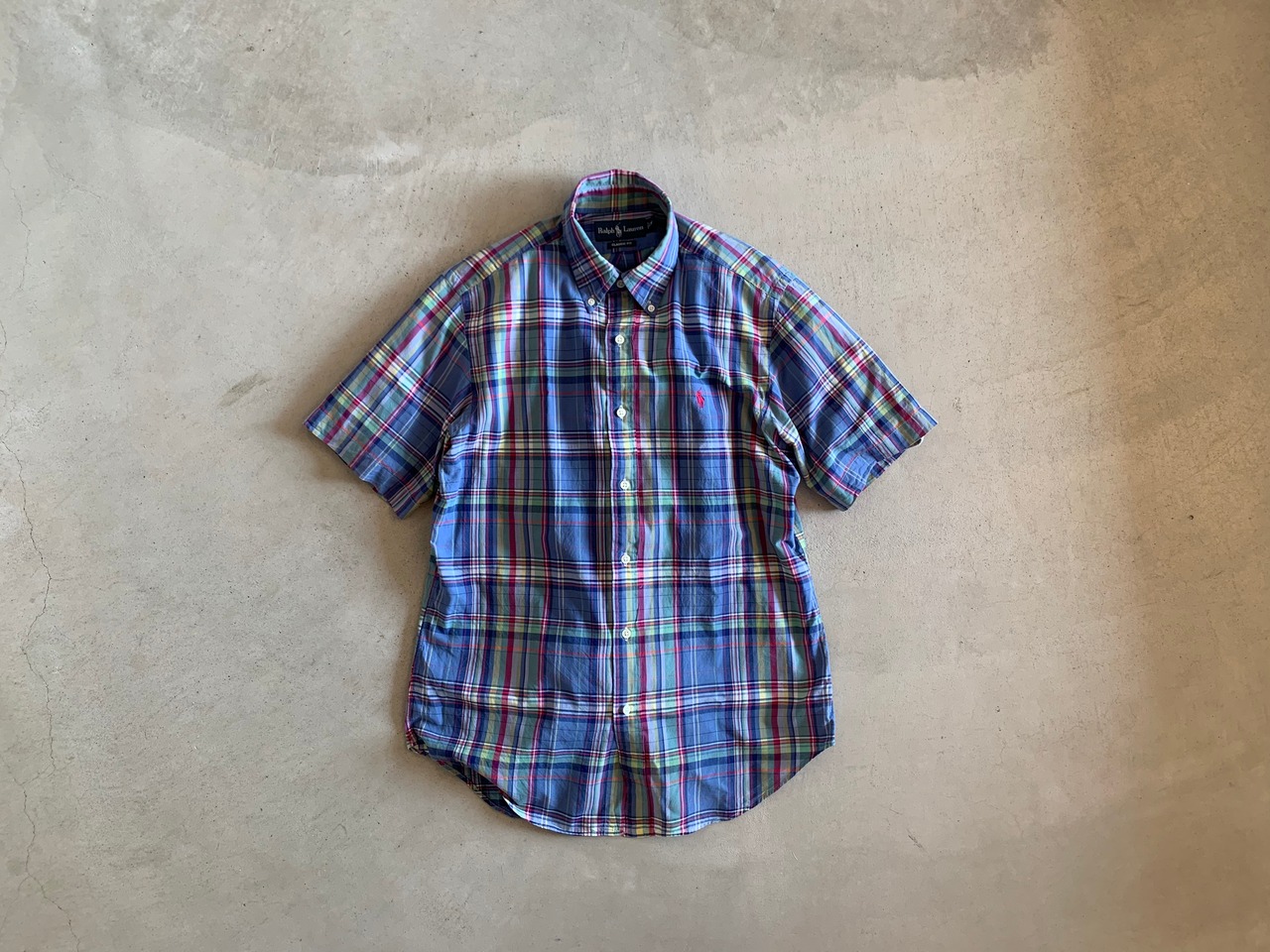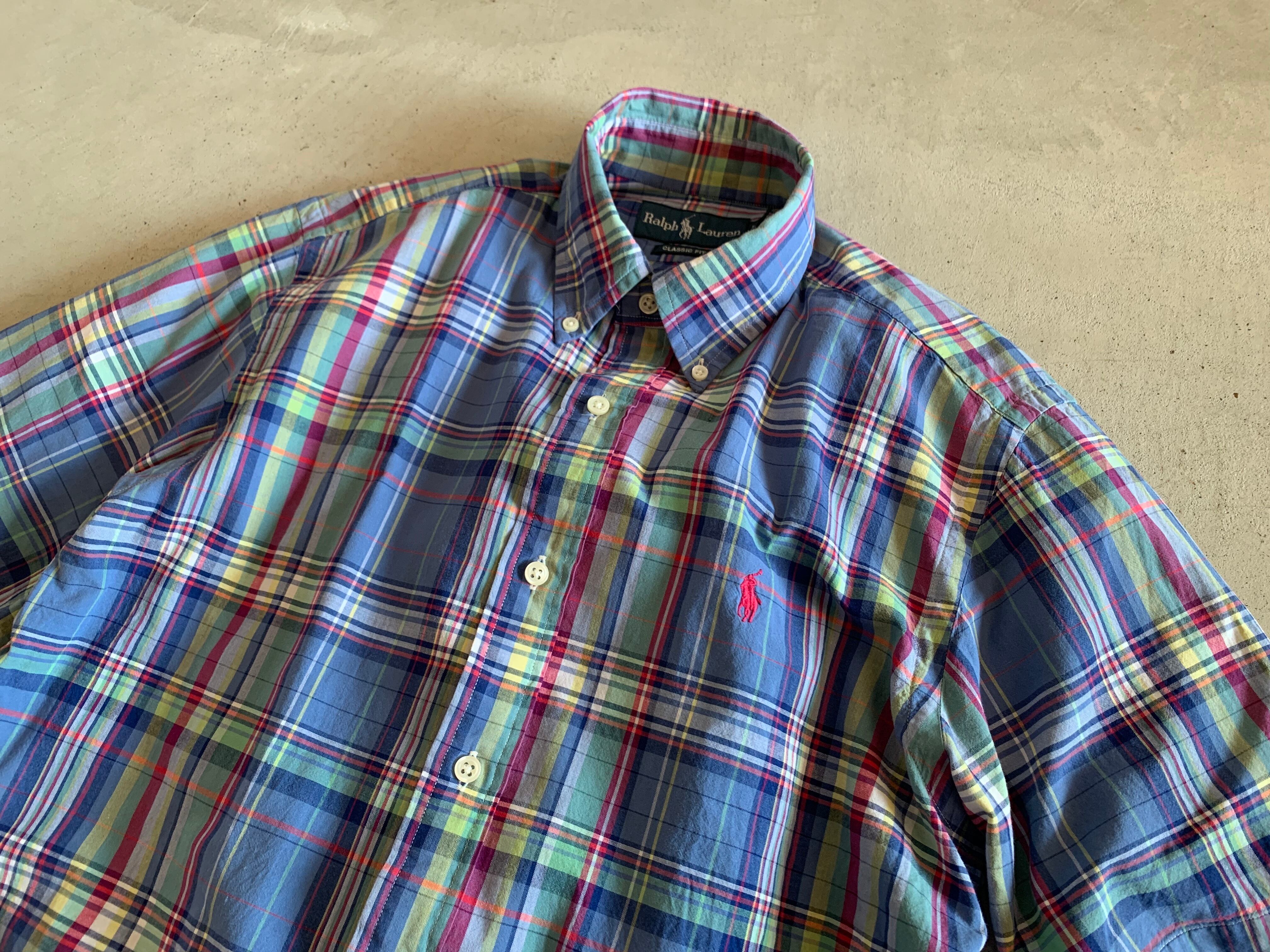 90年代、ラルフローレンのブルー系のマドラスチェックシャツ。