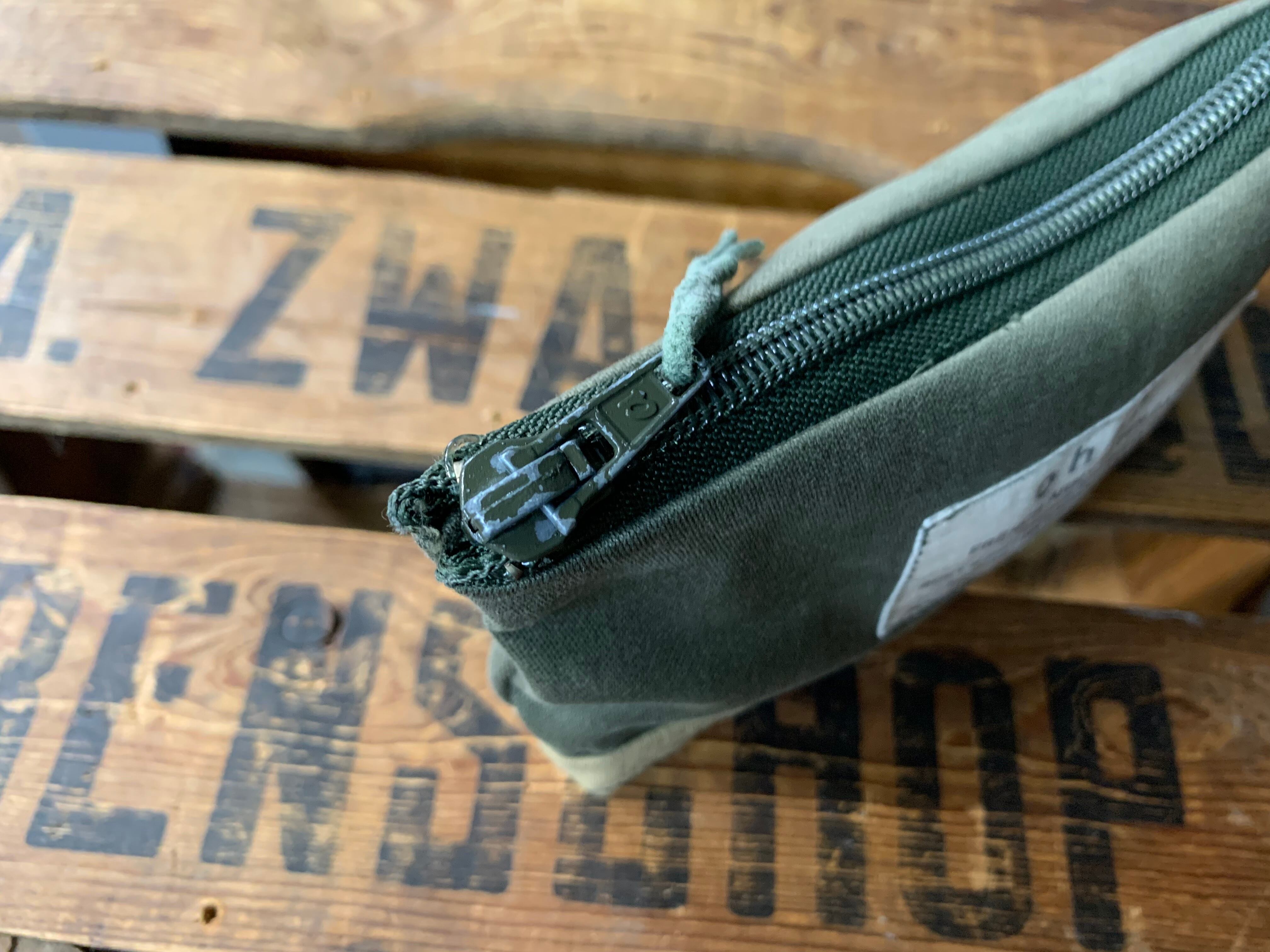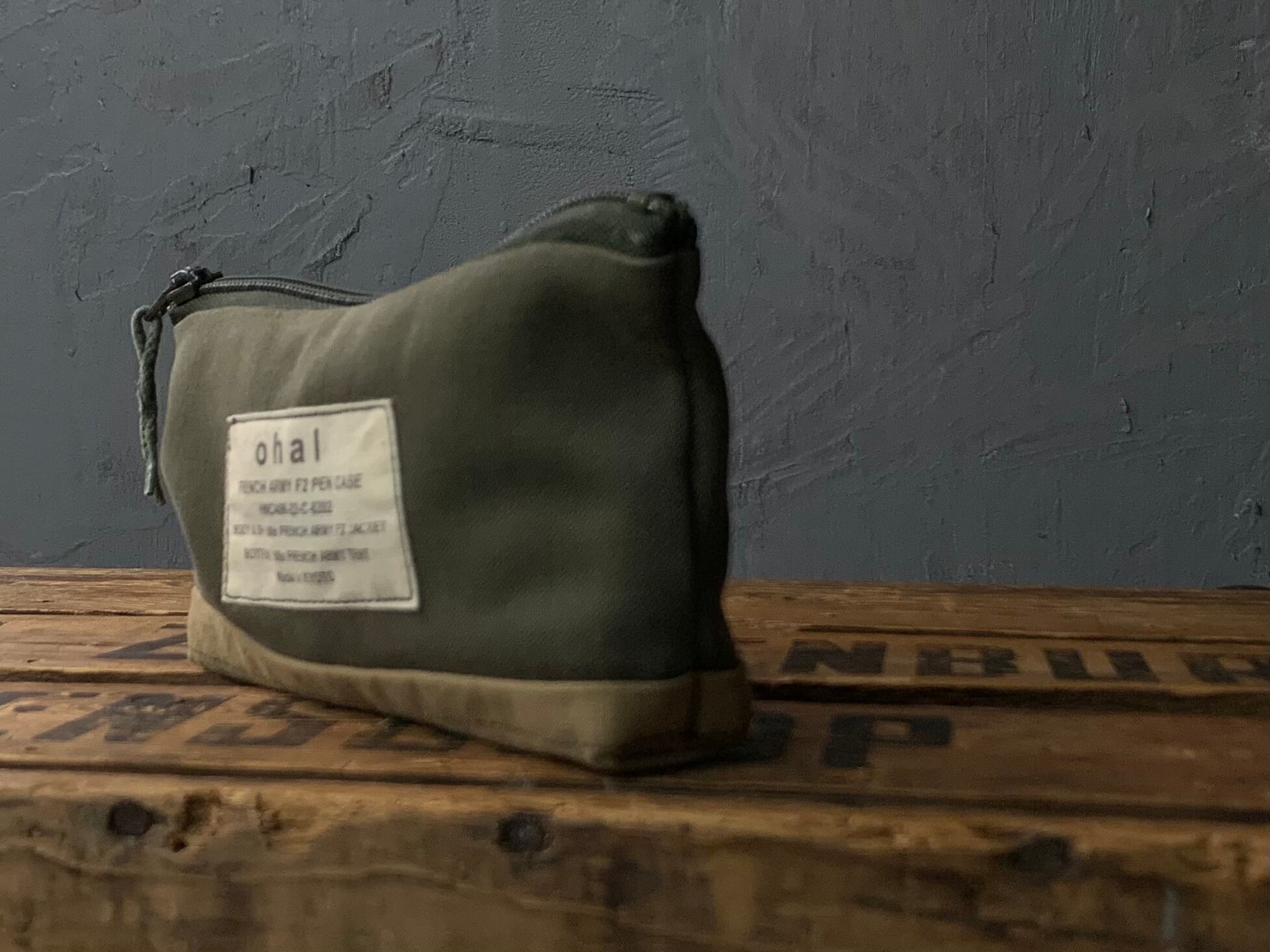 ボディーは80年代のフランス軍のF2ジャケットの生地で、ファスナーとタグも同じジャケットについていた物を利用しています。ボトムは60年代頃のフランス軍のテント生地です。