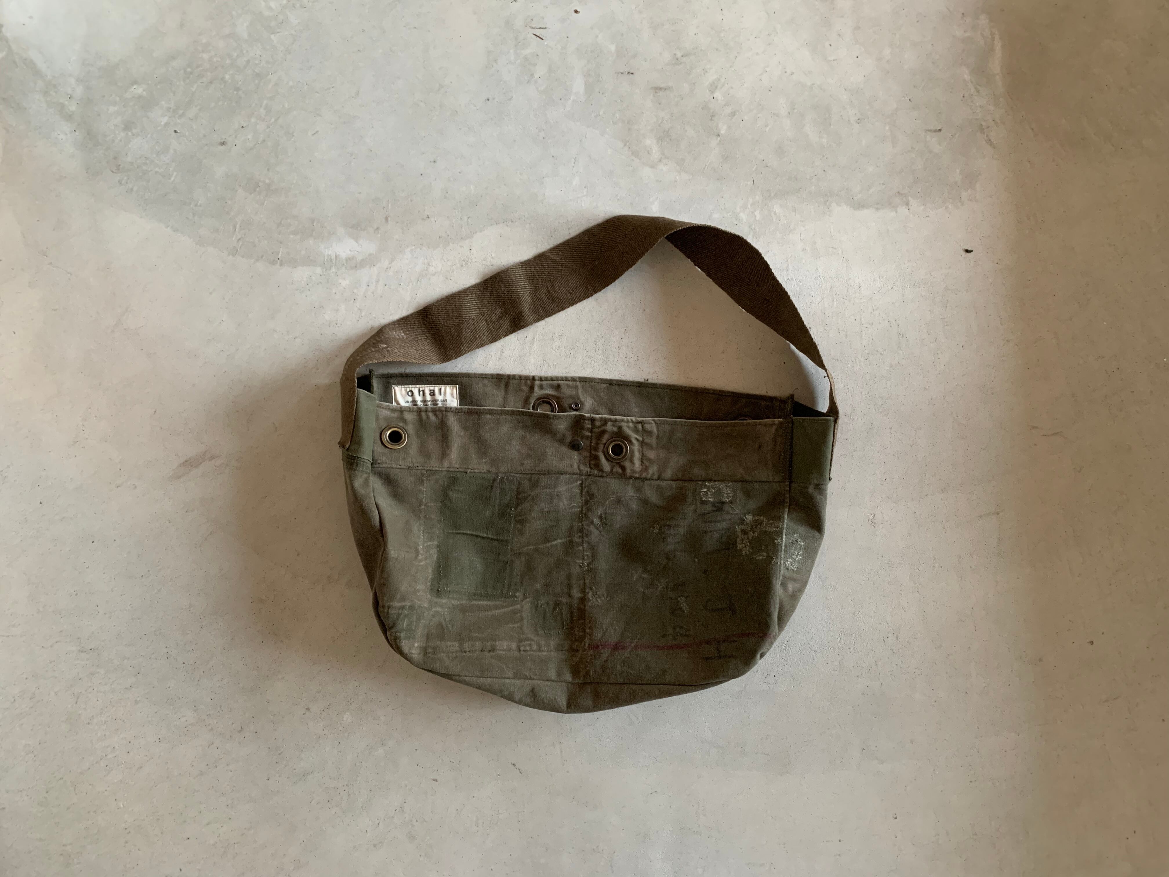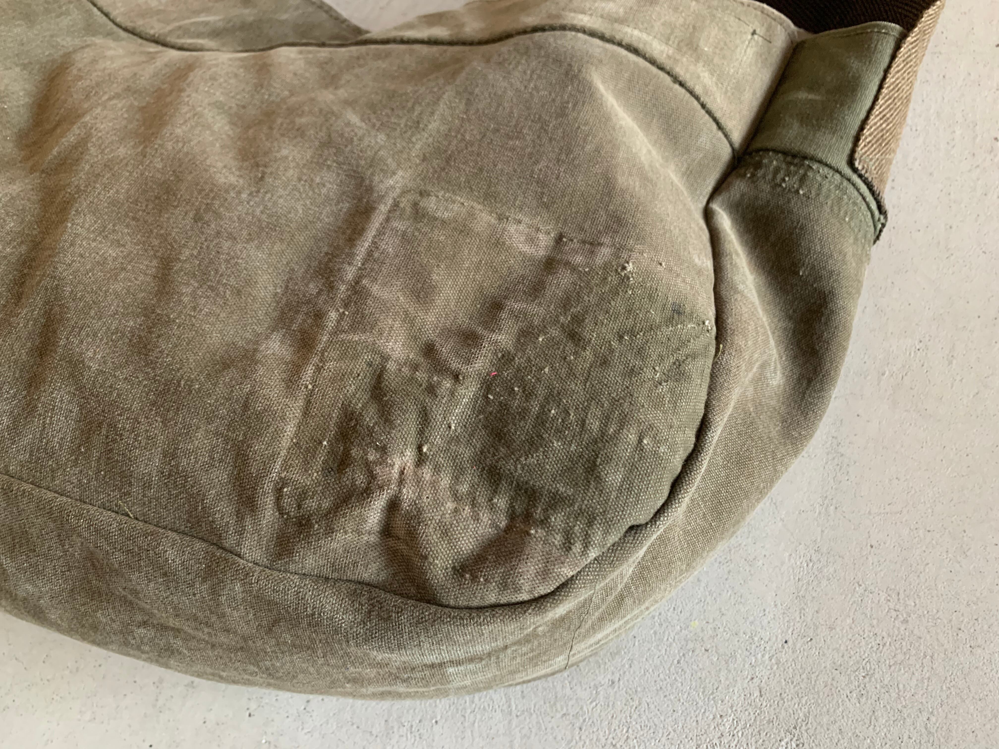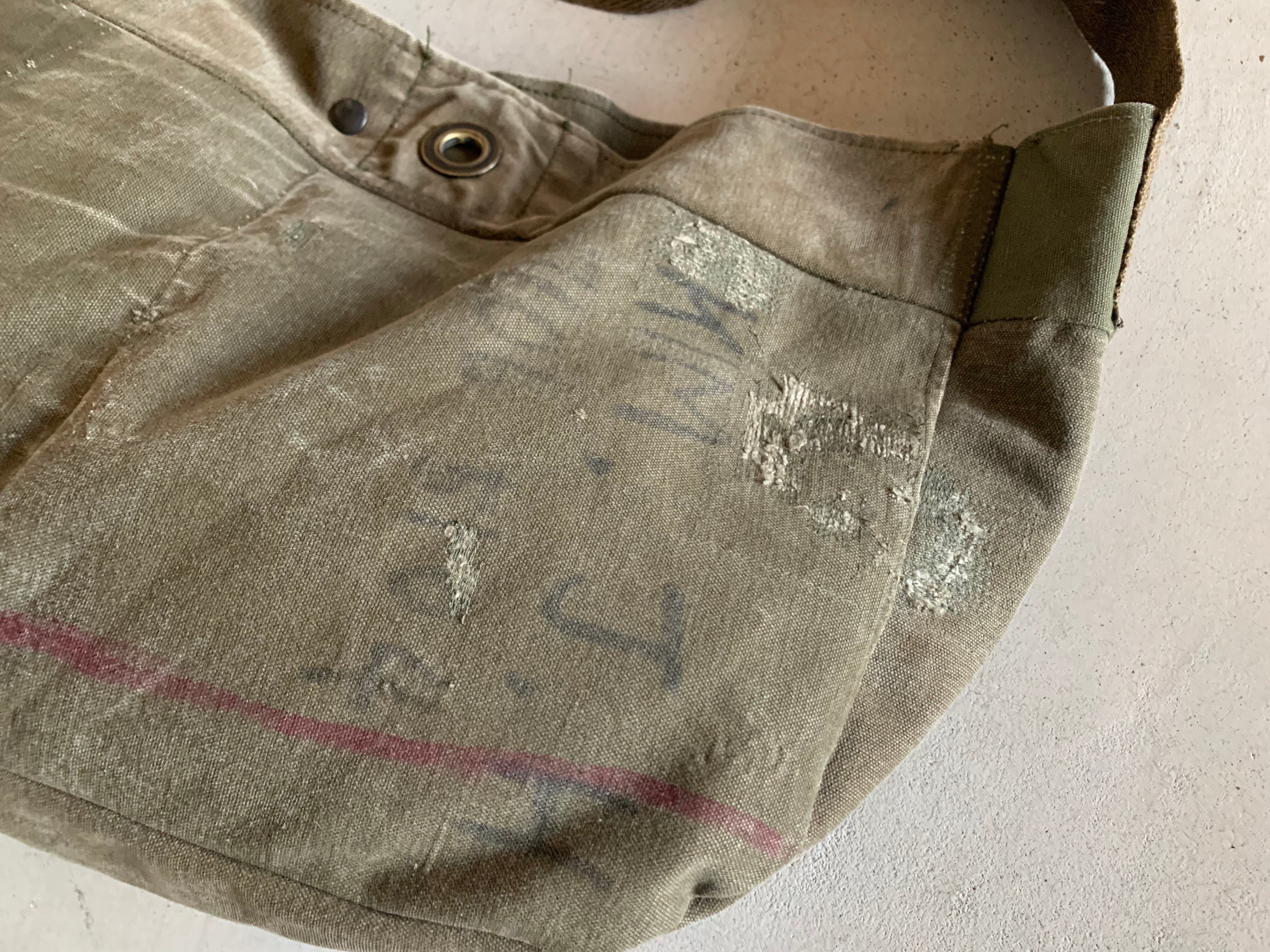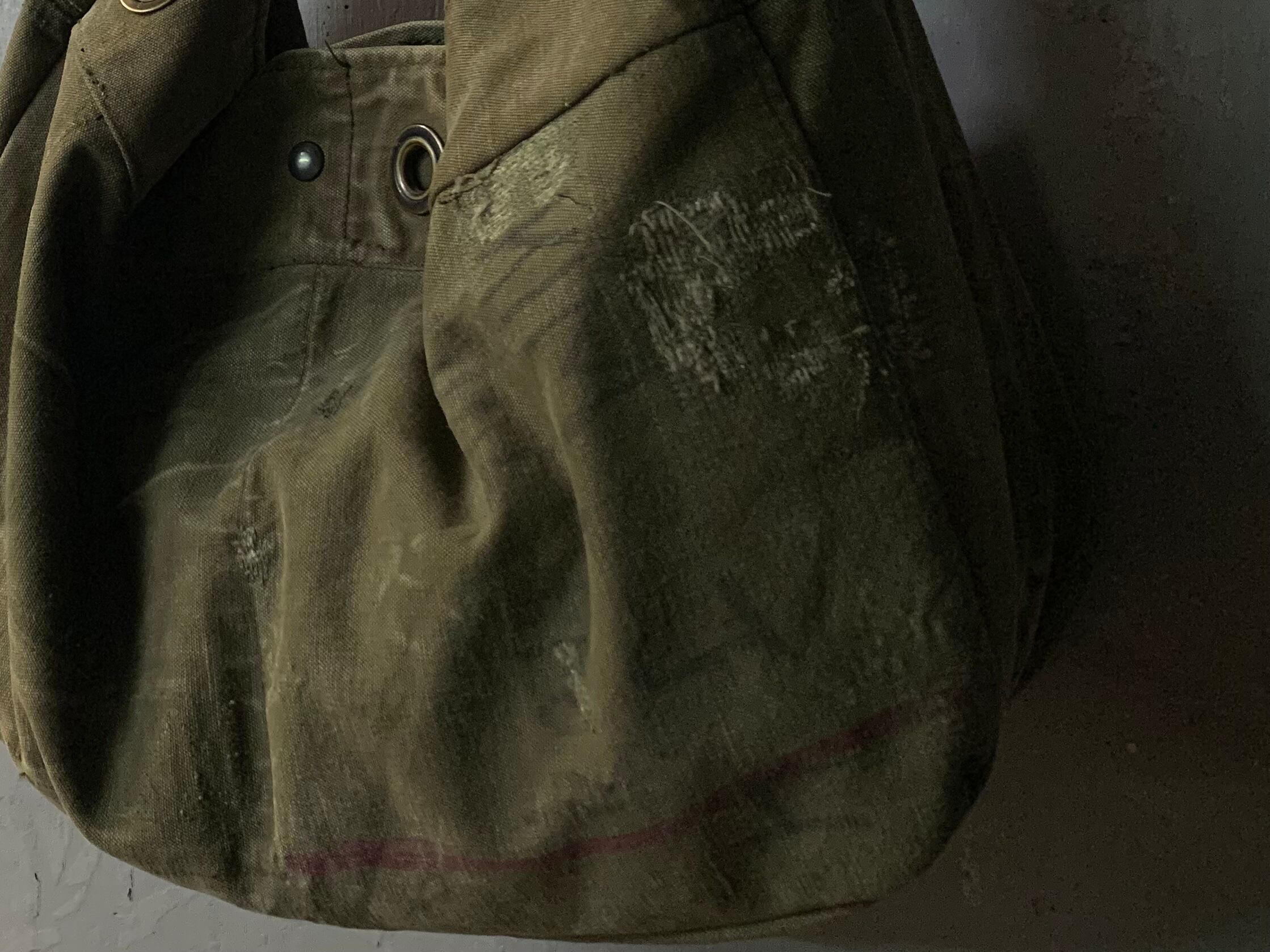 ボディーの生地は70年代、米軍のダッフルバッグ。手書きで名前らしき物が描かれています。
