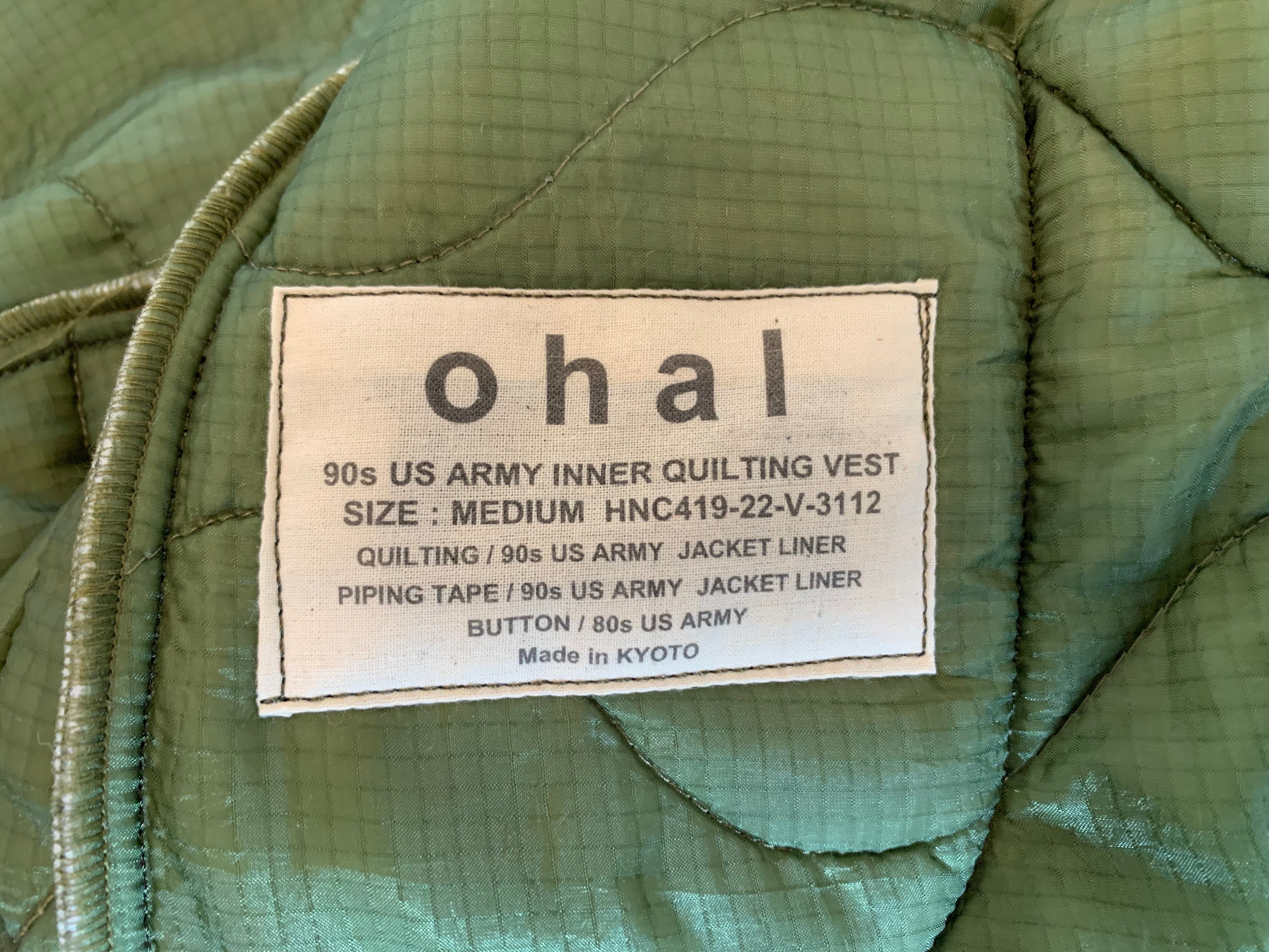 ご予約商品 B ohal / MEDIUM US ARMY Inner Quilting Vest