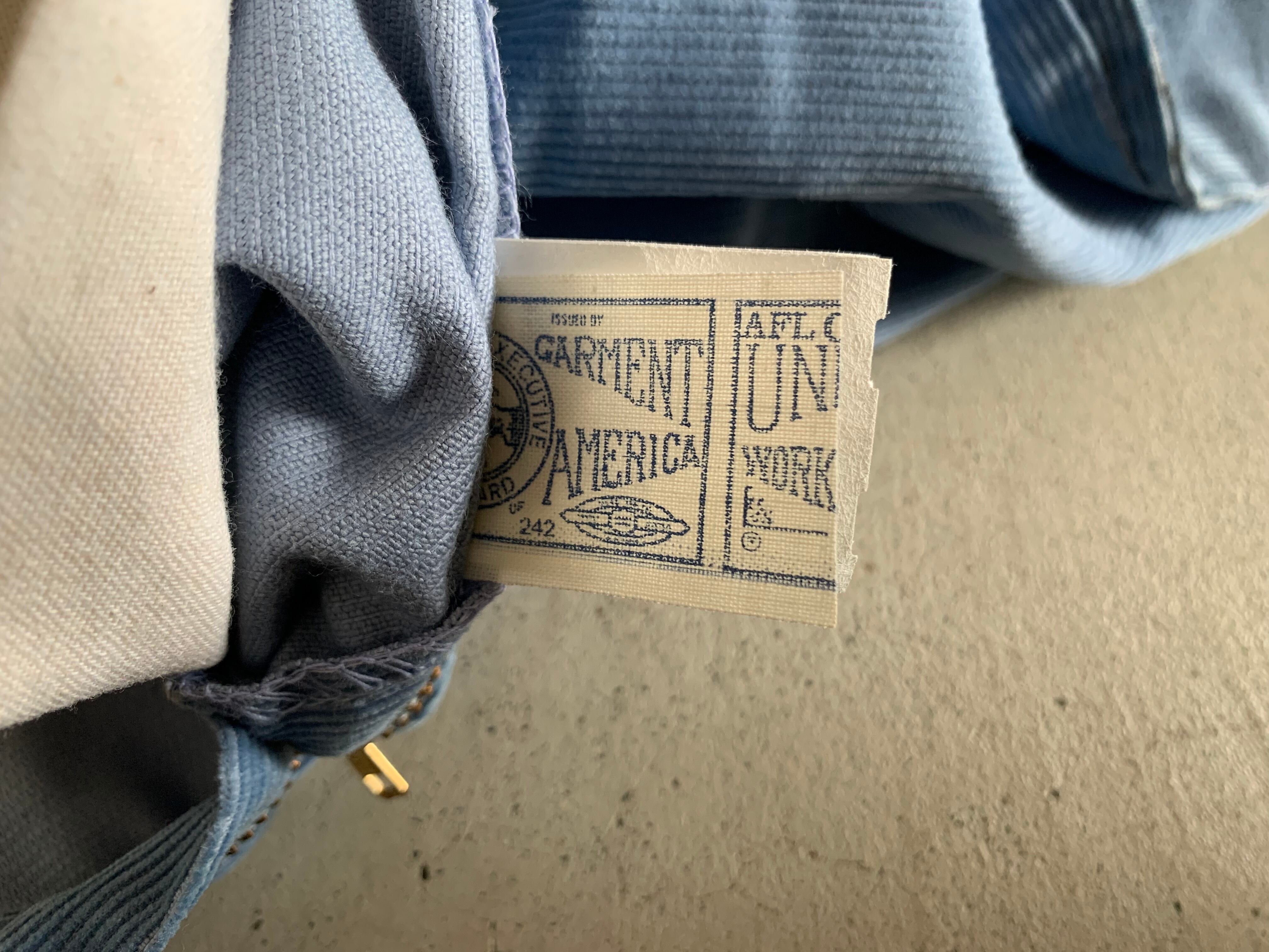 カラーは爽やかなサックスブルー、ジッパーは42TALON、ユニオンチケット、フラッシャータグ付きです。