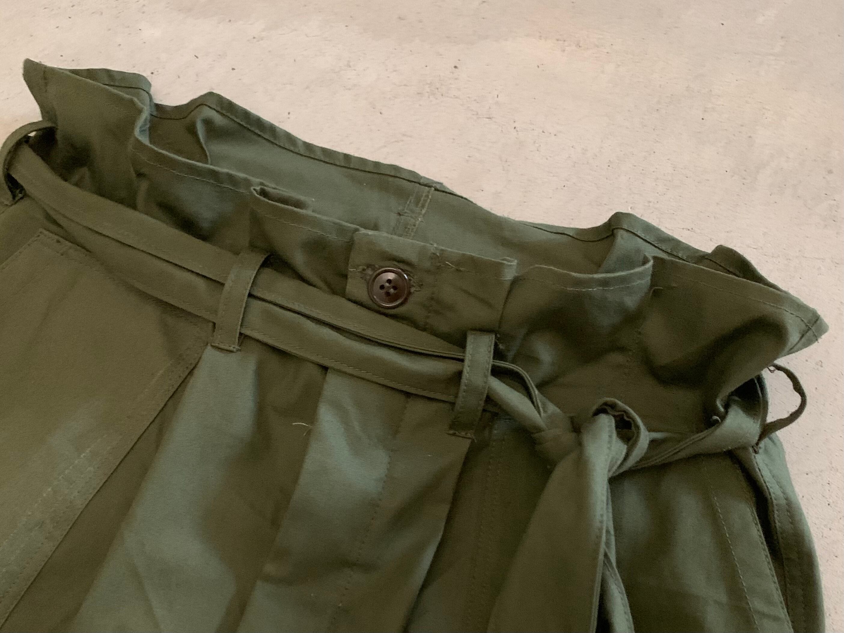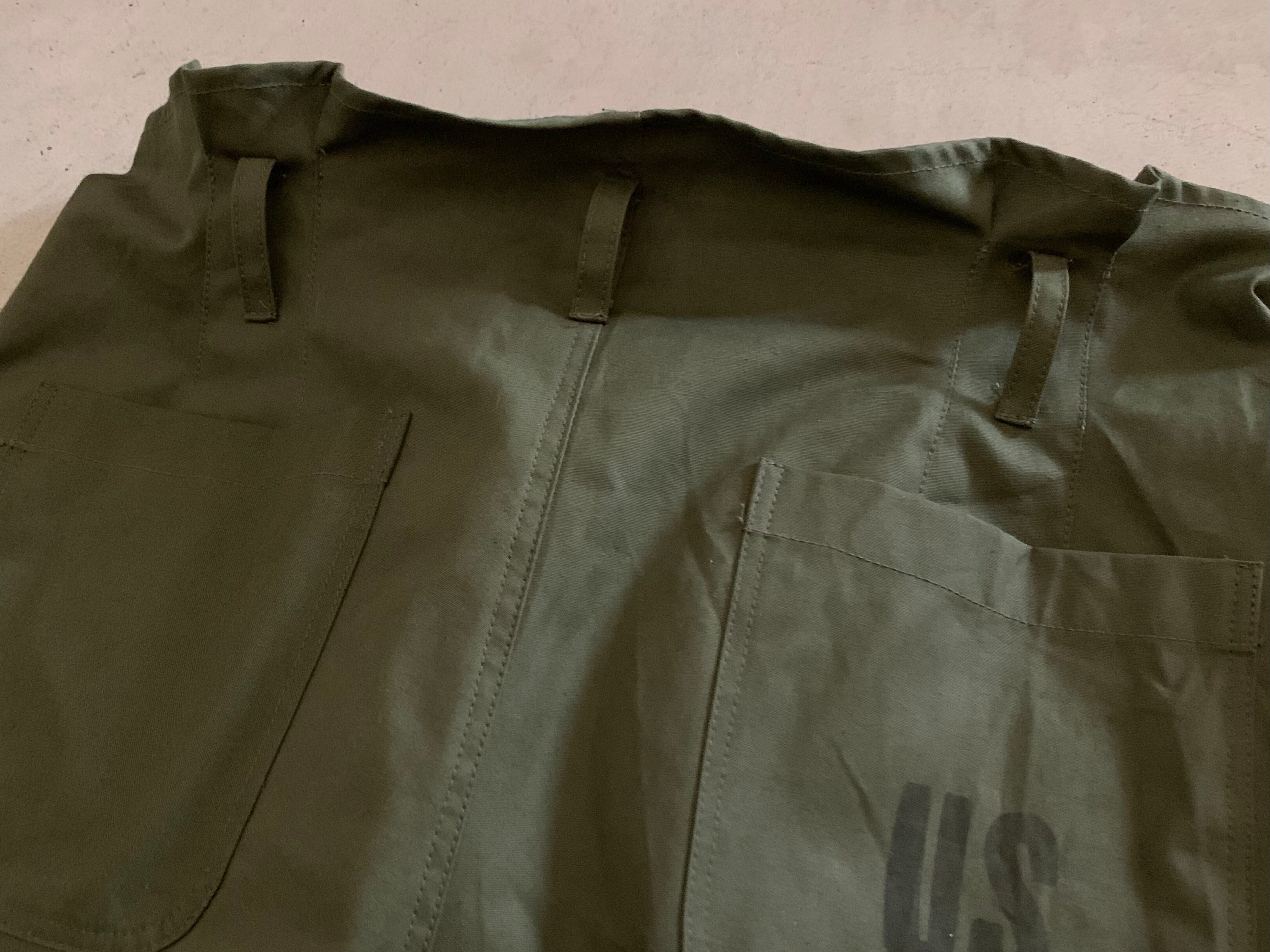 ボディーの生地は70年代、アメリカ軍のスリーピングバッグケース。ボタンは50年代、アメリカ軍のもの。糸は30番手の太めの綿糸で縫っているので、ミリタリー らしい武骨な雰囲気を醸し出しいます。