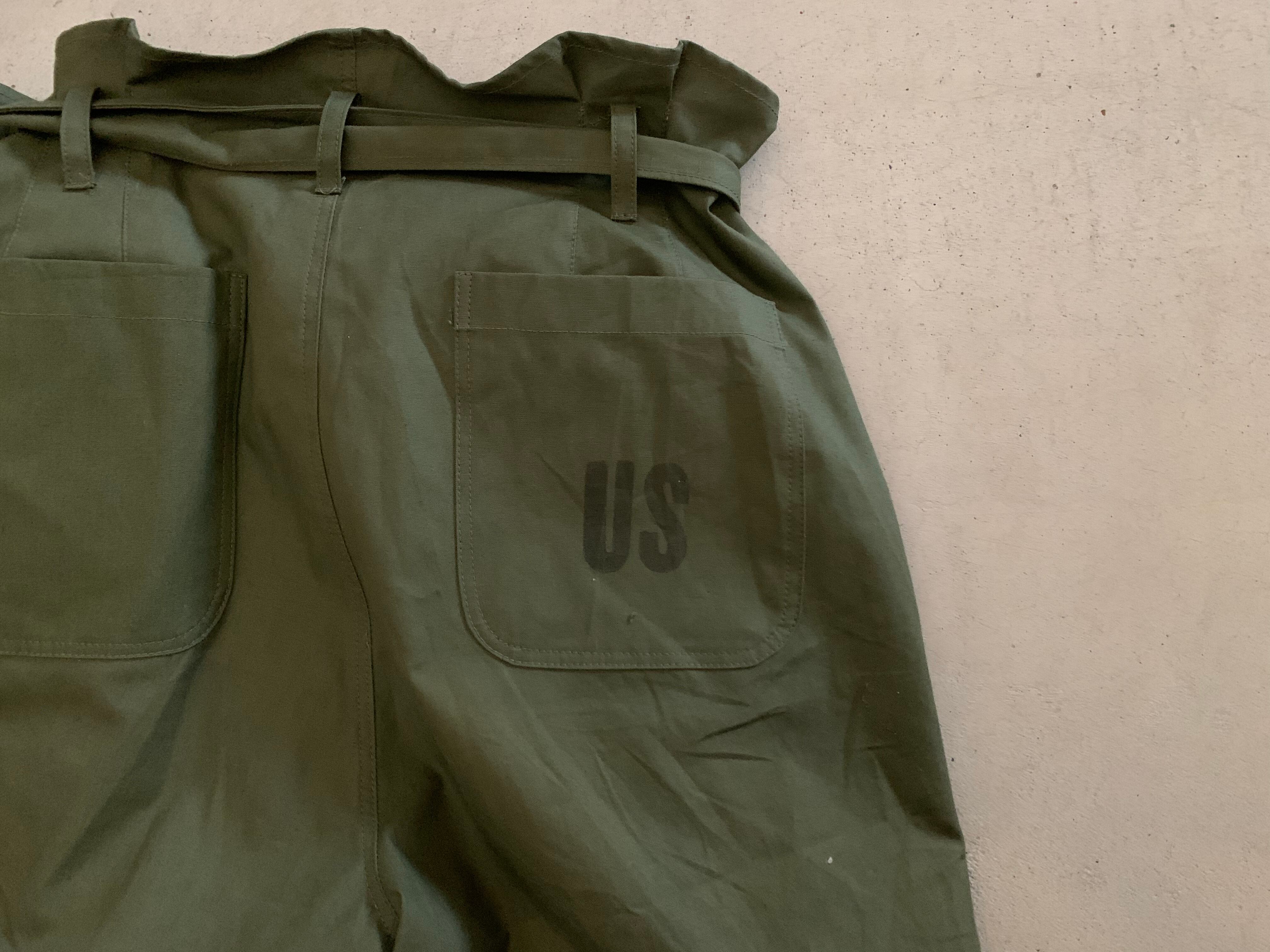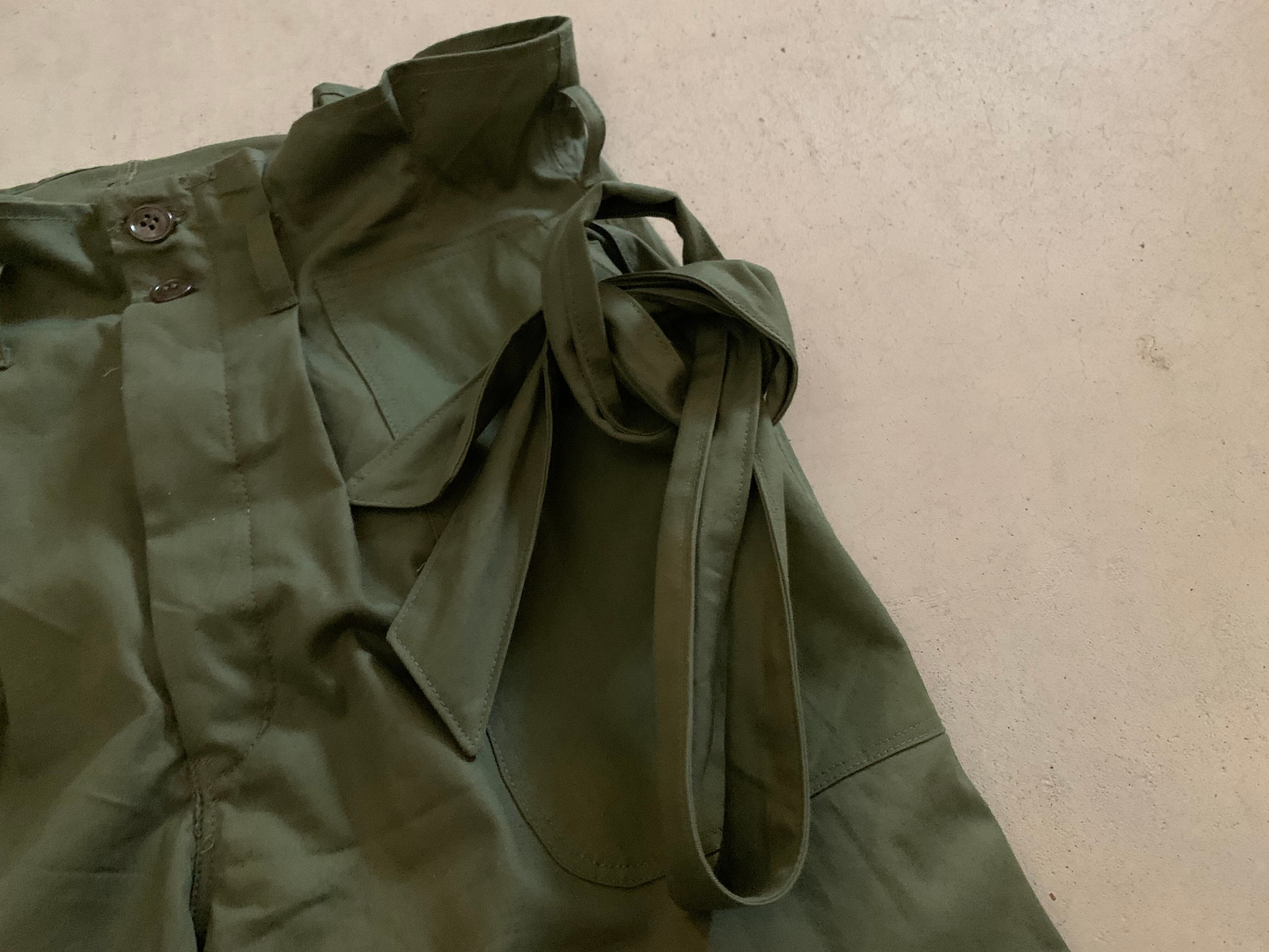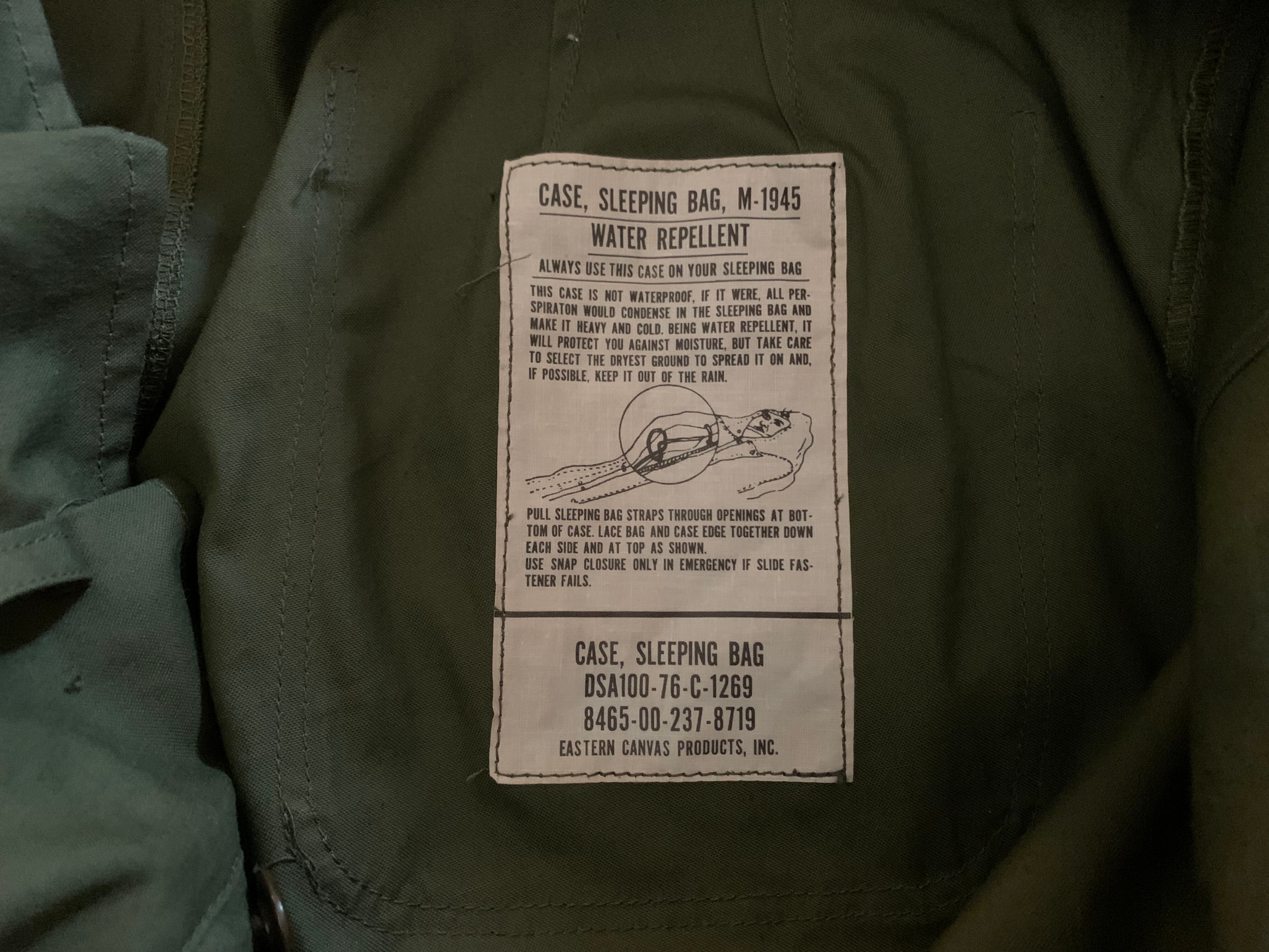 内側にはスリーピングバッグケースについていたタグをつけています。76年に米軍に納入された物とわかります。共生地で作った帯ベルトも付属します。