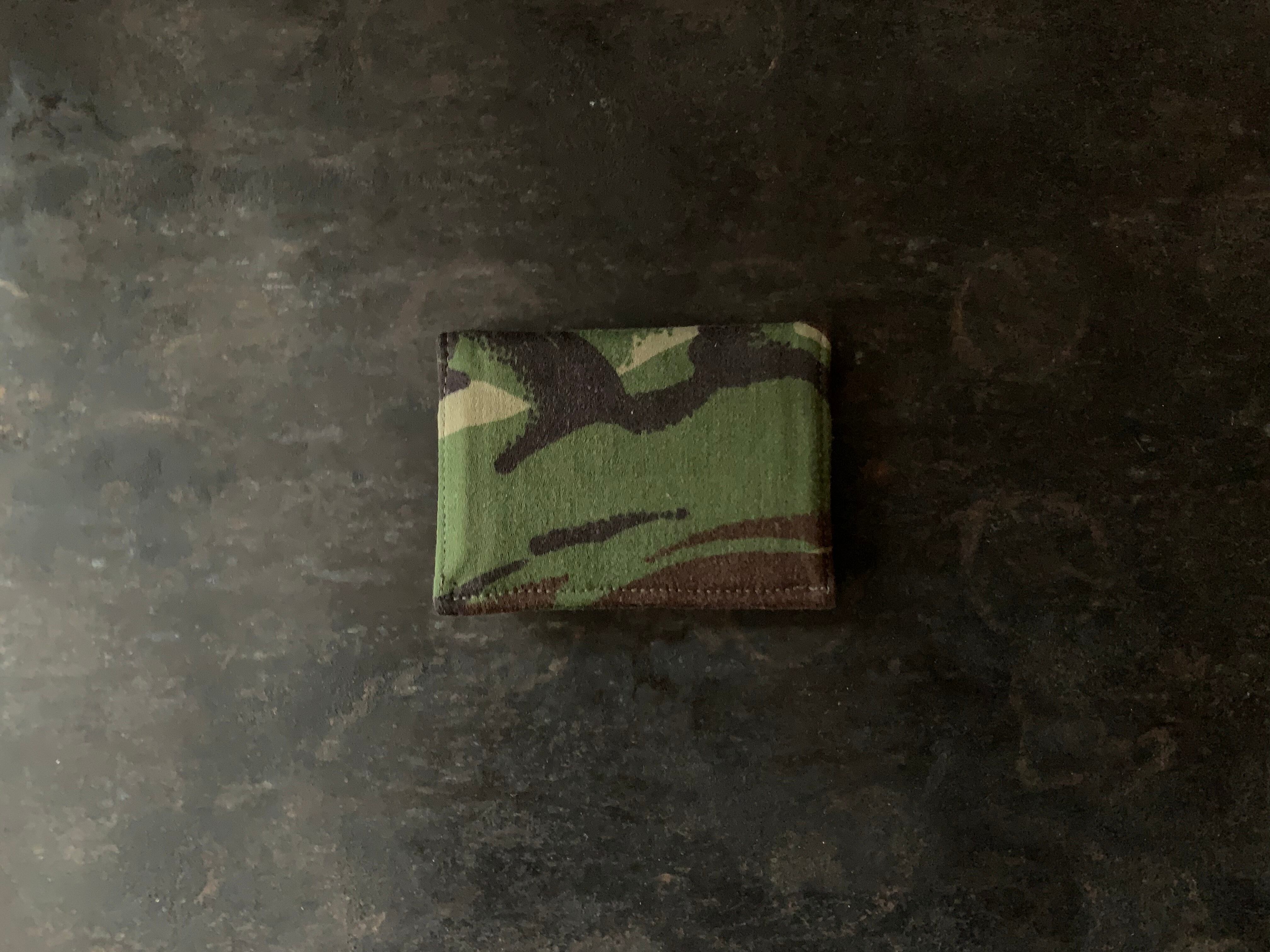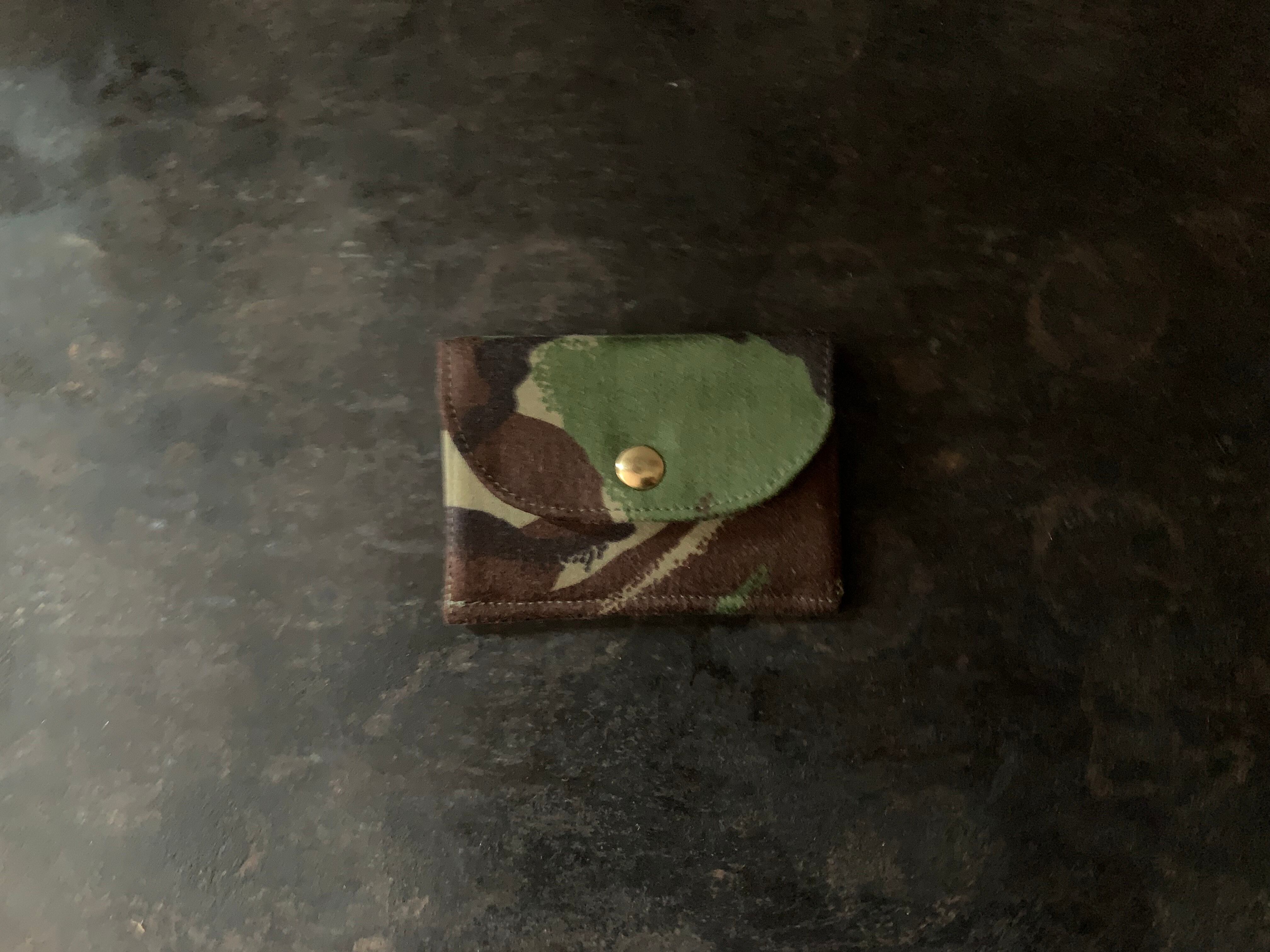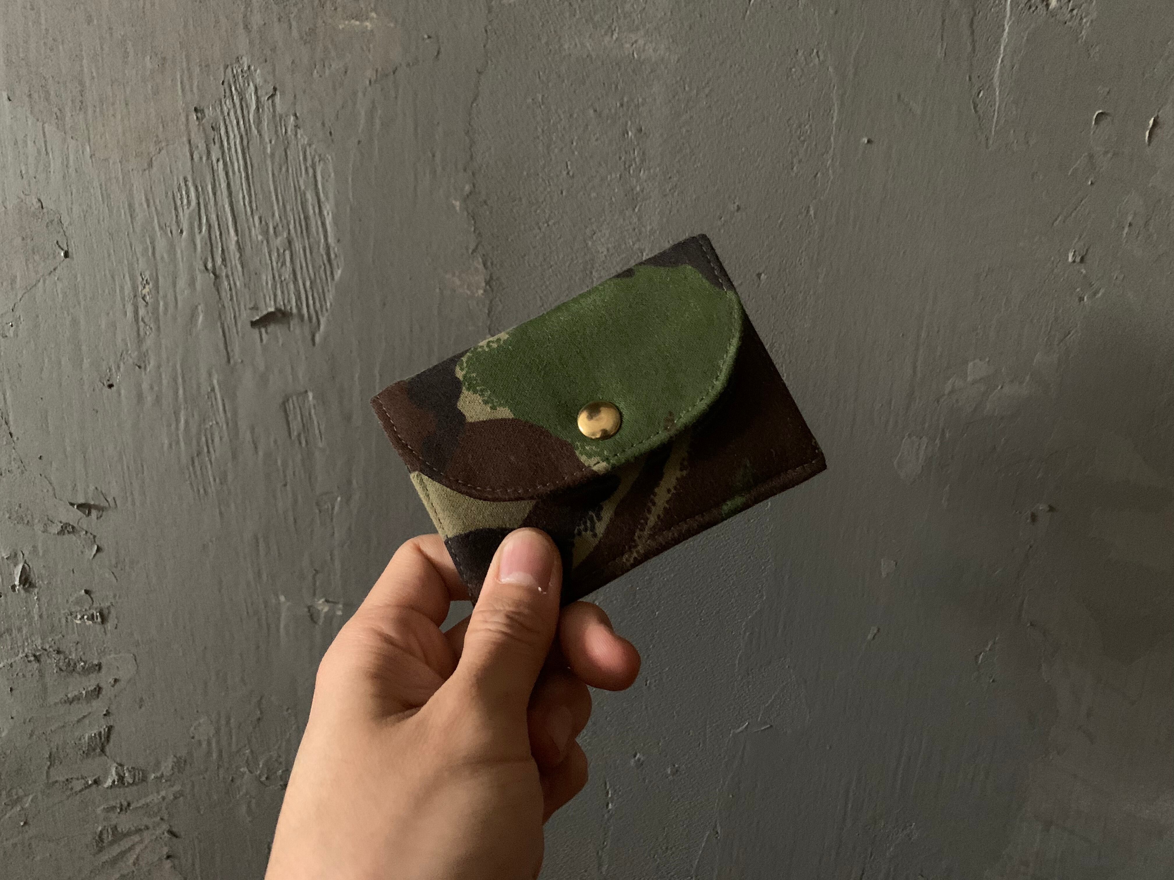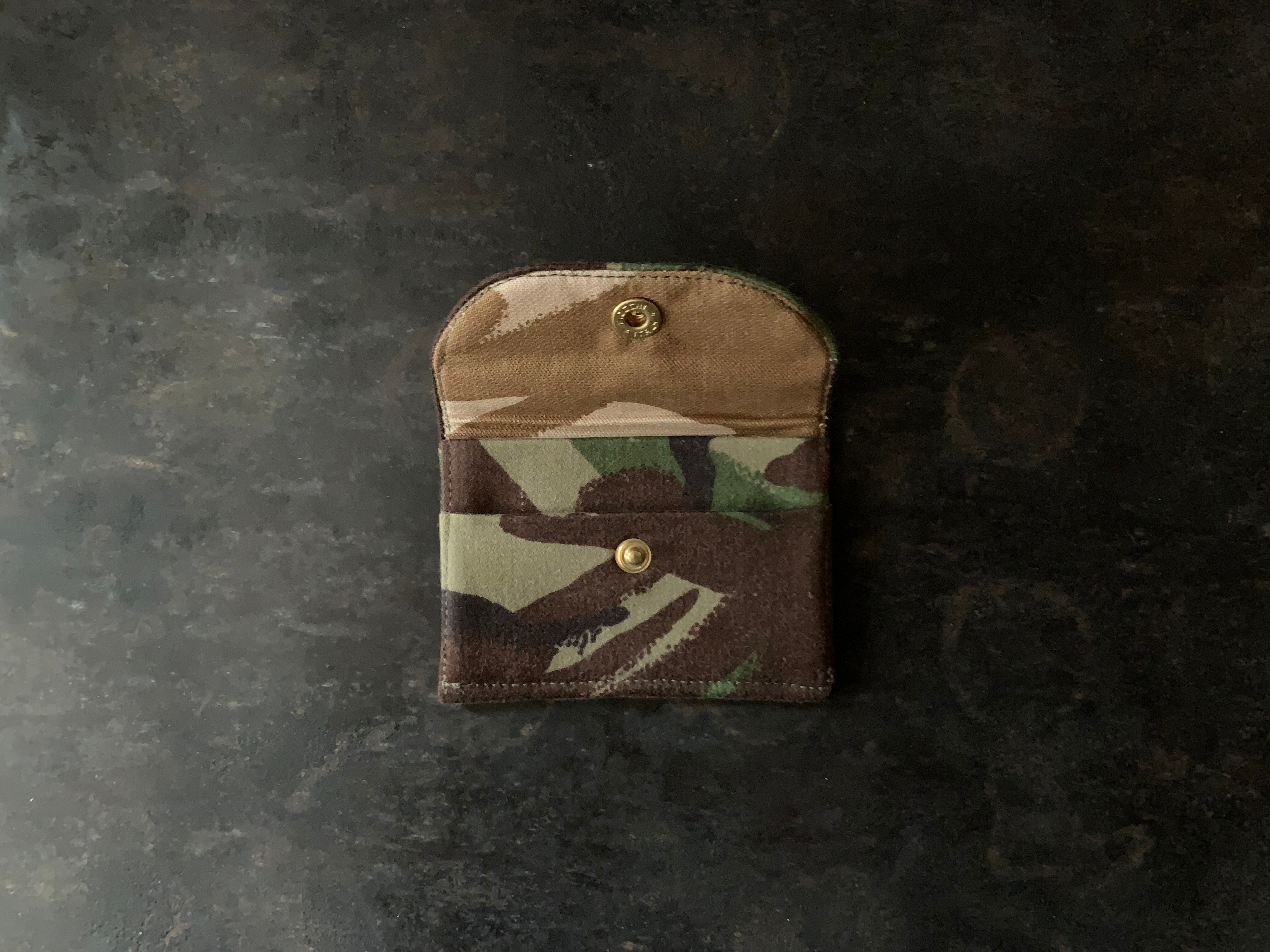 外側の生地は90年代、イギリス軍のユーティリティパンツ。内側は90年代、イギリス軍のデザートカモジャケット。カード入れは2室ございます。