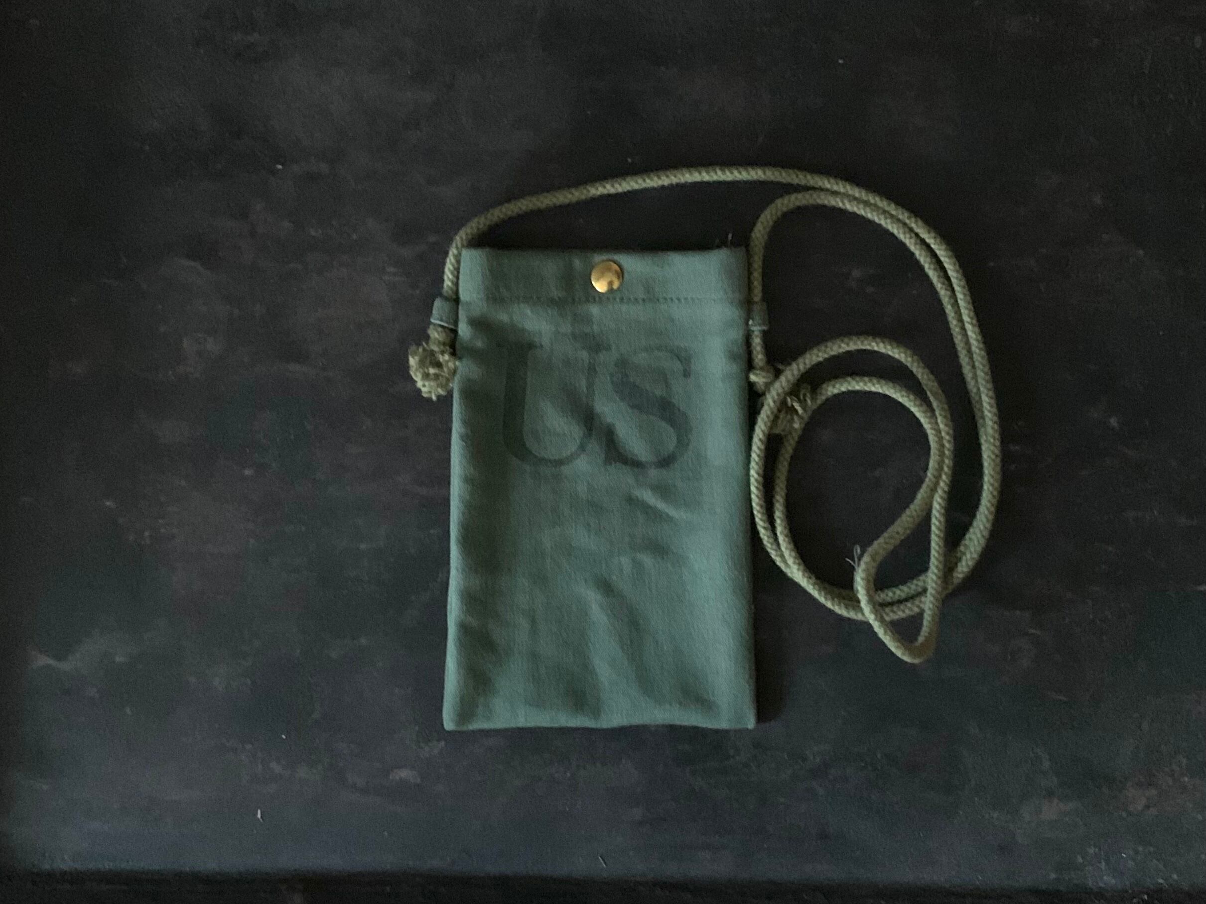 米軍のランドリーバッグを解体し作成したスマホポーチ(スマホショルダー)です。
