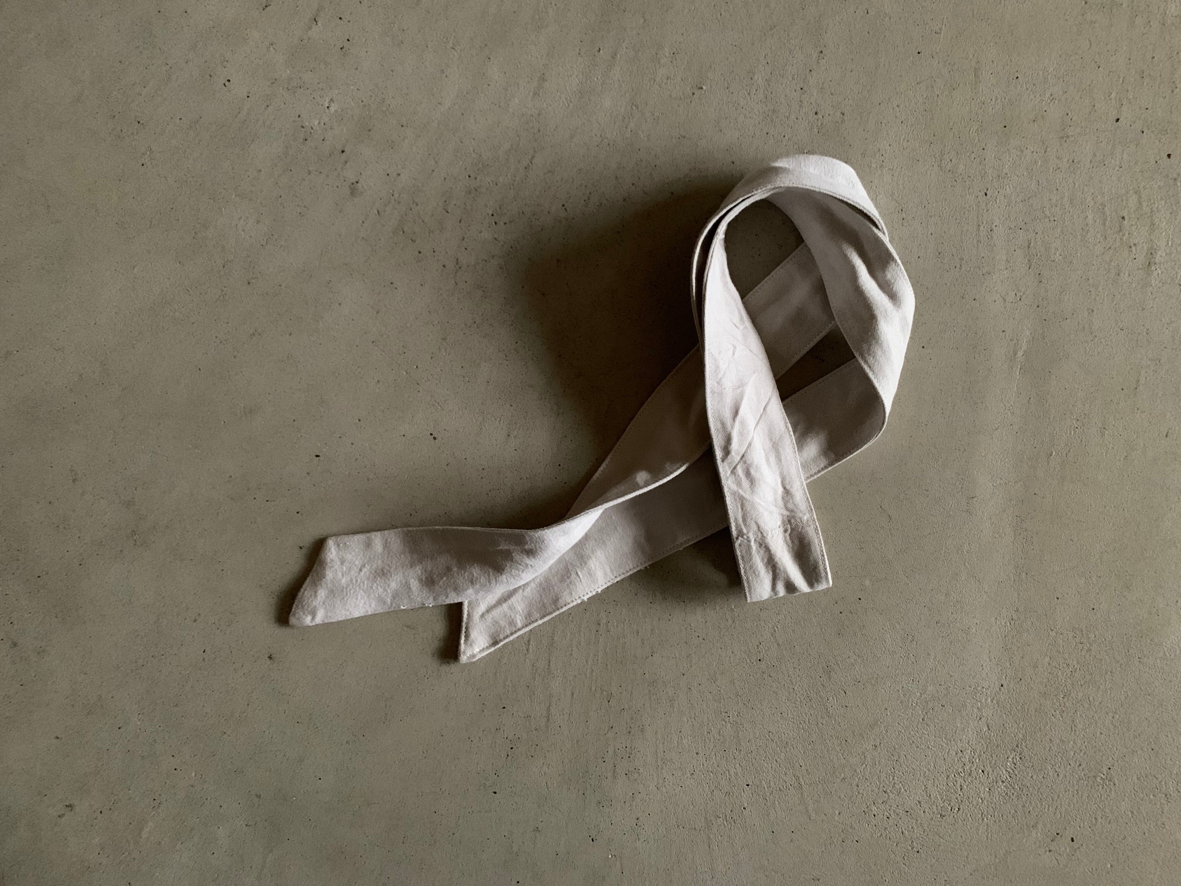 内側にはマットレスカバーについていたタグをつけています。共生地で作った帯ベルトも付属します。