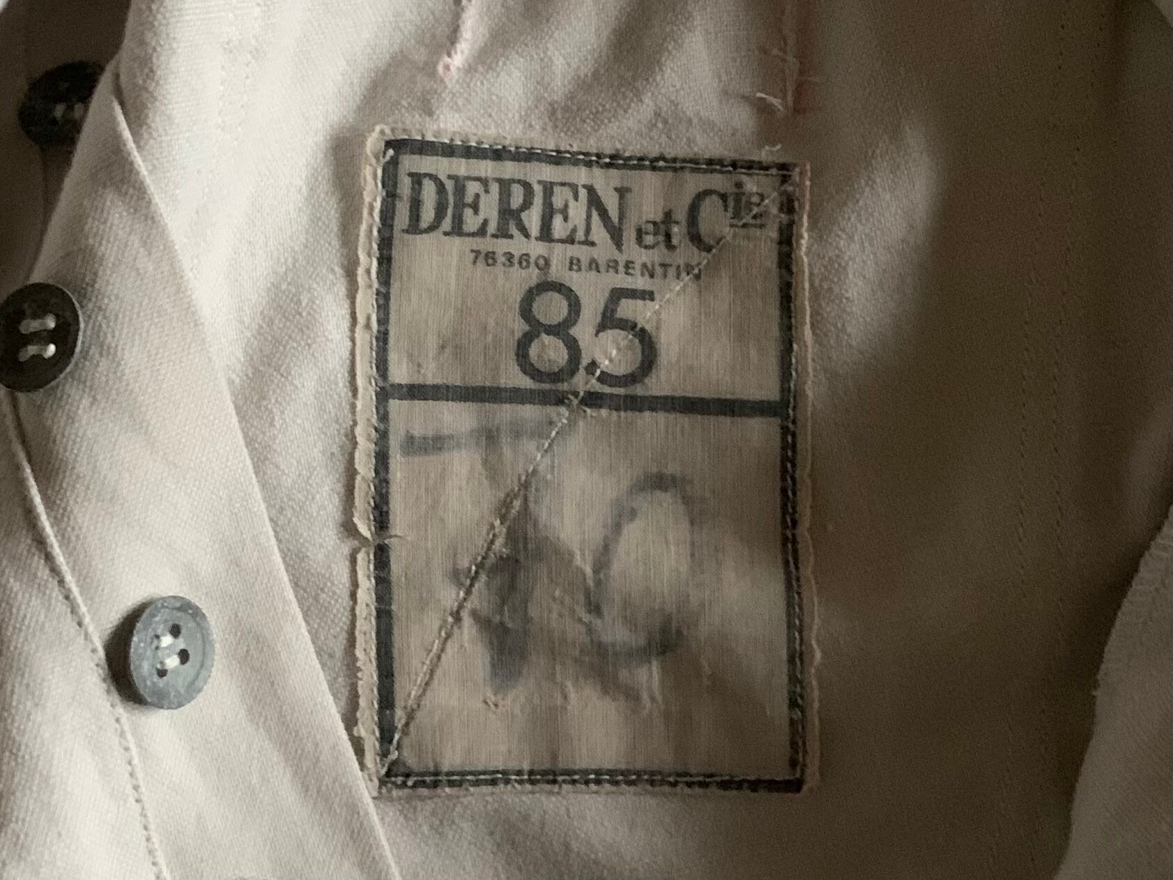 ボディーの生地はフランス軍に納入されたDeren et Cie社製の肌触りの良いリネン素材のマットレスカバー。年代は不明ですが、タグに記入されてる『85』が年代かもしれません。