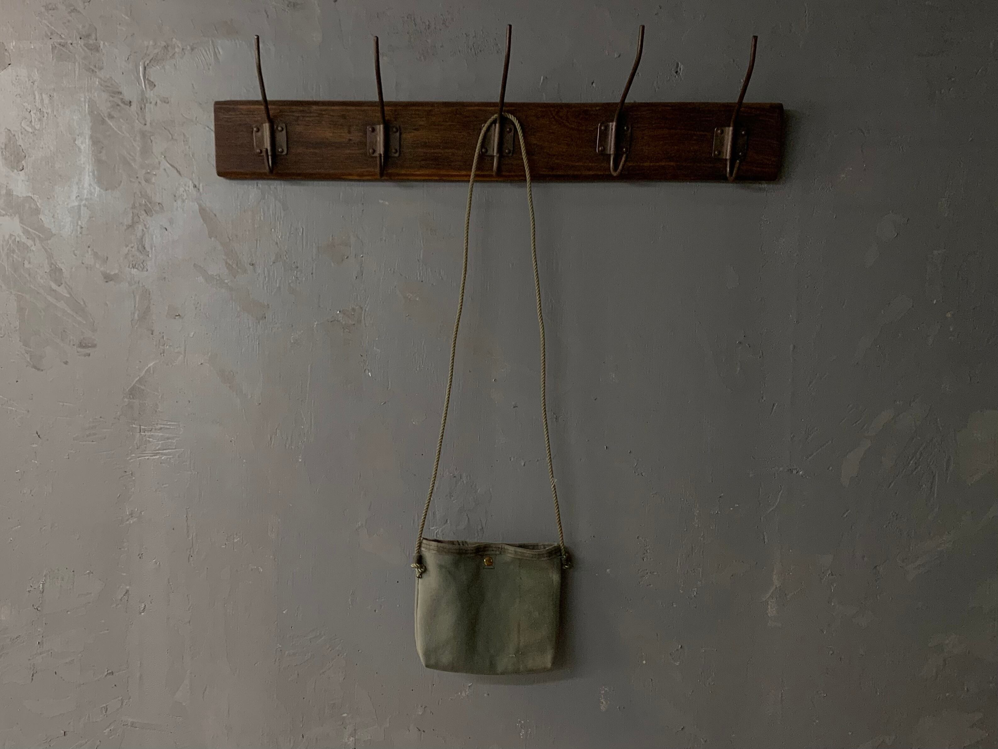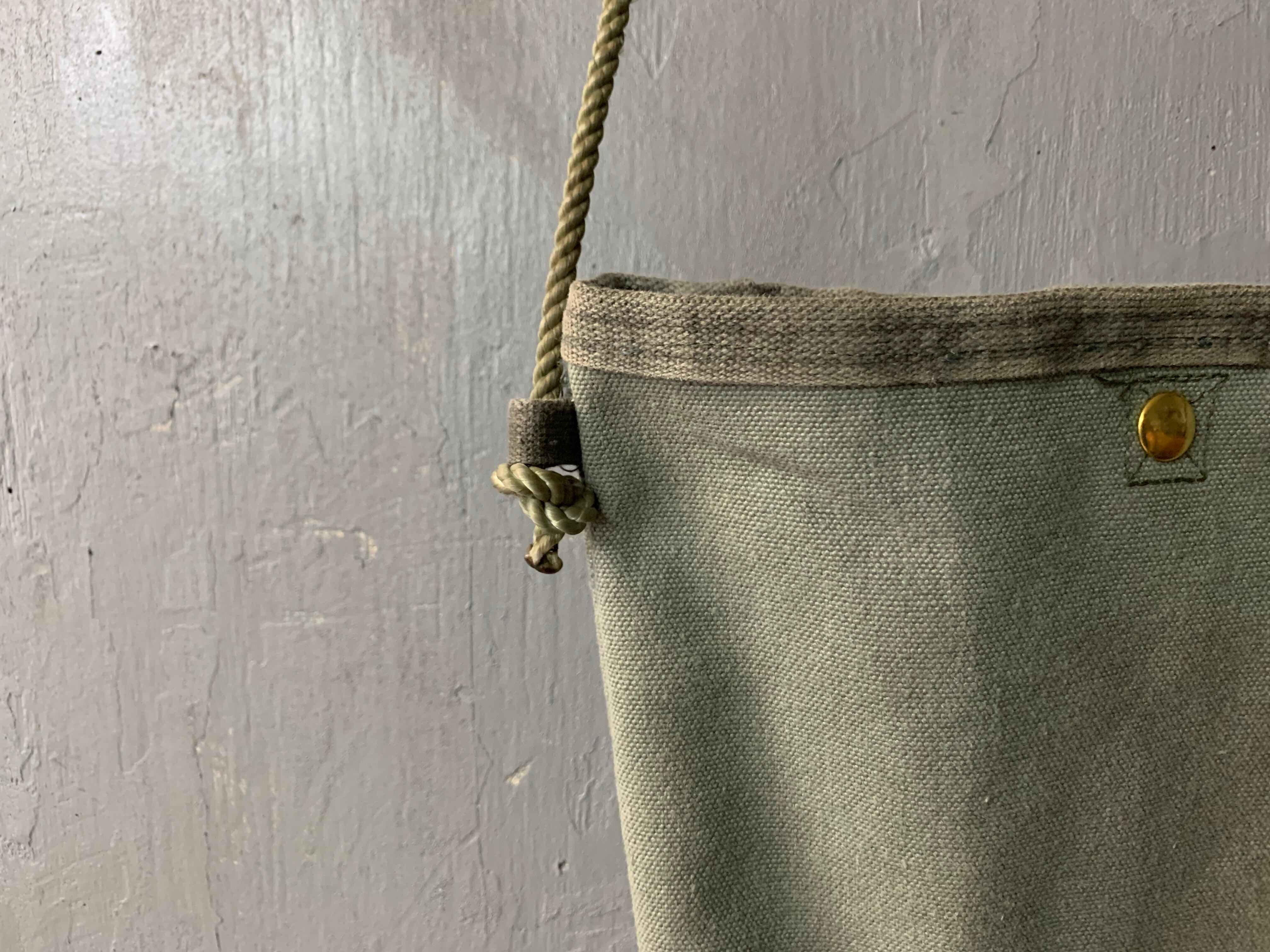 ショルダーの紐は50年代頃の旗を上げる時に使用される非常に丈夫な細いロープです。結び目をつくることでショルダーの長さを調節できます。