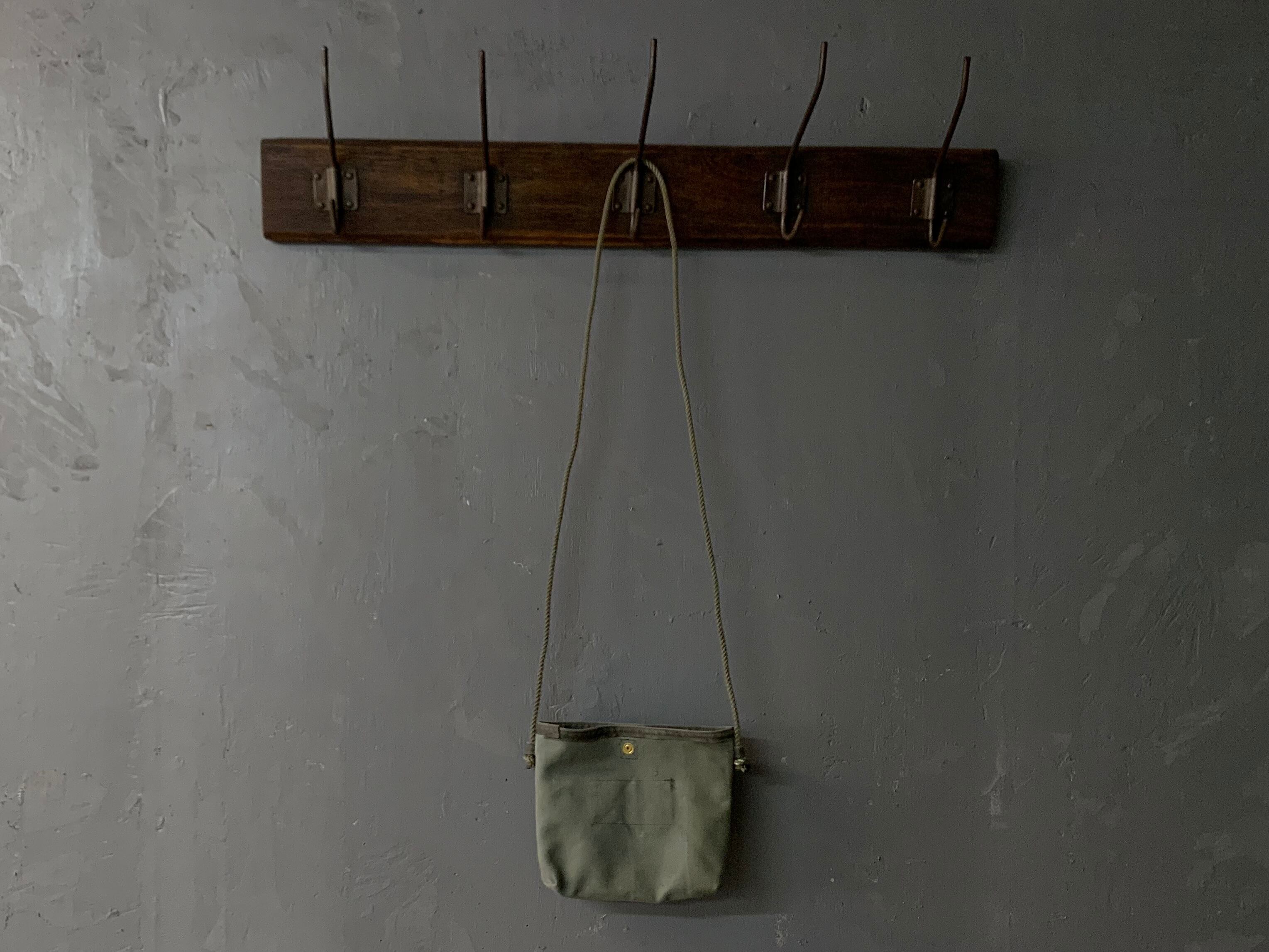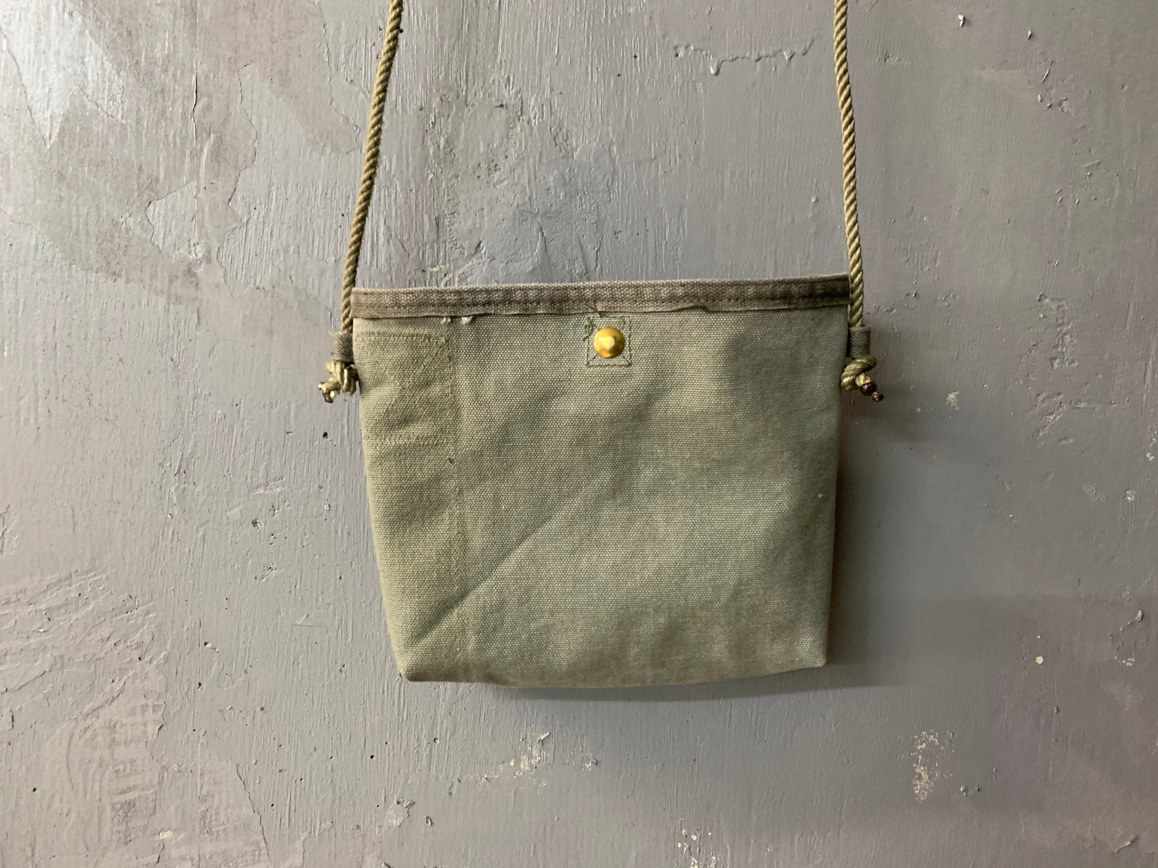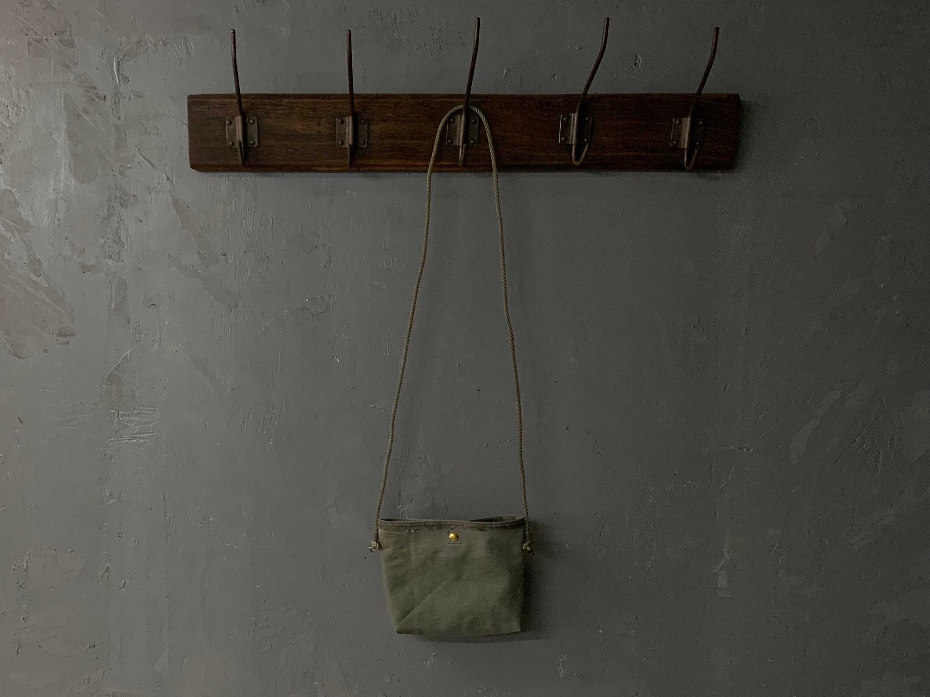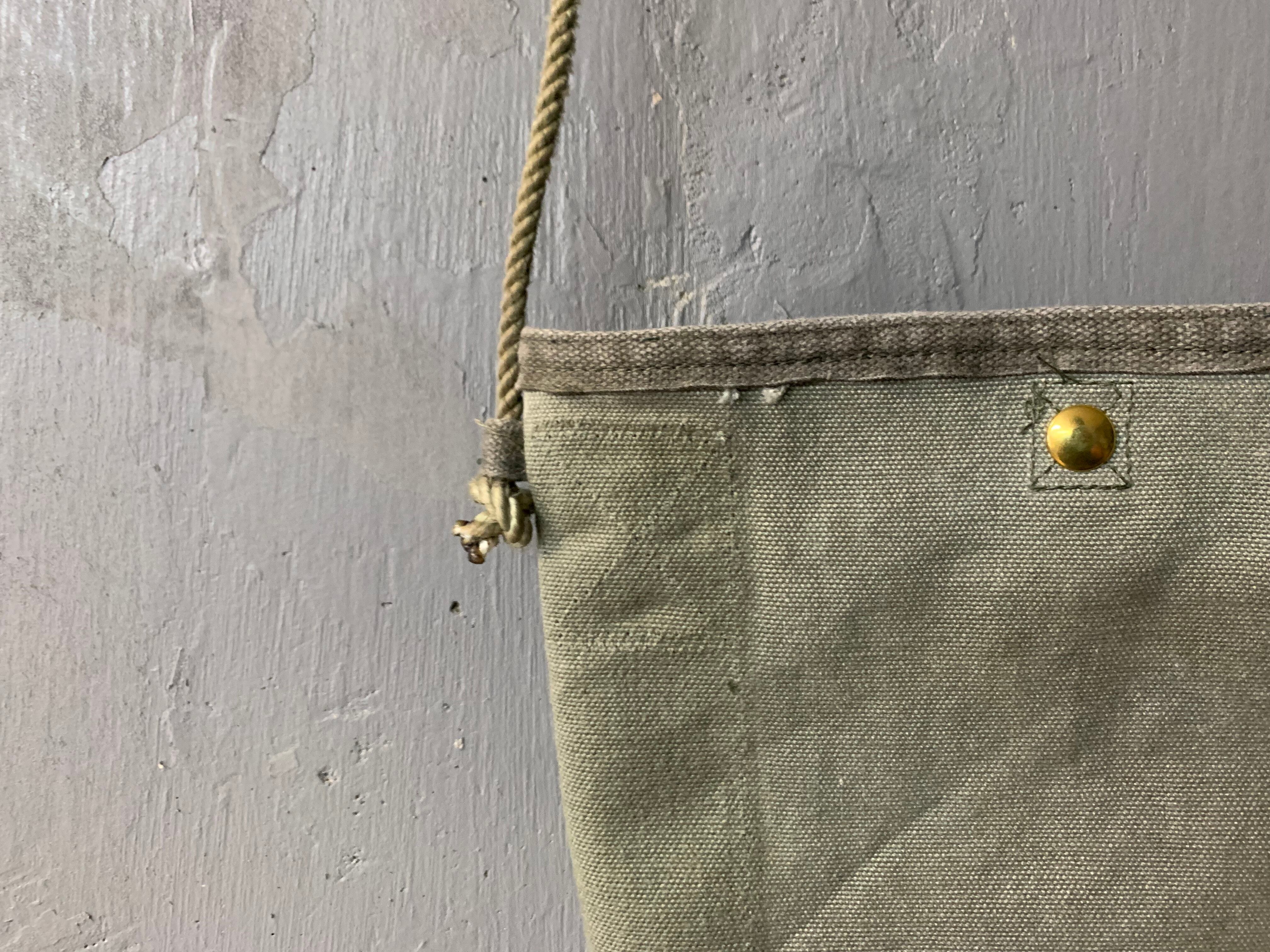 ショルダーの紐は50年代頃の旗を上げる時に使用される非常に丈夫な細いロープです。結び目をつくることでショルダーの長さを調節できます。