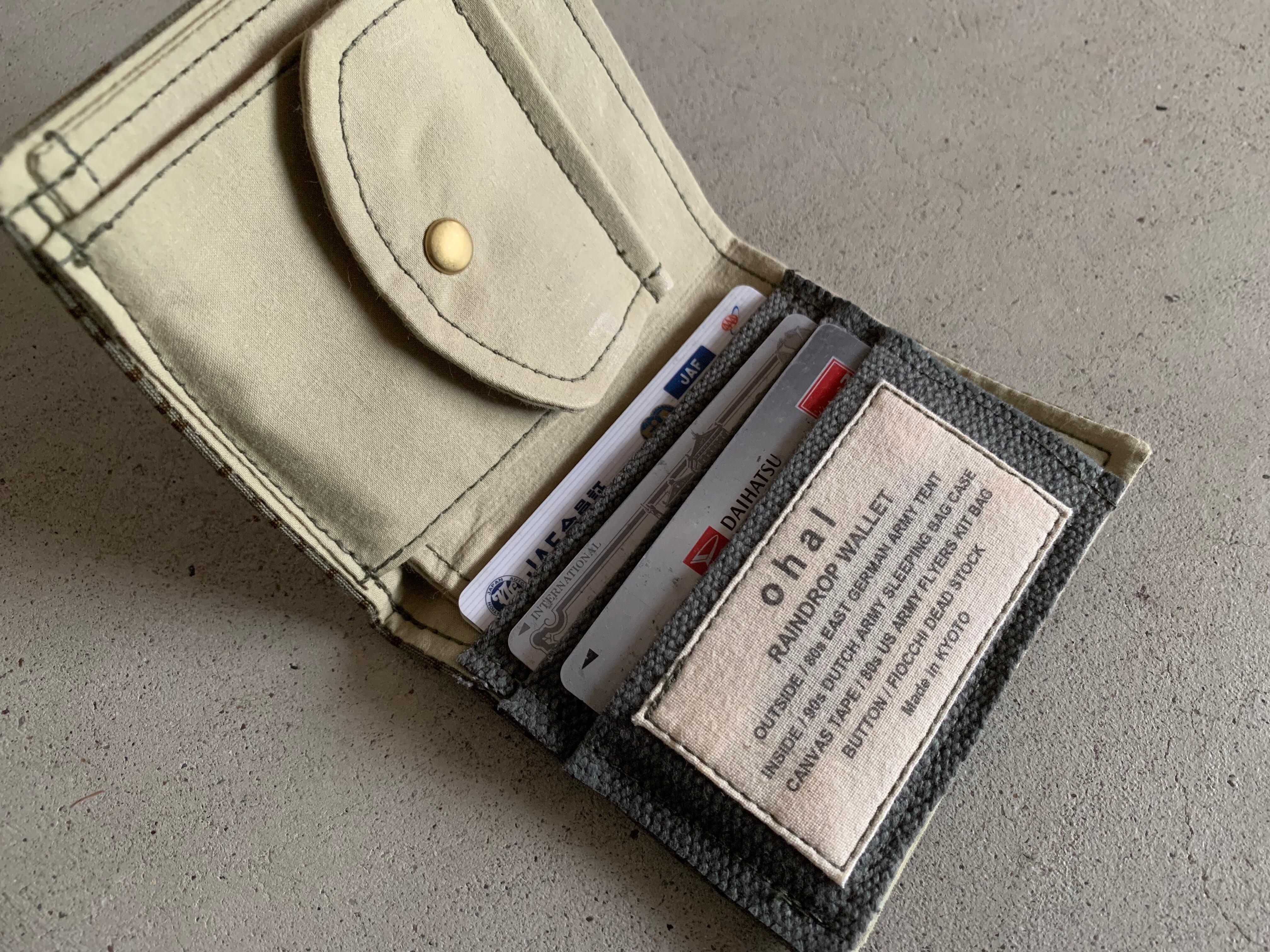カード入れで使用しているキャンバステープは80年代、米軍にて使用されていたものです。運転免許証、クレジットカードなどが入るサイズです。