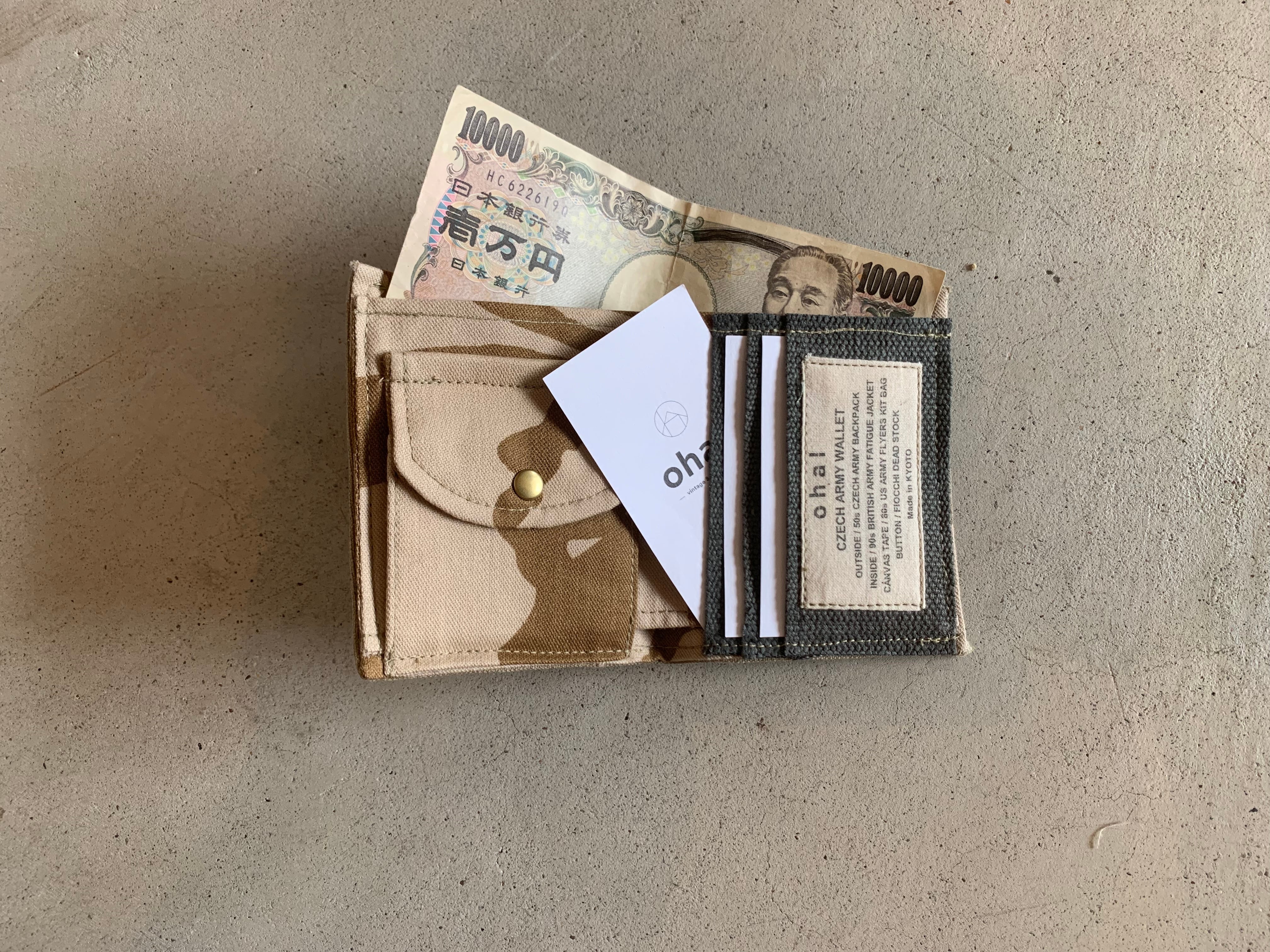 カード入れで使用しているキャンバステープは80年代、米軍にて使用されていたものです。運転免許証、クレジットカードなどが入るサイズです。