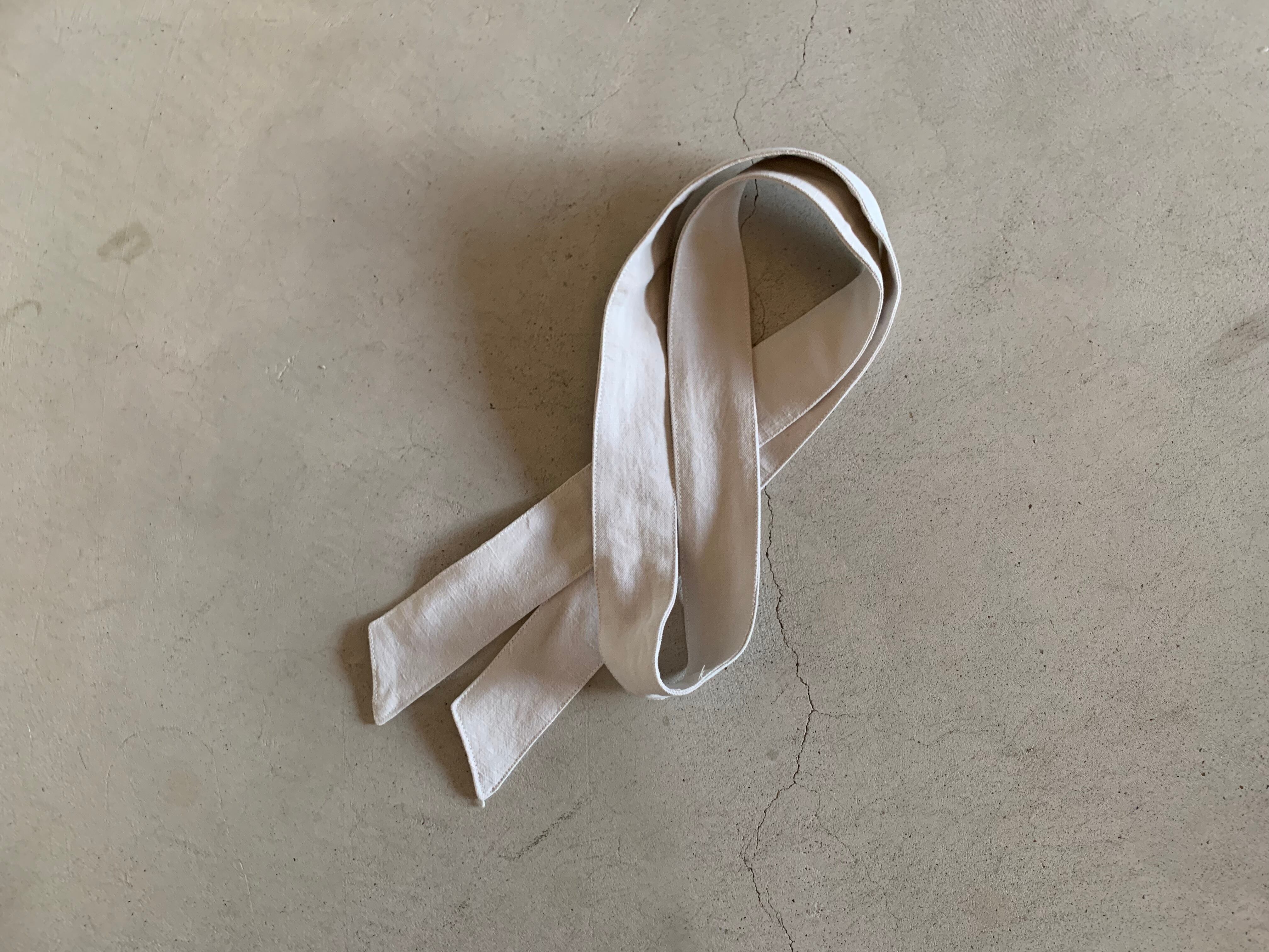 内側にはマットレスカバーについていたタグをつけています。共生地で作った帯ベルトも付属します。