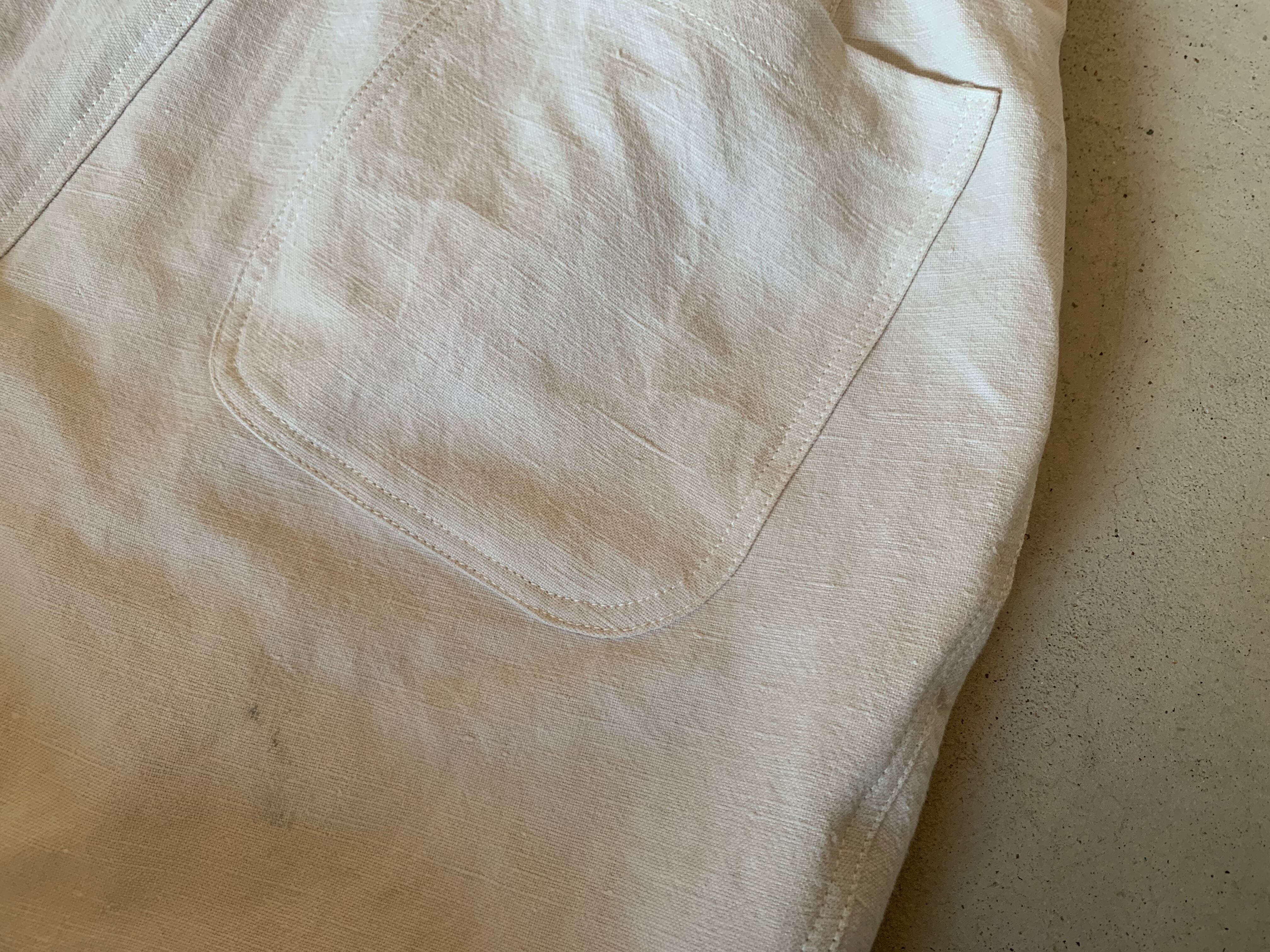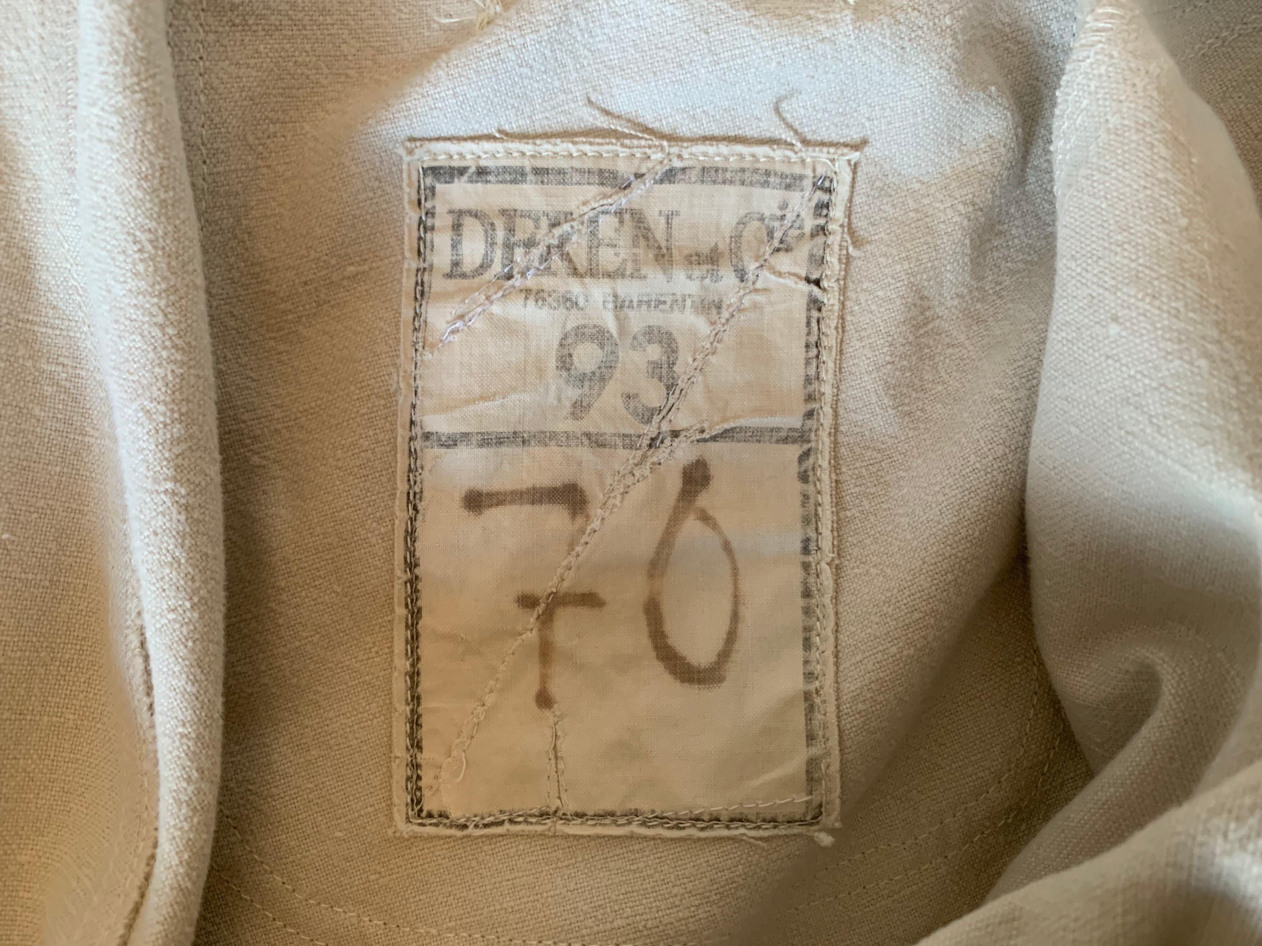 ボディーの生地はフランス軍に納入されたDeren et Cie社製の肌触りの良いリネン素材のマットレスカバー。年代は不明ですが、タグに記入されてる『93』が年代かもしれません。