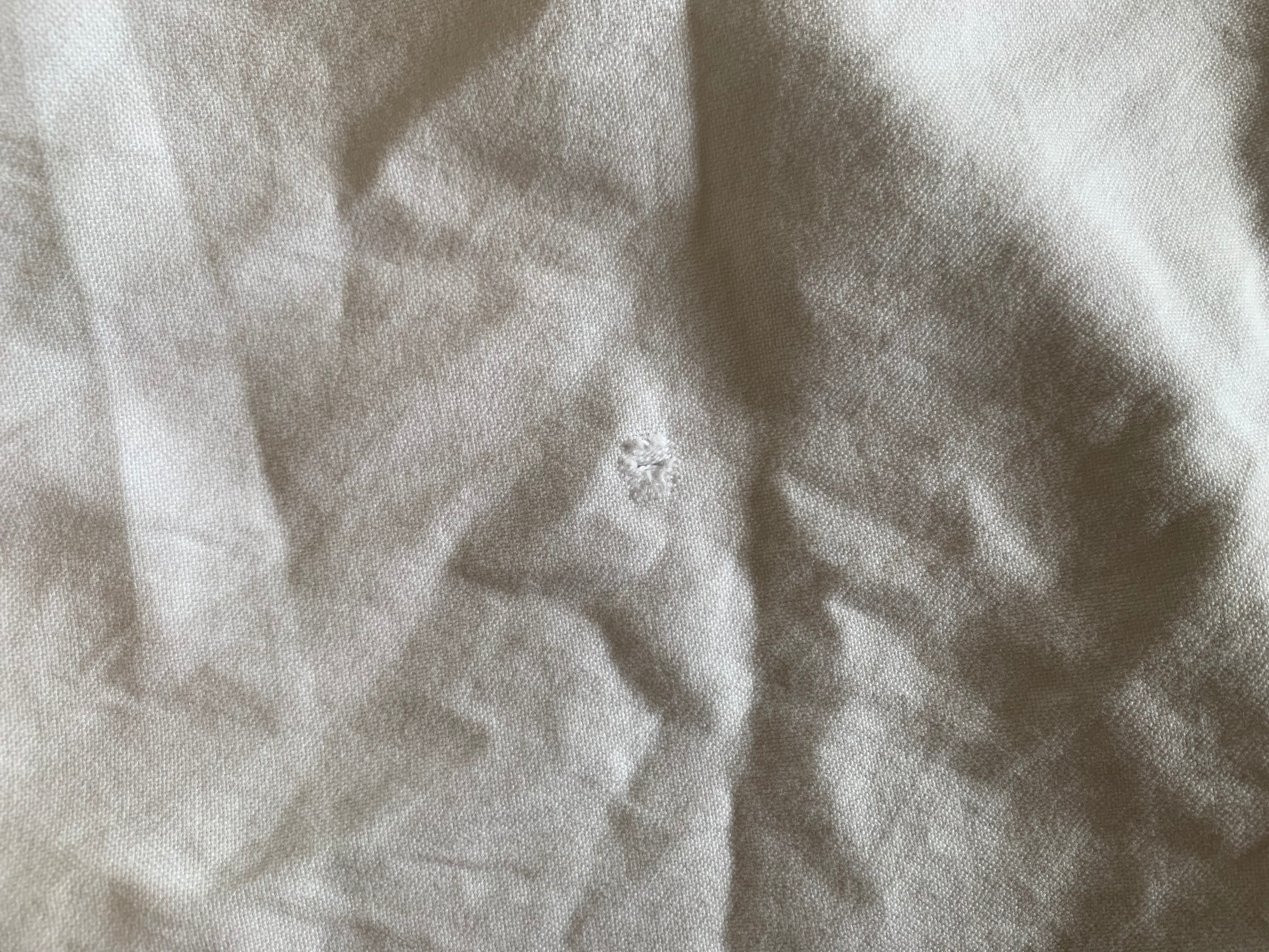 背面の裾あたりに小穴がございます。画像でご確認ください。