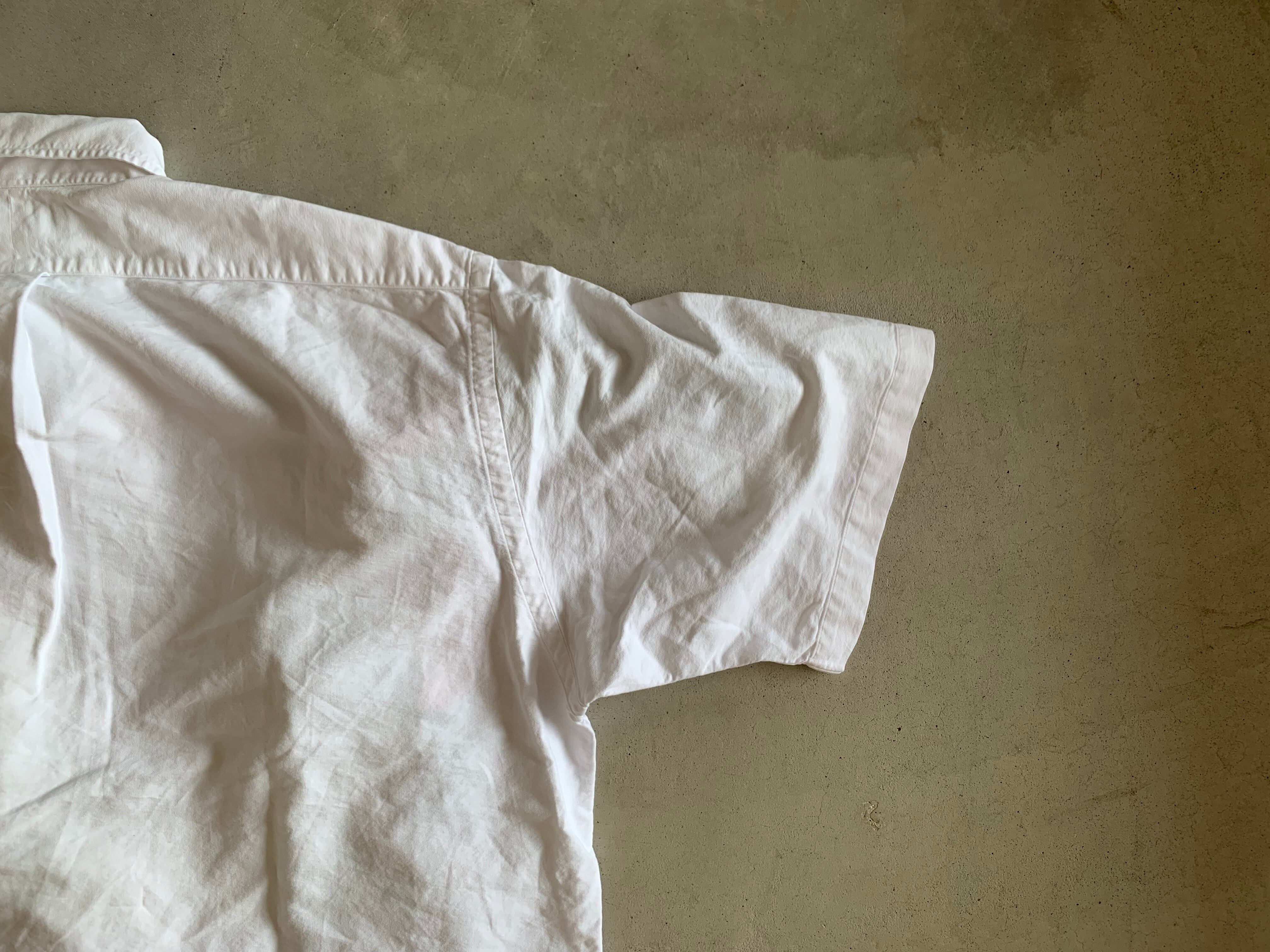 着た時に、横から見たAラインのシルエット、着丈の長さ、袖のクシュッとした具合など昨今のオーバーサイズスタイリングに好相性の一枚。さらに半袖シャツは長袖に比べると生産数自体が少ないので、探すのに苦労します。