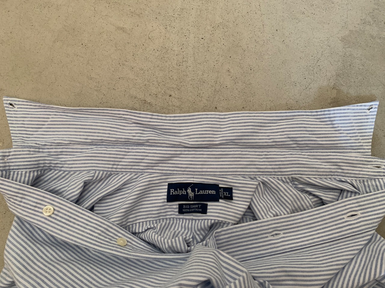 ただ、他のラルフローレンのシャツの大きめサイズと対して変わりはないなではないか??と思う人もいるかもしれません。。。が、このラルフローレンのタグ下につく"BIG SHIRT"のタグ、そして『ビッグサイズで着用してもらうため』にリリースされたという事実に惹かれる人は多いはず。。。そのようなバックボーンを感じ取ってファッションを楽しんでいただきたいです。