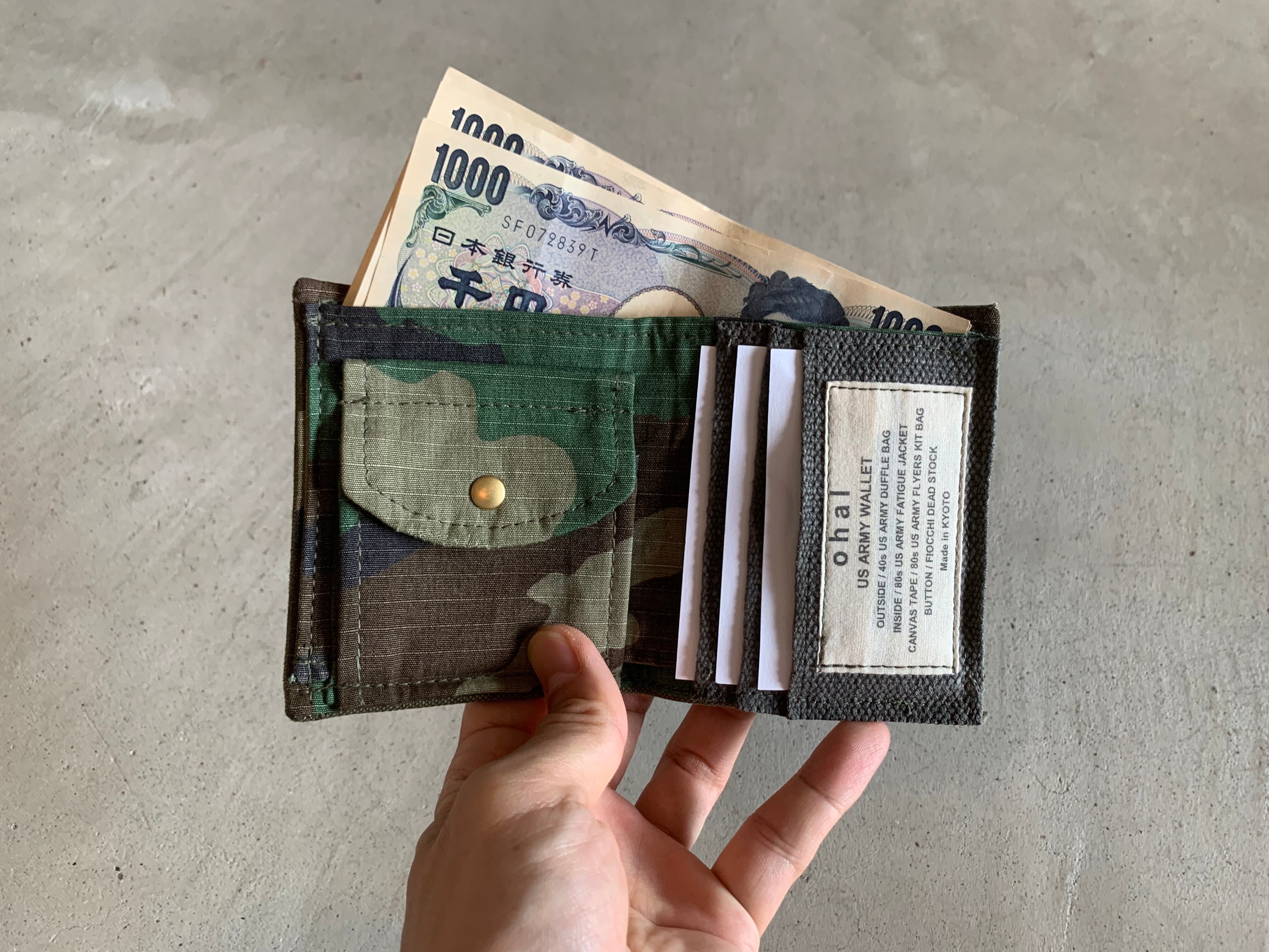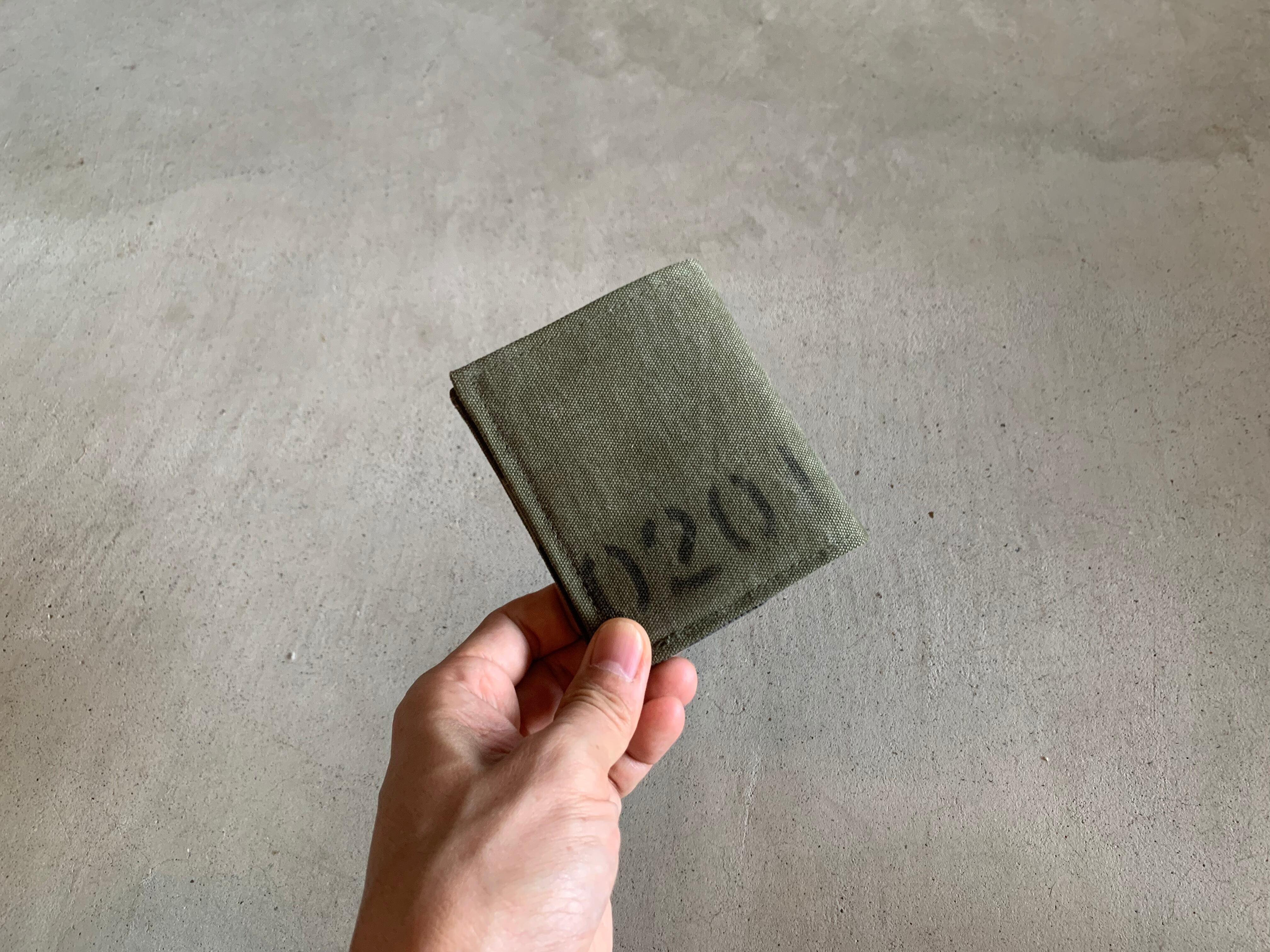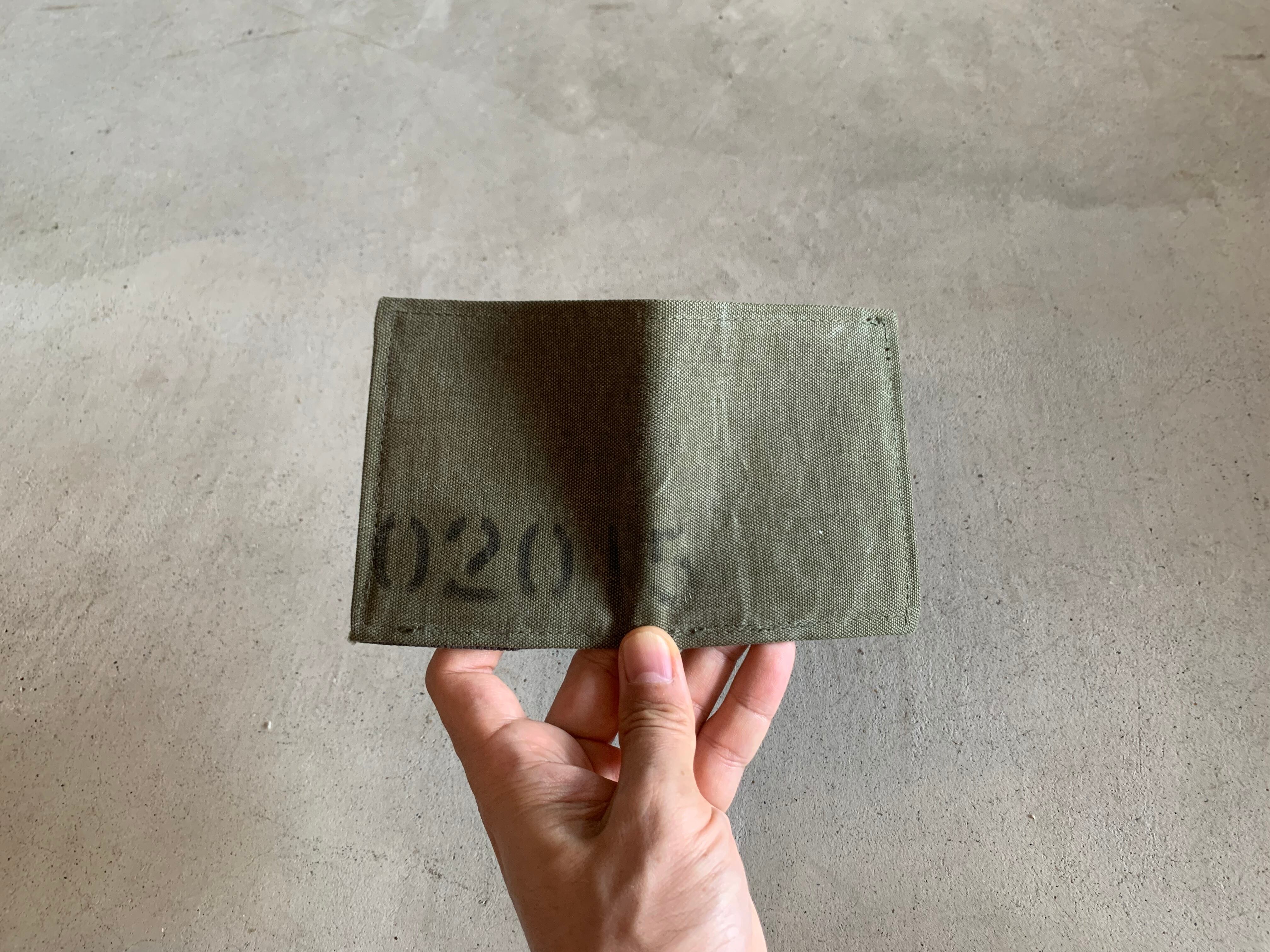 カード入れで使用しているキャンバステープは80年代、米軍にて使用されていたものです。運転免許証、クレジットカードなどが入るサイズです。