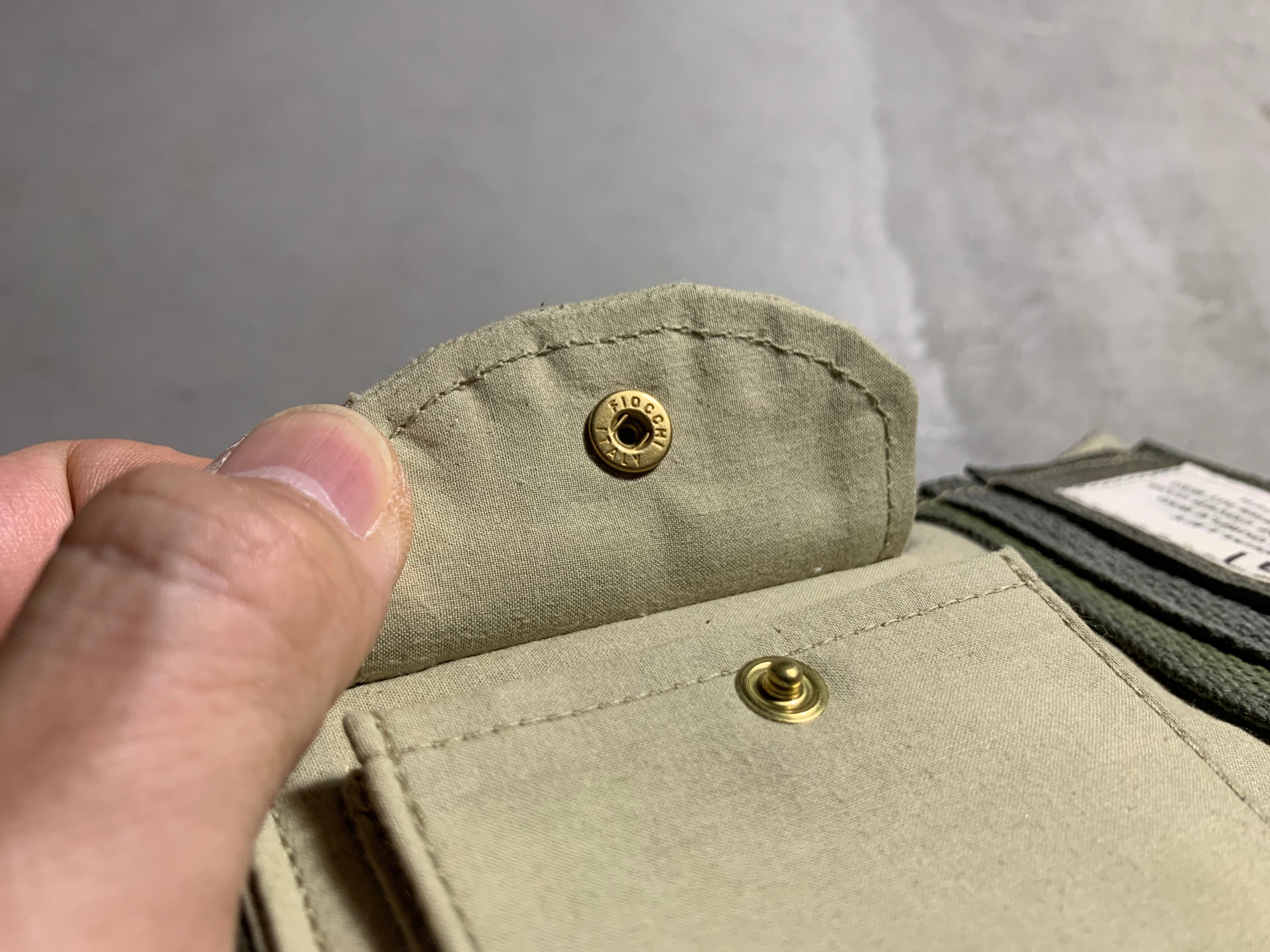 コインポケットのスナップボタンはフィオッキ。イタリア系の高級ブランドが好んで使用していたボタンですが、今は生産されておらず、貴重なデッドストックの物を使用しております。