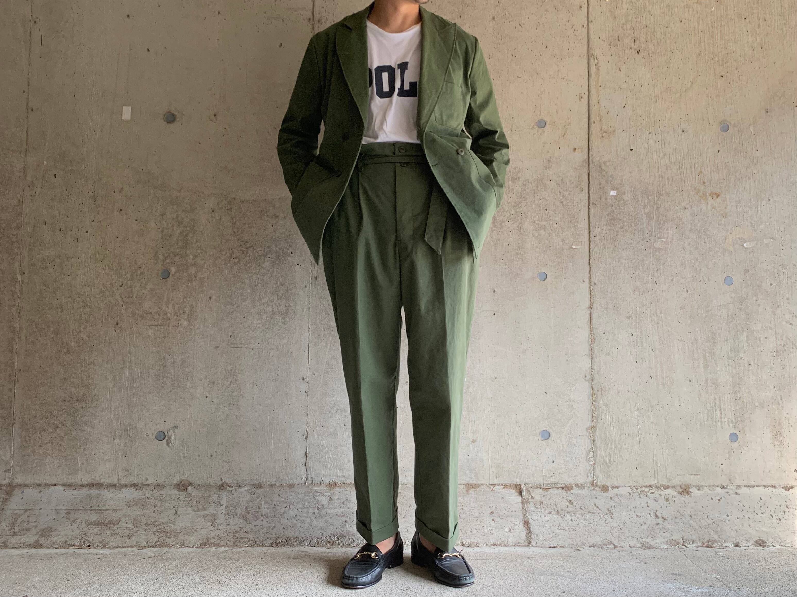 当店で販売している同じスリーピングバッグケースで作ったタックテーパードパンツとセットアップで着用してもグッドです。(全て違う個体で作成しているため、微妙に色が違います。完璧なセットアップをお求めの方は推奨いたしません。)