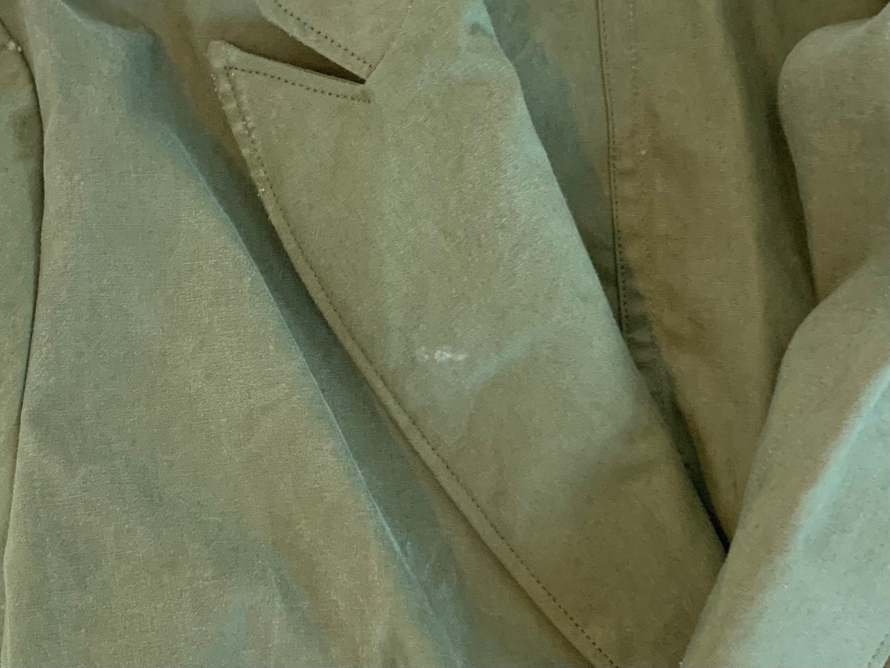 ラペル部分に白い擦れ跡、右袖内側に小傷がございます。それぞれ画像でご確認ください。