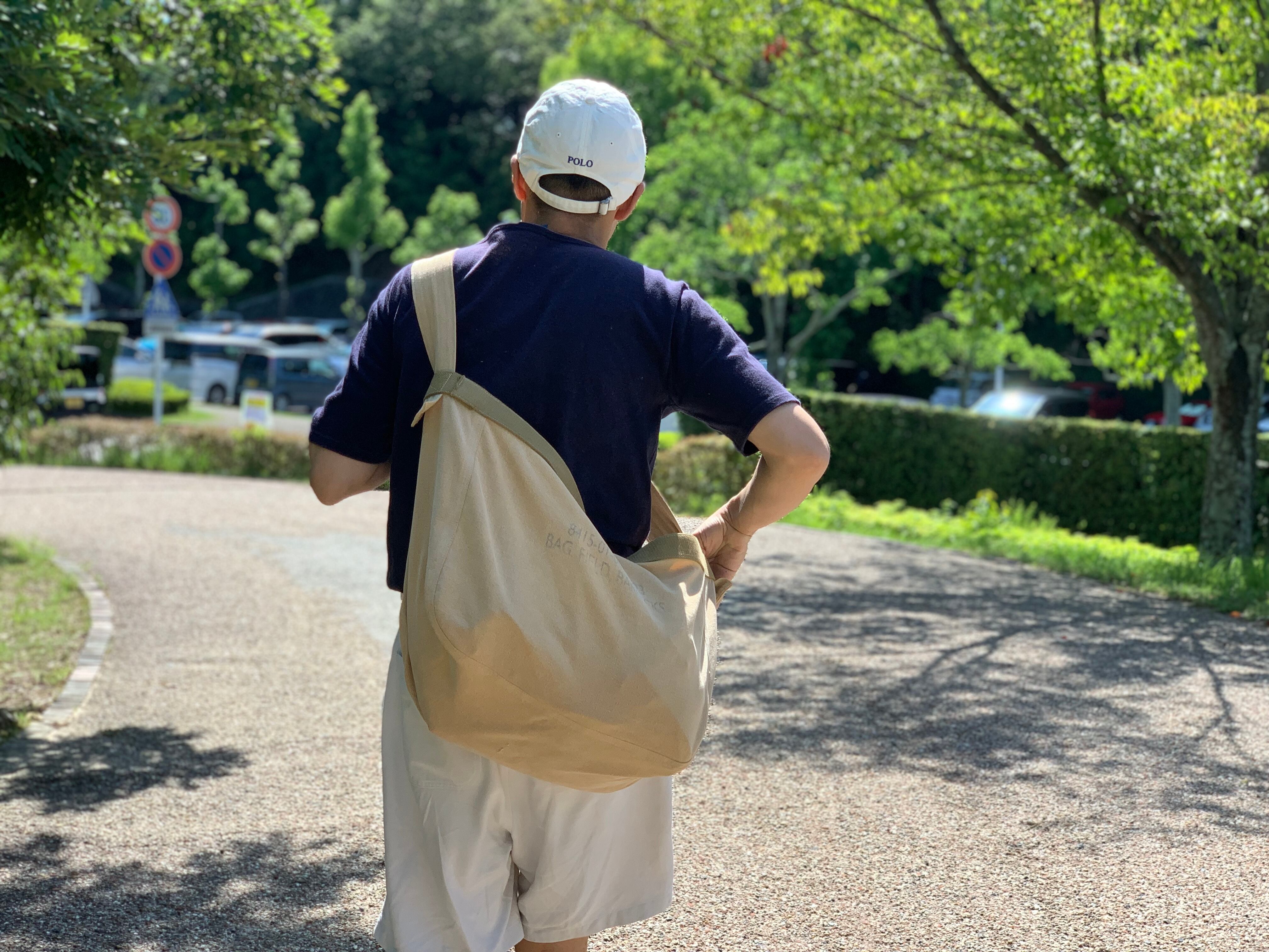 昔、新聞配達をする時に使用されていたバッグをイメージソースとして製作しましたので、かなり大きめで、荷物の出し入れがしやすいバッグです。