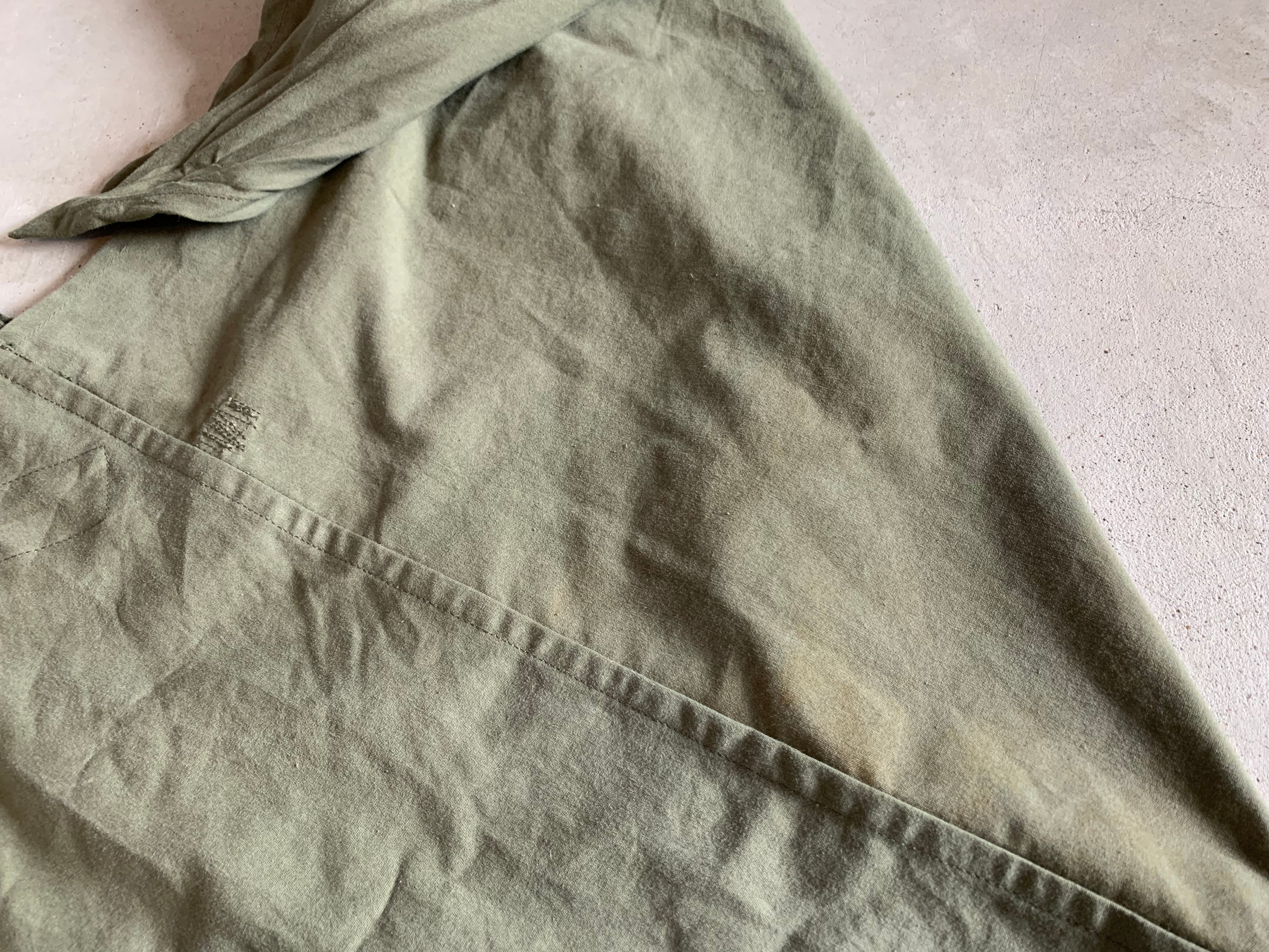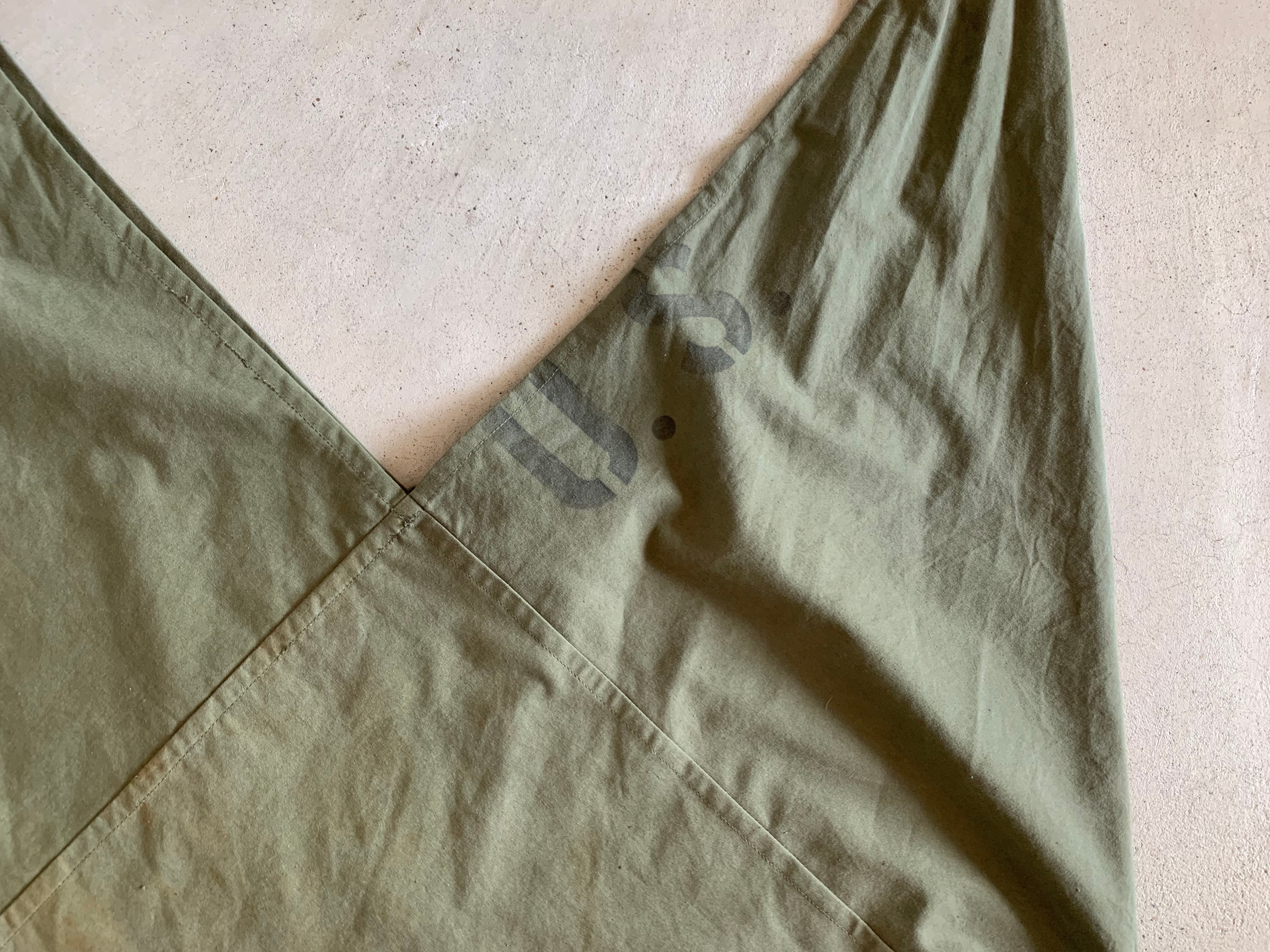 ボディーの生地は40年代、米軍のスリーピングバッグケースの生地。開口部に大きめの『US』のステンシルロゴが入っており、目を惹きます。全体的にシミや傷などがありますが、ヴィンテージの味としてそのまま使用しております。画像でご確認ください。