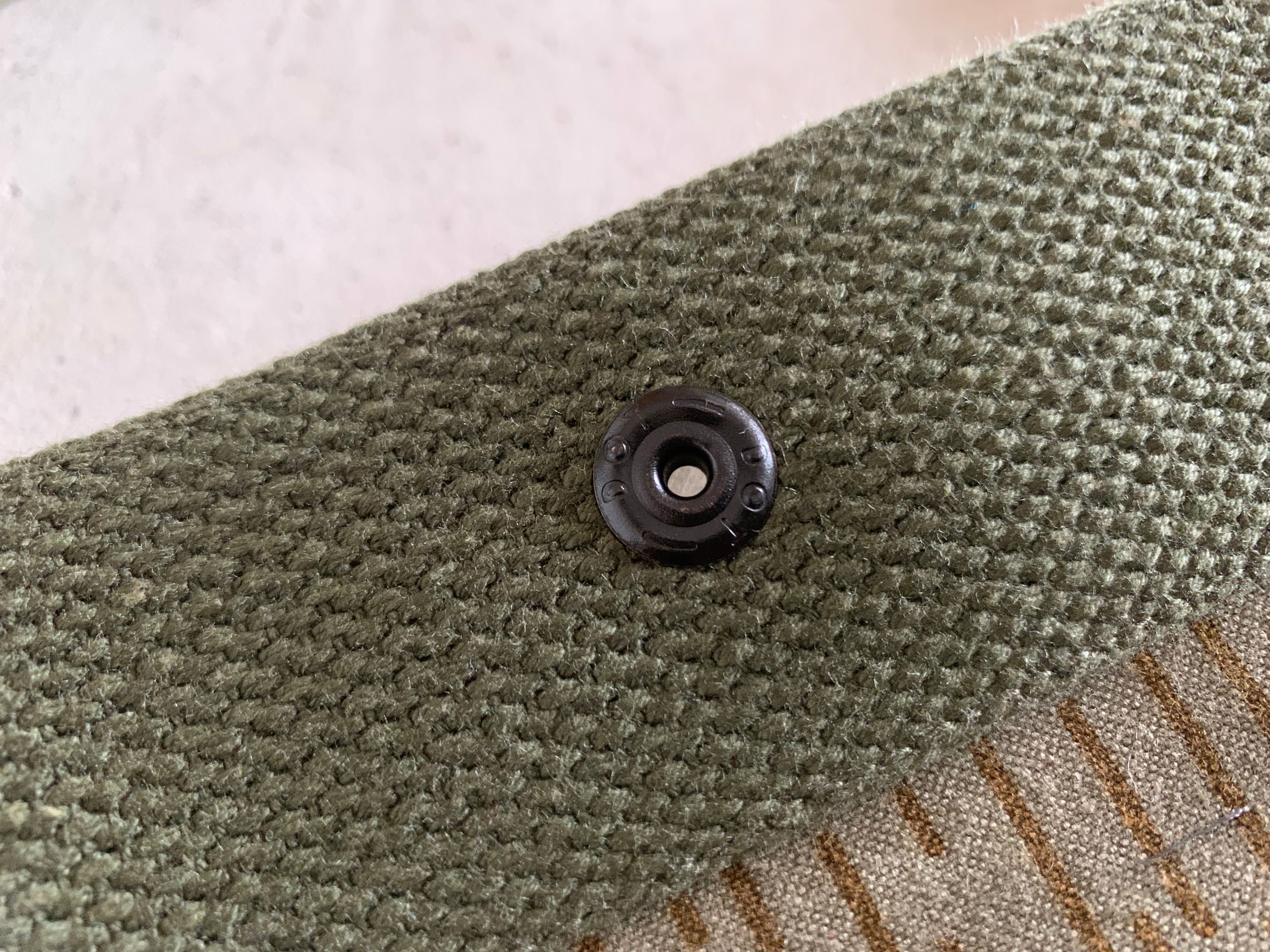 開口部についているスナップボタンは、70年代、米軍のデッドストックのドットボタンを使用してます。