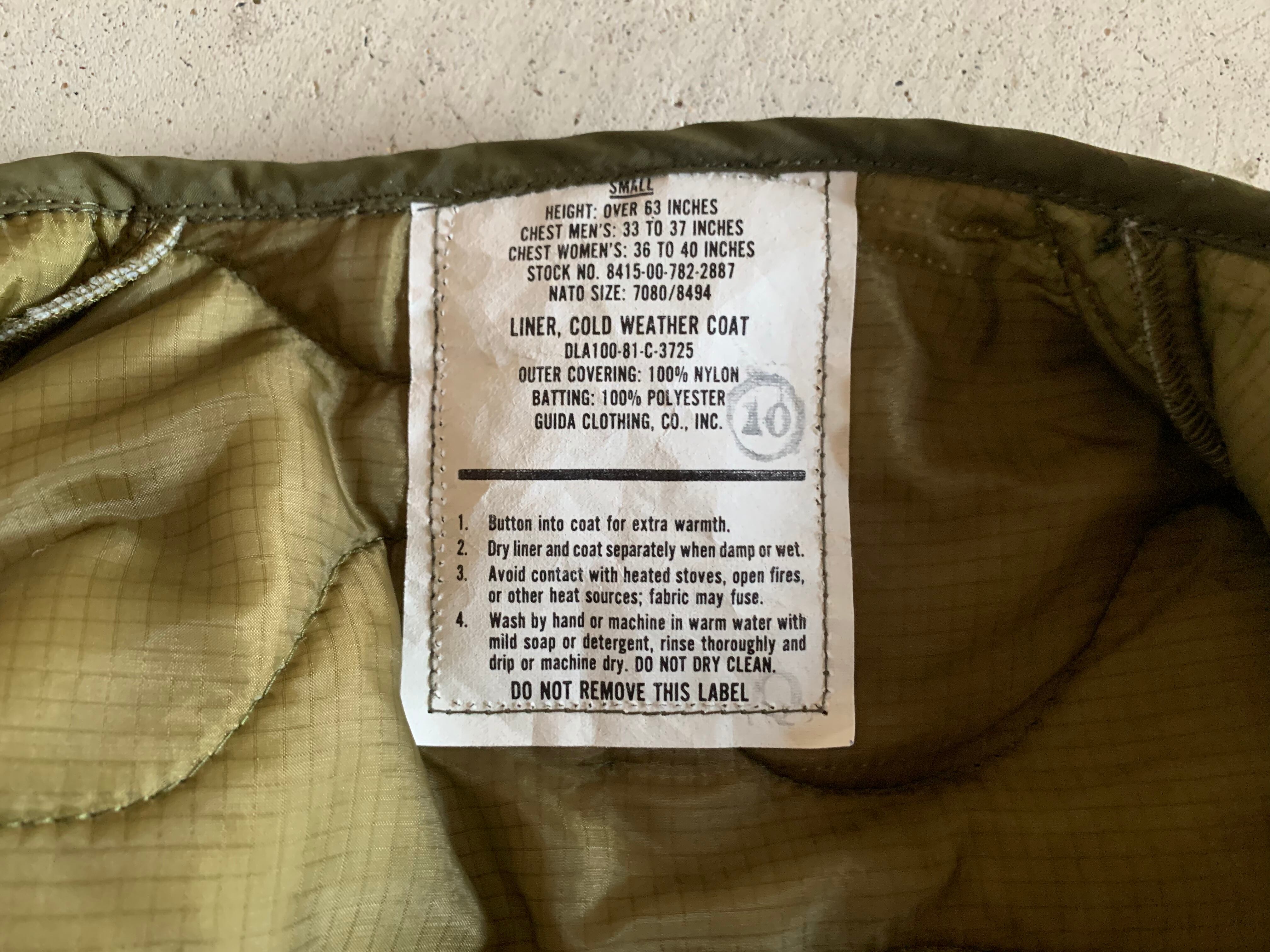 ボディーは米軍に1981年に納入された、ジャケットの中に取り付ける、キルティングライナー。
