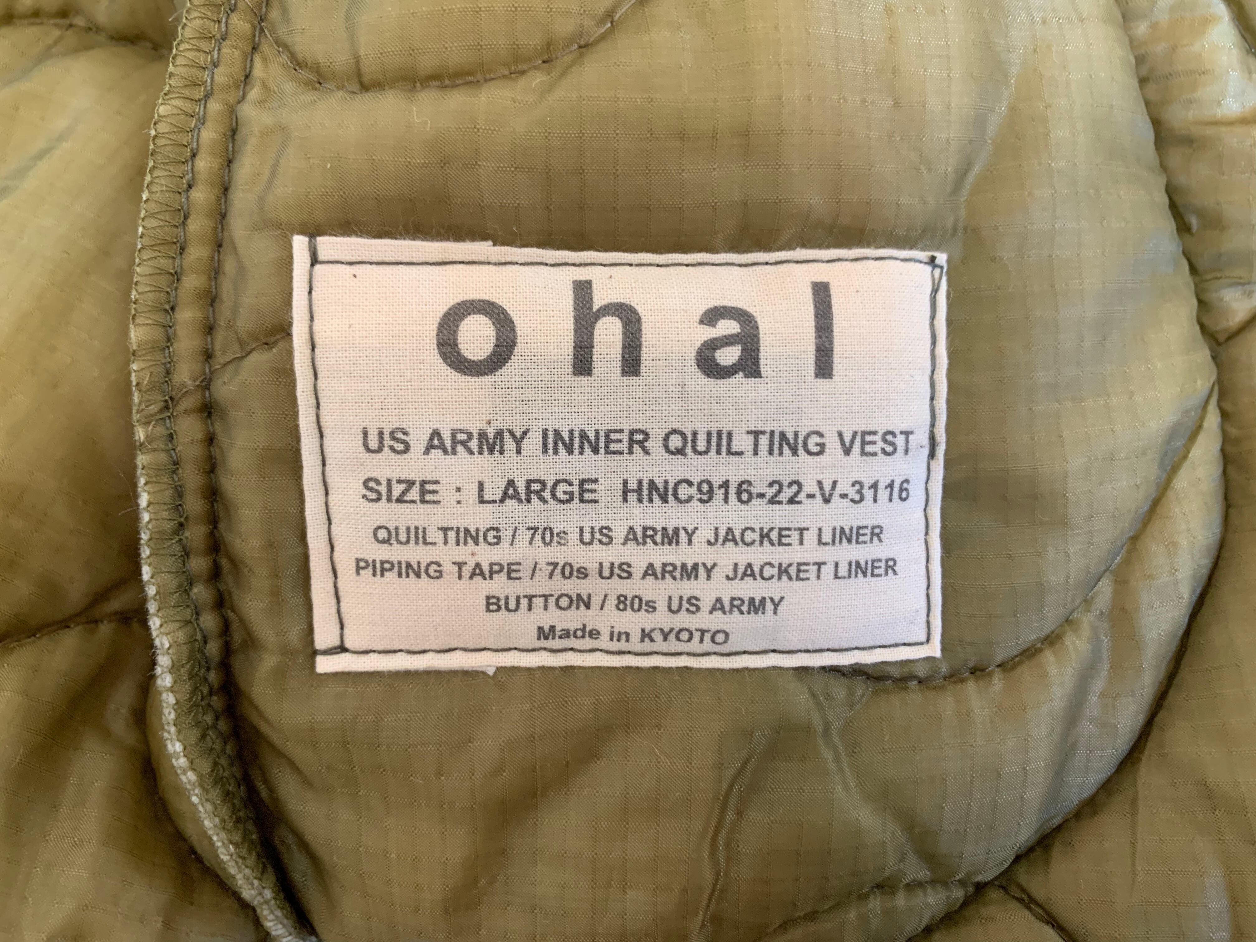 ミルスペックに記載されているサイズ表記はMEDIUMですが、解体してパターンを作り直しておりますので、ohalのタグに記載しているLARGEサイズをご参照ください。