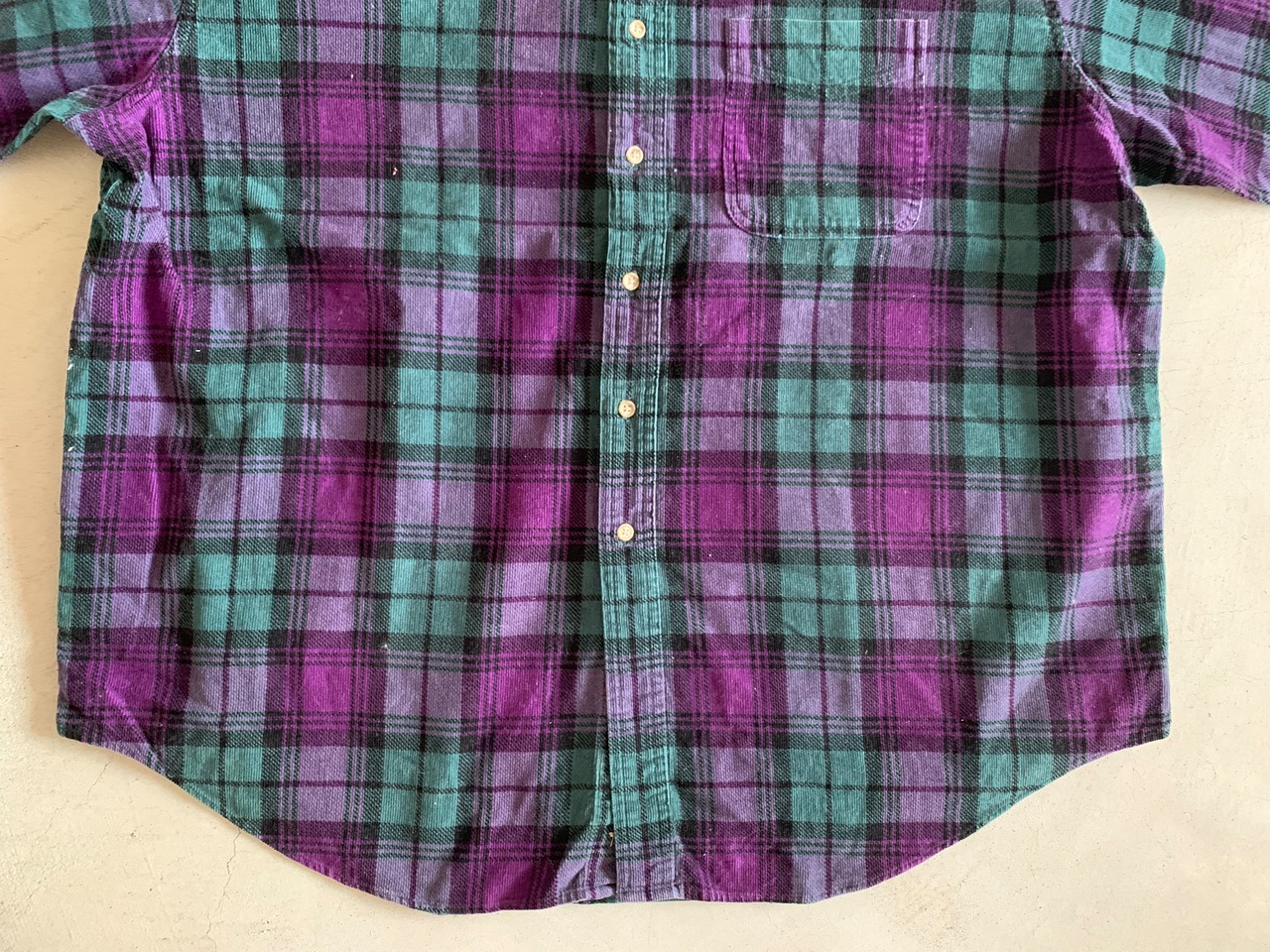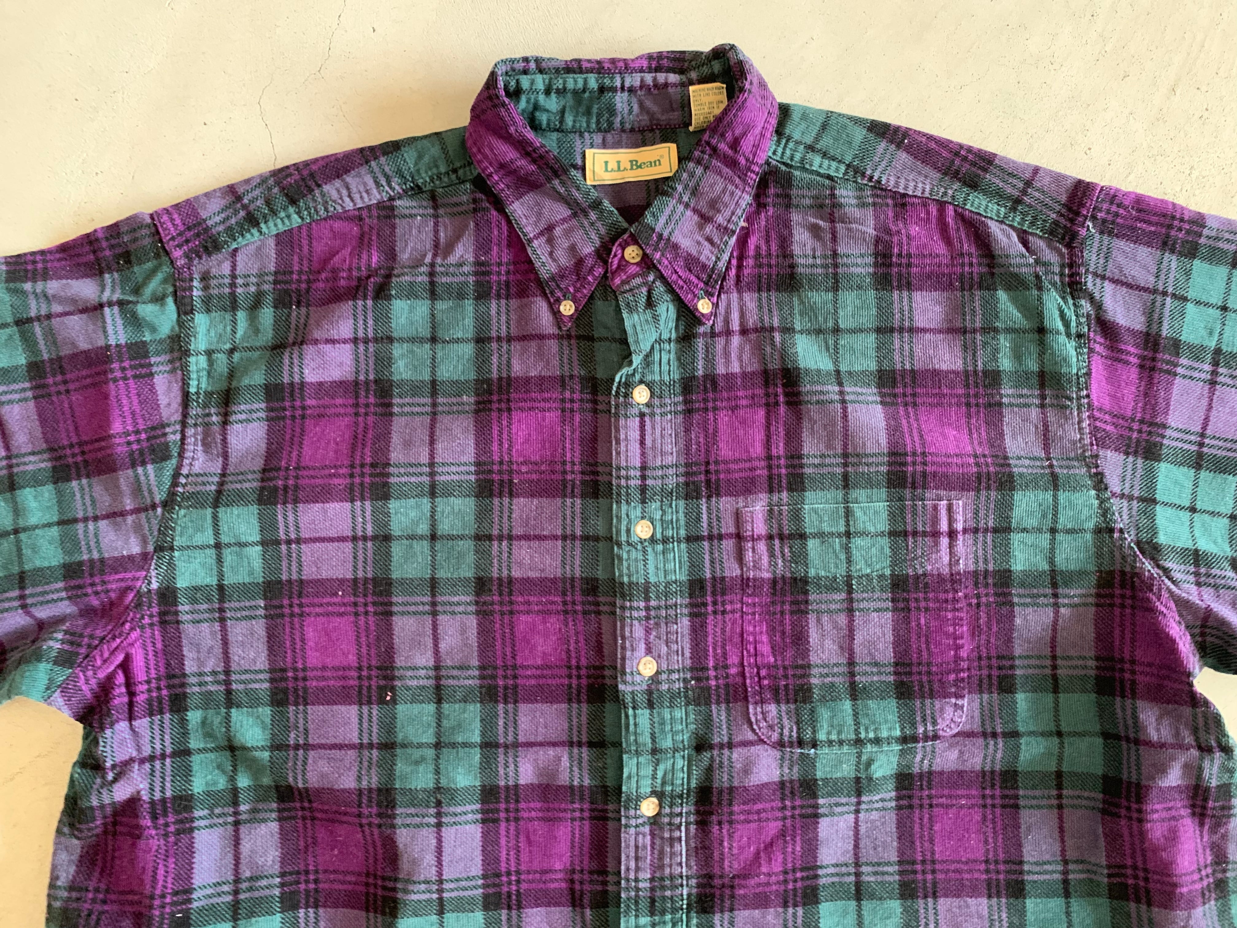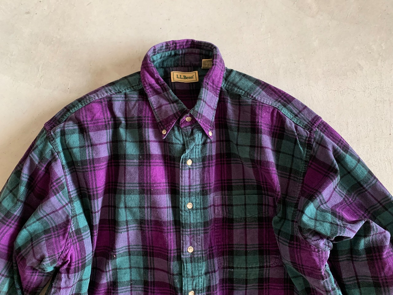 70年代〜80年代のタグがつく、L.L.Beanのコーデュロイチェックシャツ。ゆったりとしたサイズ感で、楽に着れる一枚。