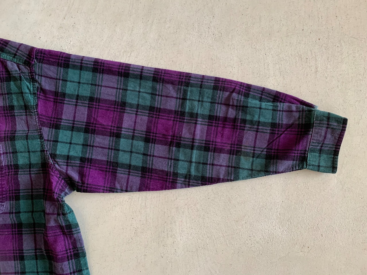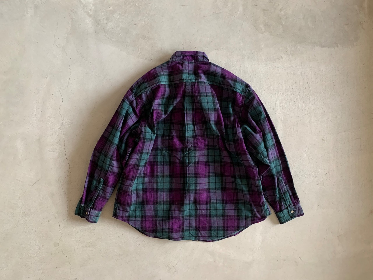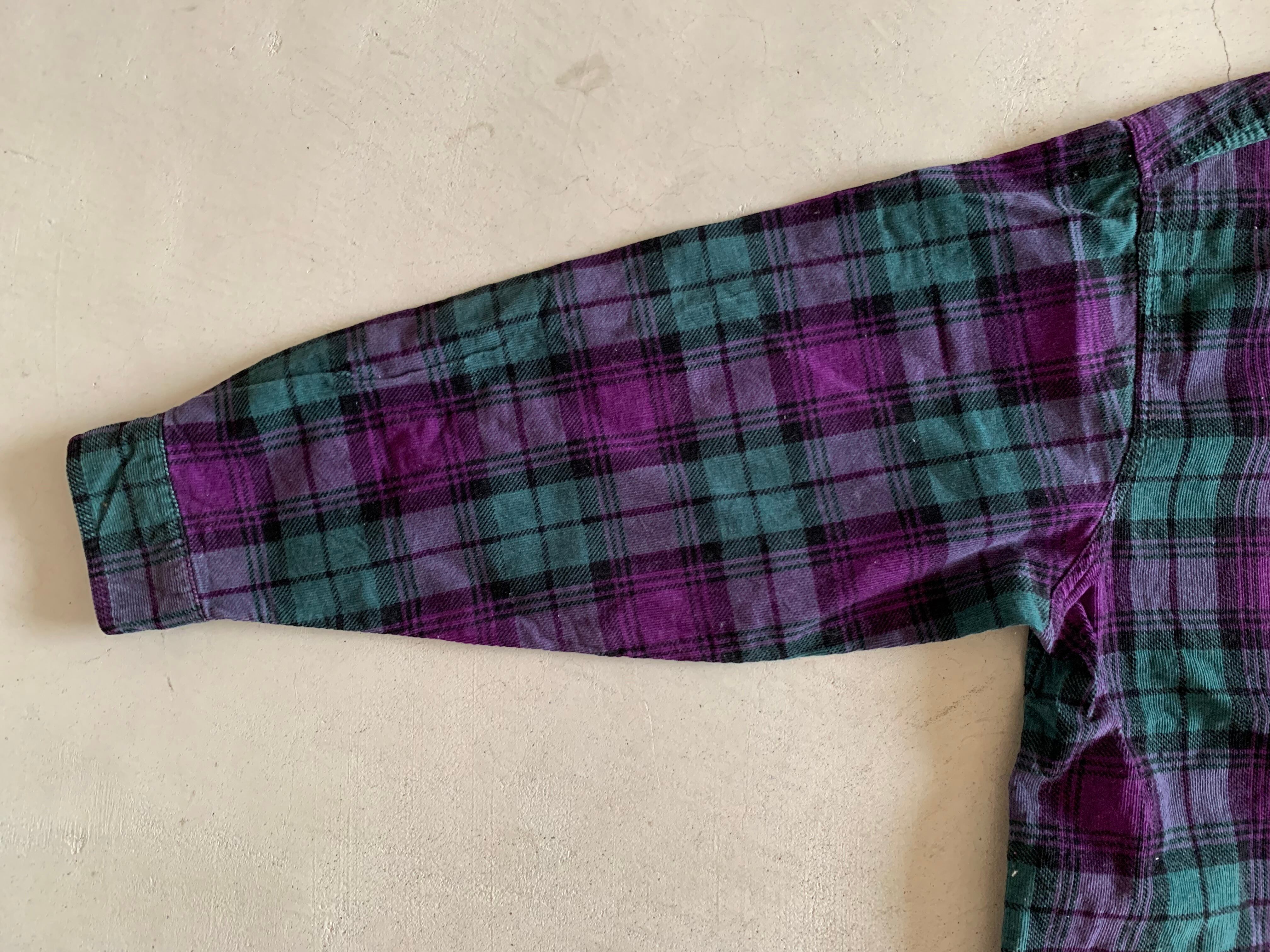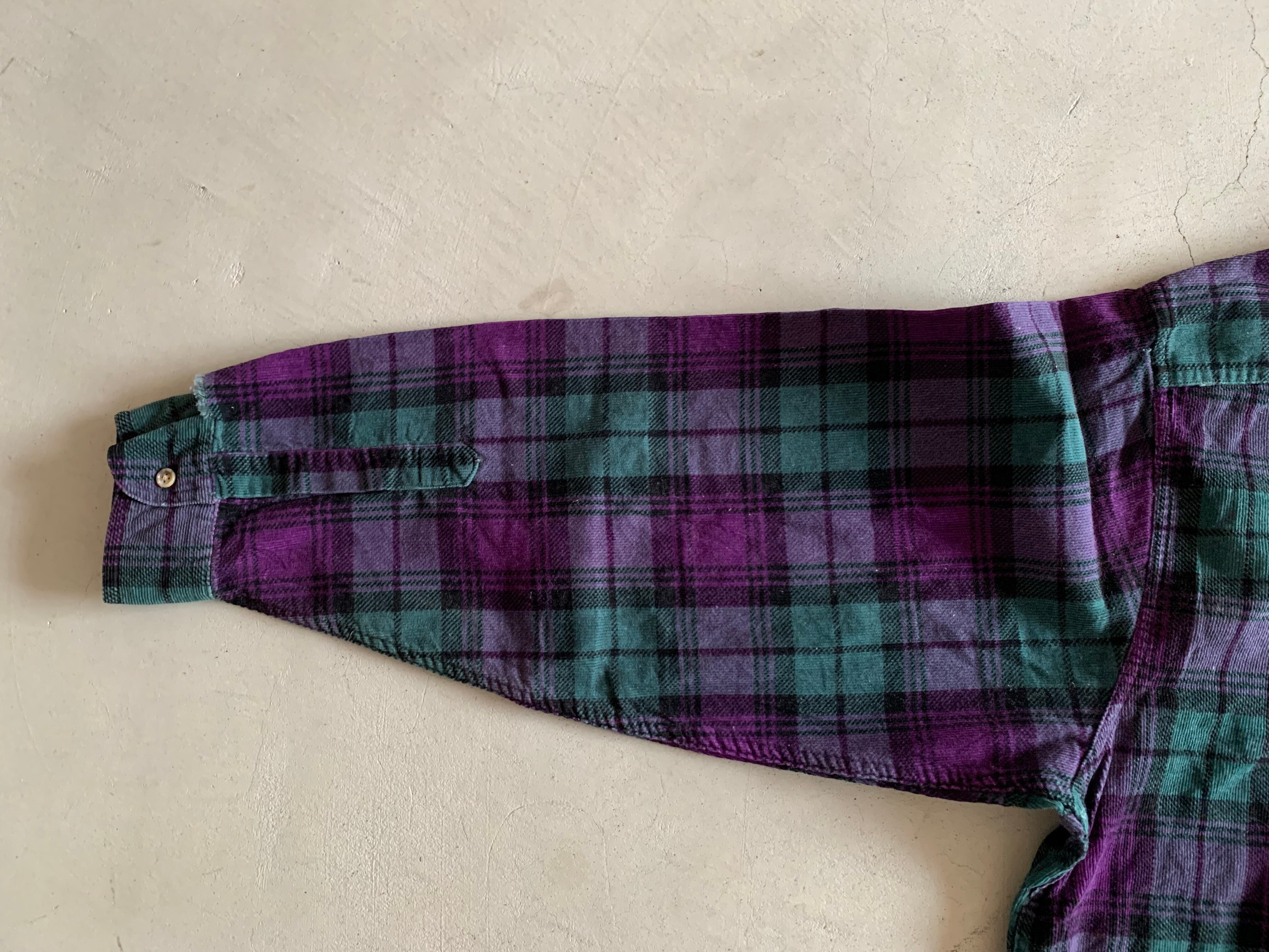 70年代〜80年代のタグがつく、L.L.Beanのコーデュロイチェックシャツ。ゆったりとしたサイズ感で、楽に着れる一枚。