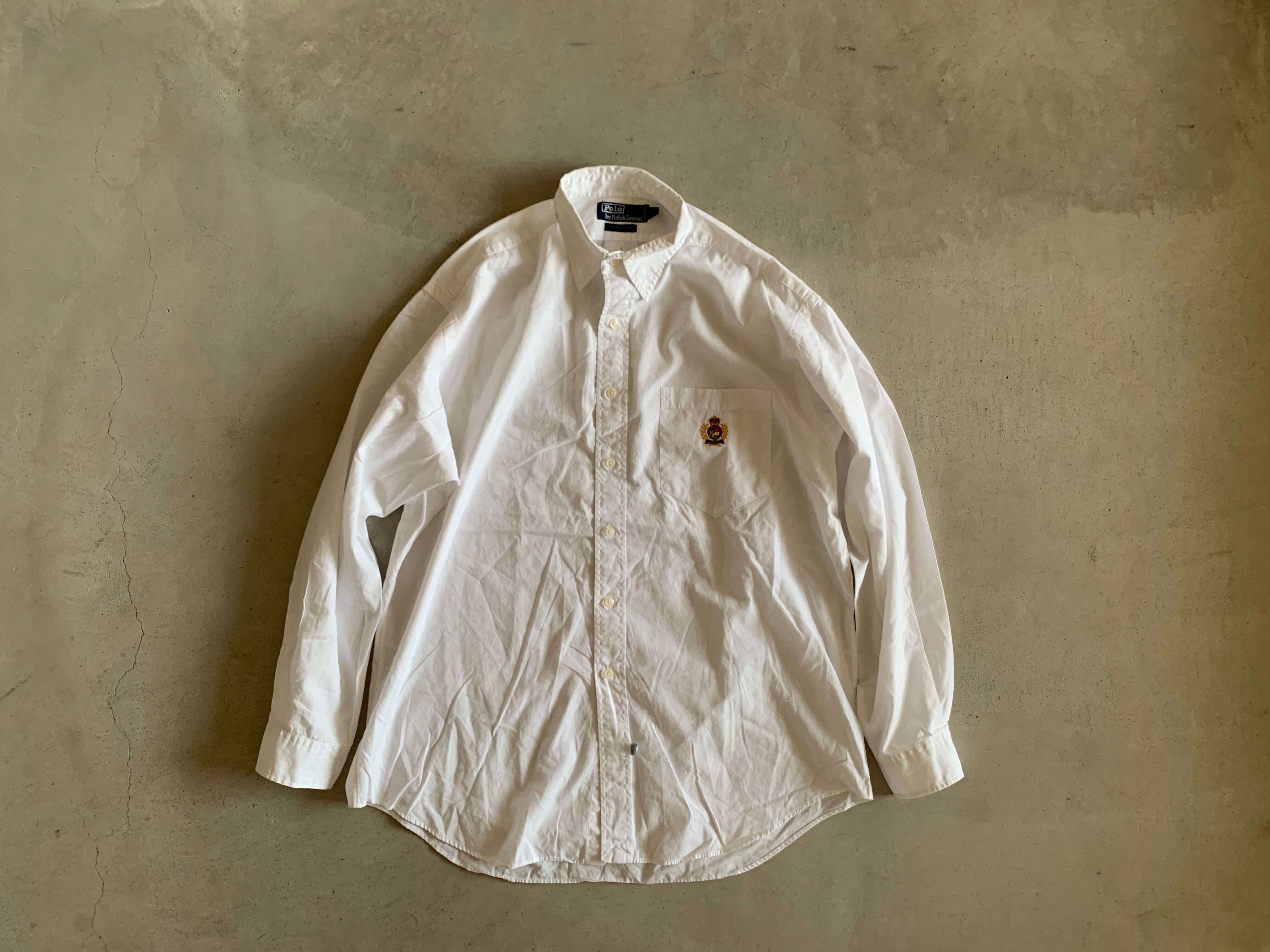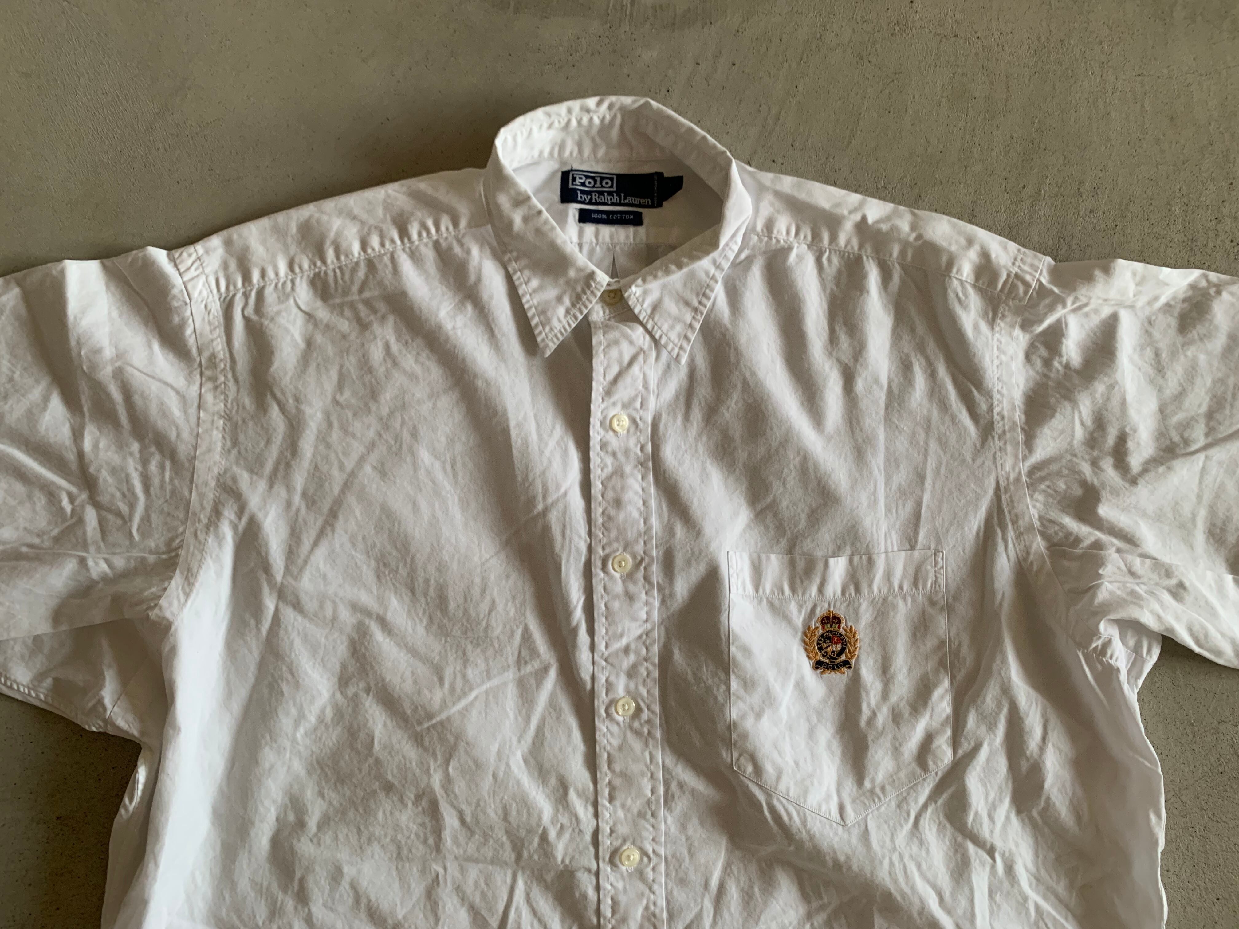コレクターも多い90年代のクレストロゴが刺繍されたホワイトシャツ。素材はブロード。袖口に赤い点のシミがあります。画像でご確認ください。