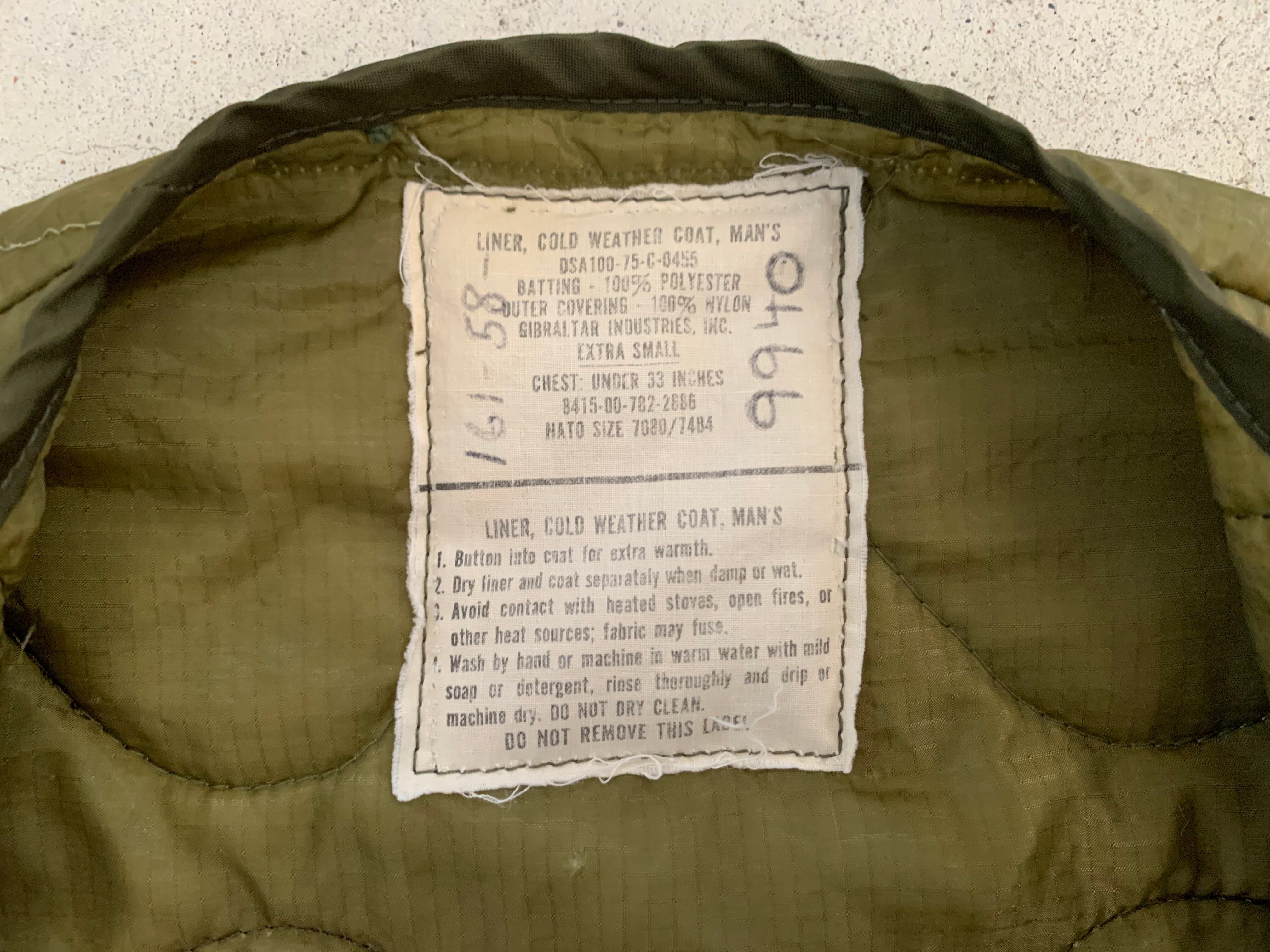 ボディーは米軍に1975年に納入された、ジャケットの中に取り付ける、キルティングライナー。
