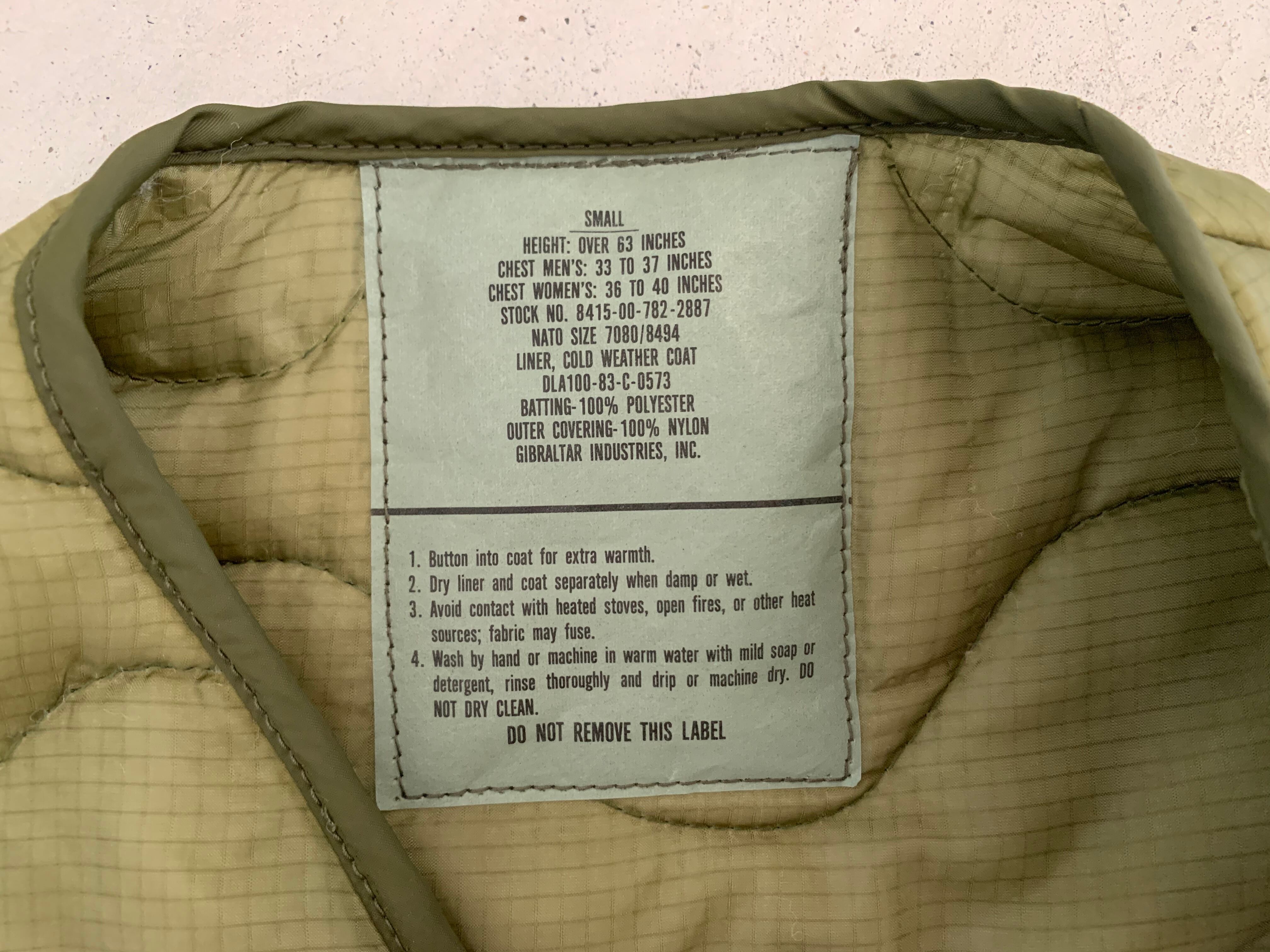 ボディーは米軍に1983年に納入された、ジャケットの中に取り付ける、キルティングライナー。