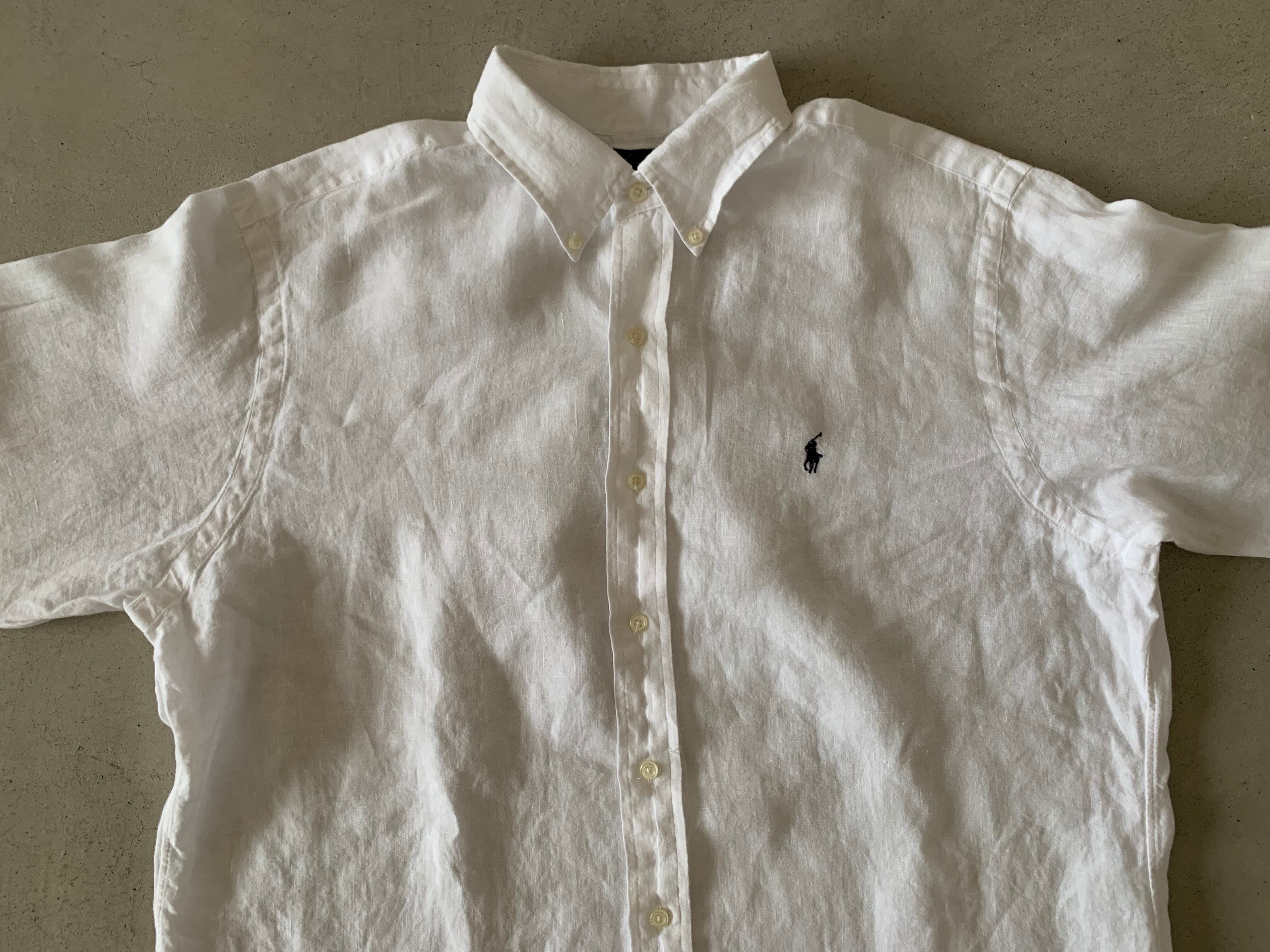 ラルフローレンのオールドタグがつく、リネン100%のホワイトシャツ。