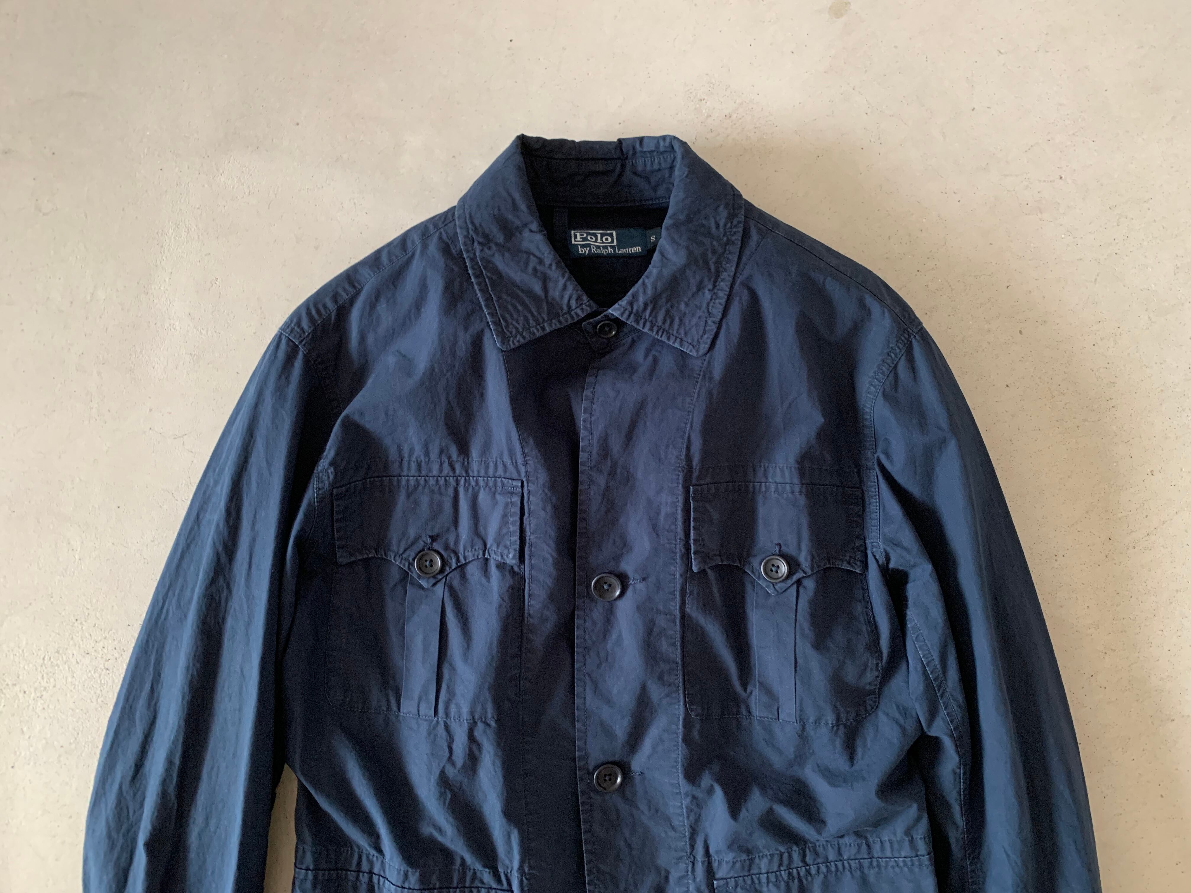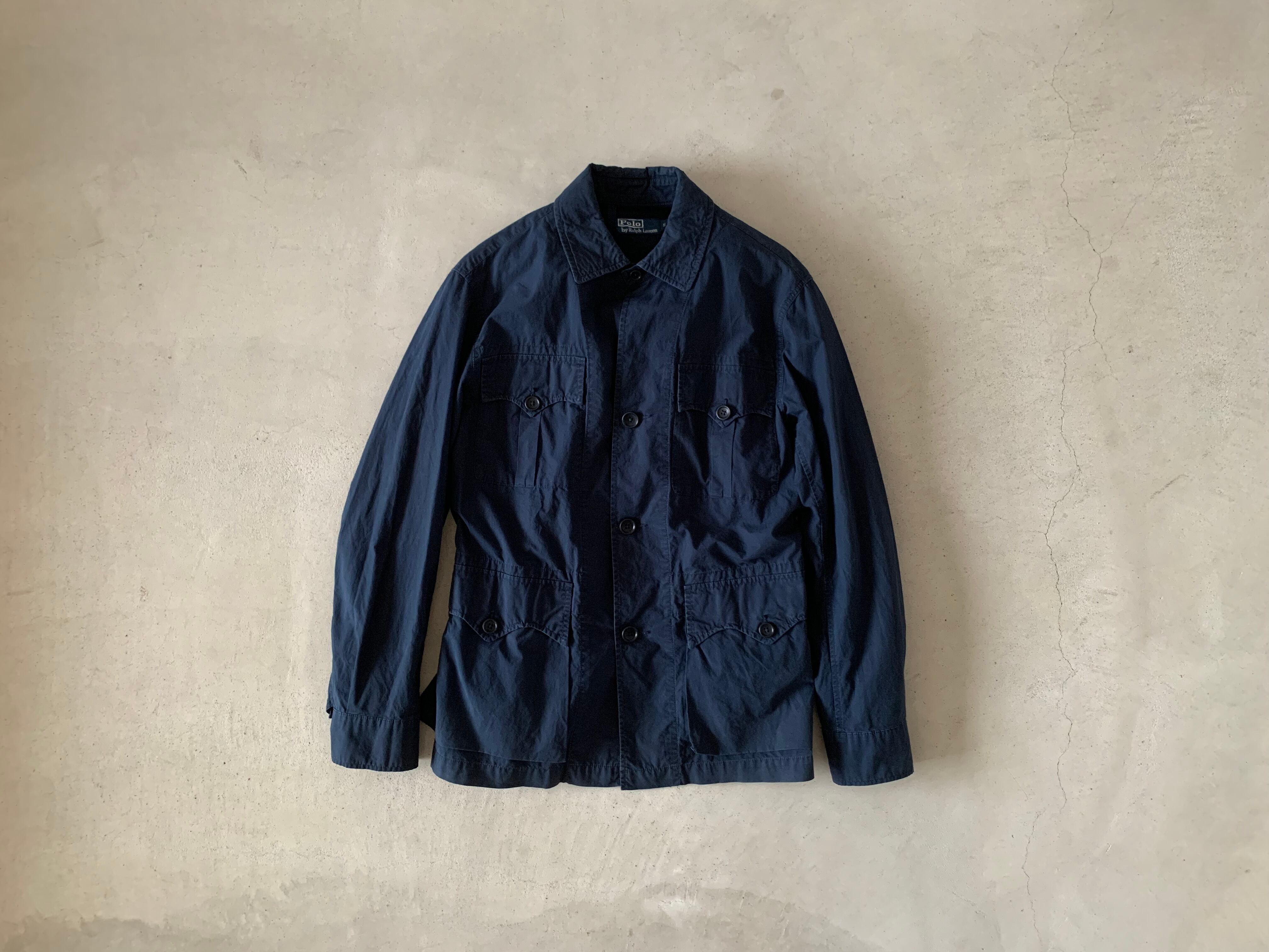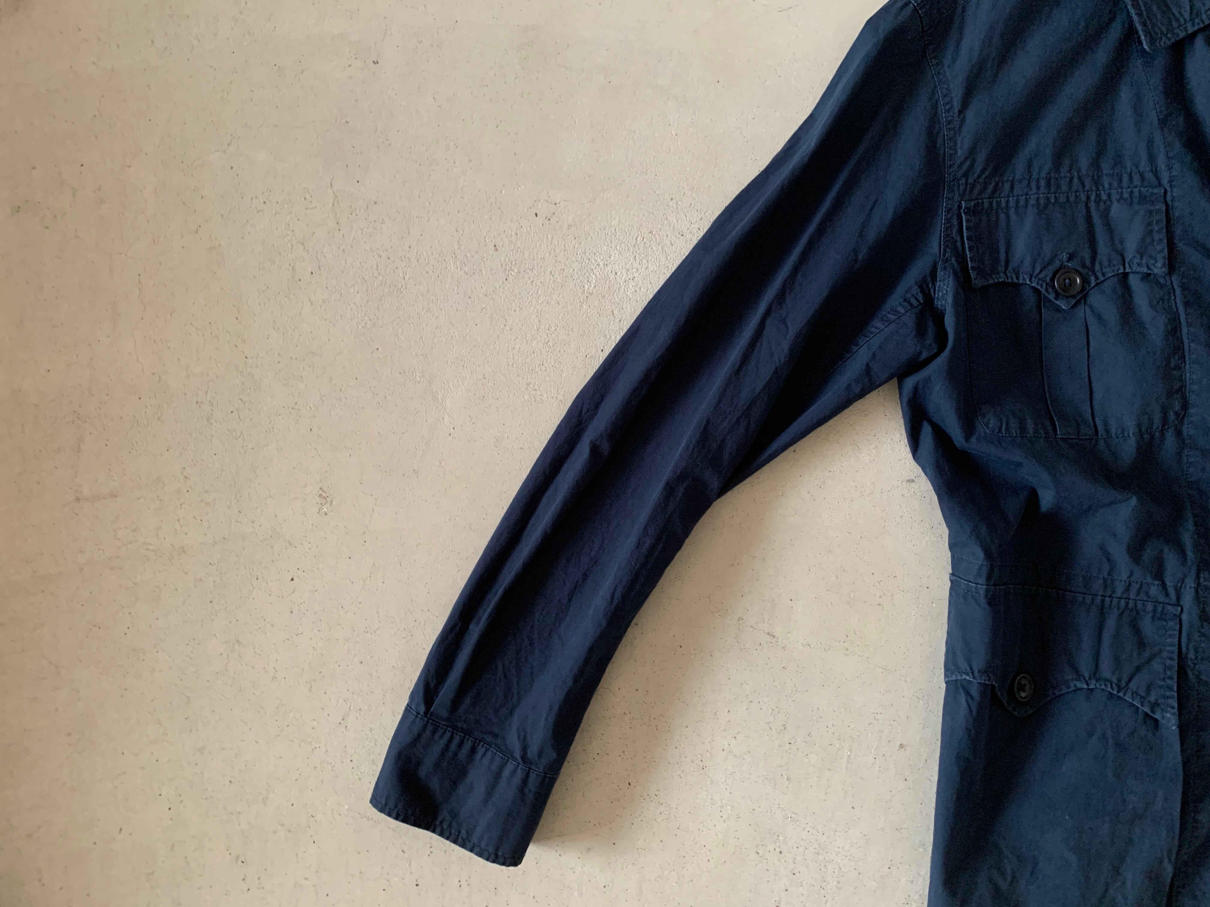 オールドタグのつく、ラルフローレンのシャツ生地のサファリジャケット。カラーはダークネイビー。