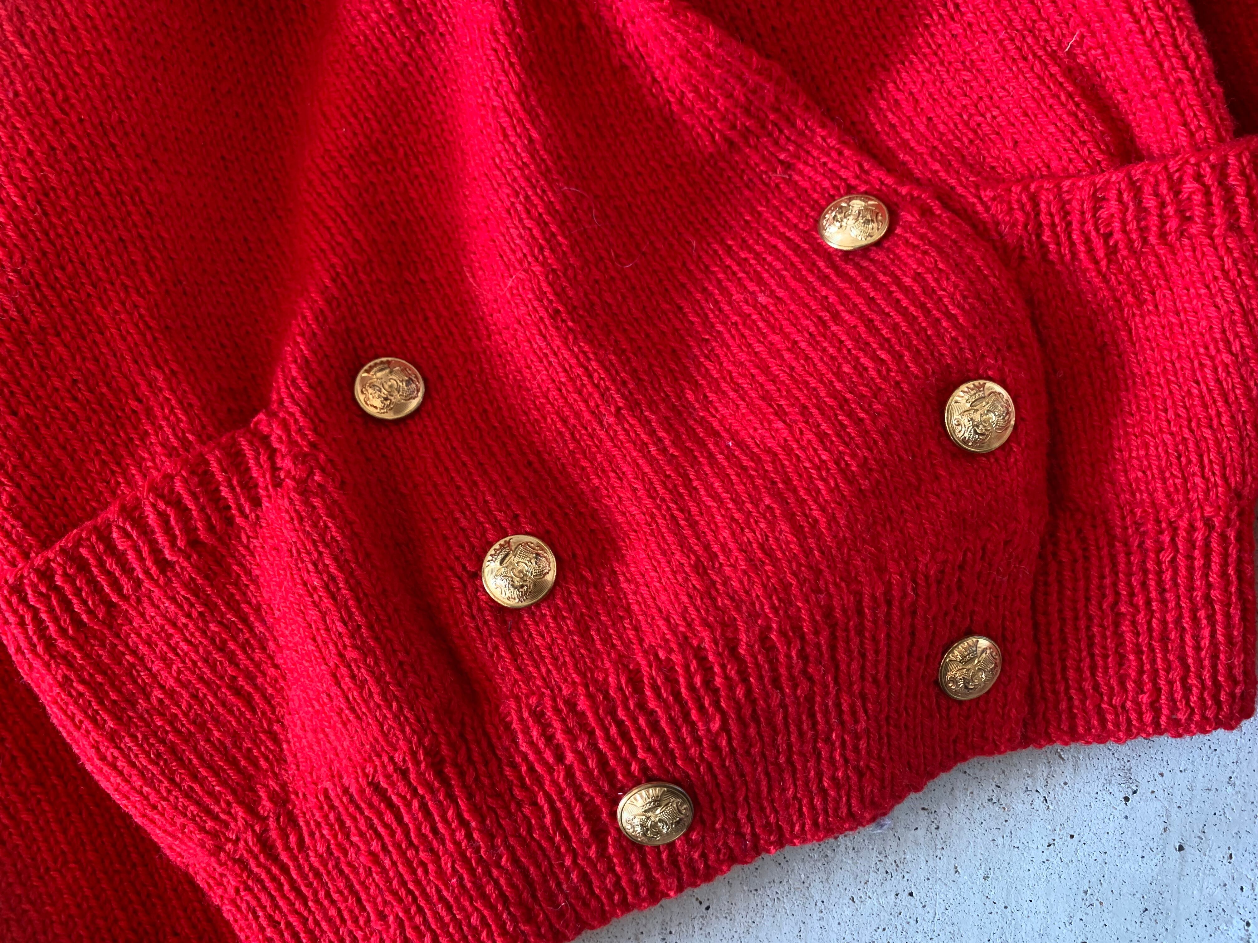 ラルフローレンのウール100%のダブルのカーディガン。ショートな丈感で、ハイウエストなコーデと相性良いかと。こちらはラルフローレンが中国にニット工場を持つ前の、英国でつくられたもの。Made in Great Britainがつくタグはなかなかレアな逸品かと。