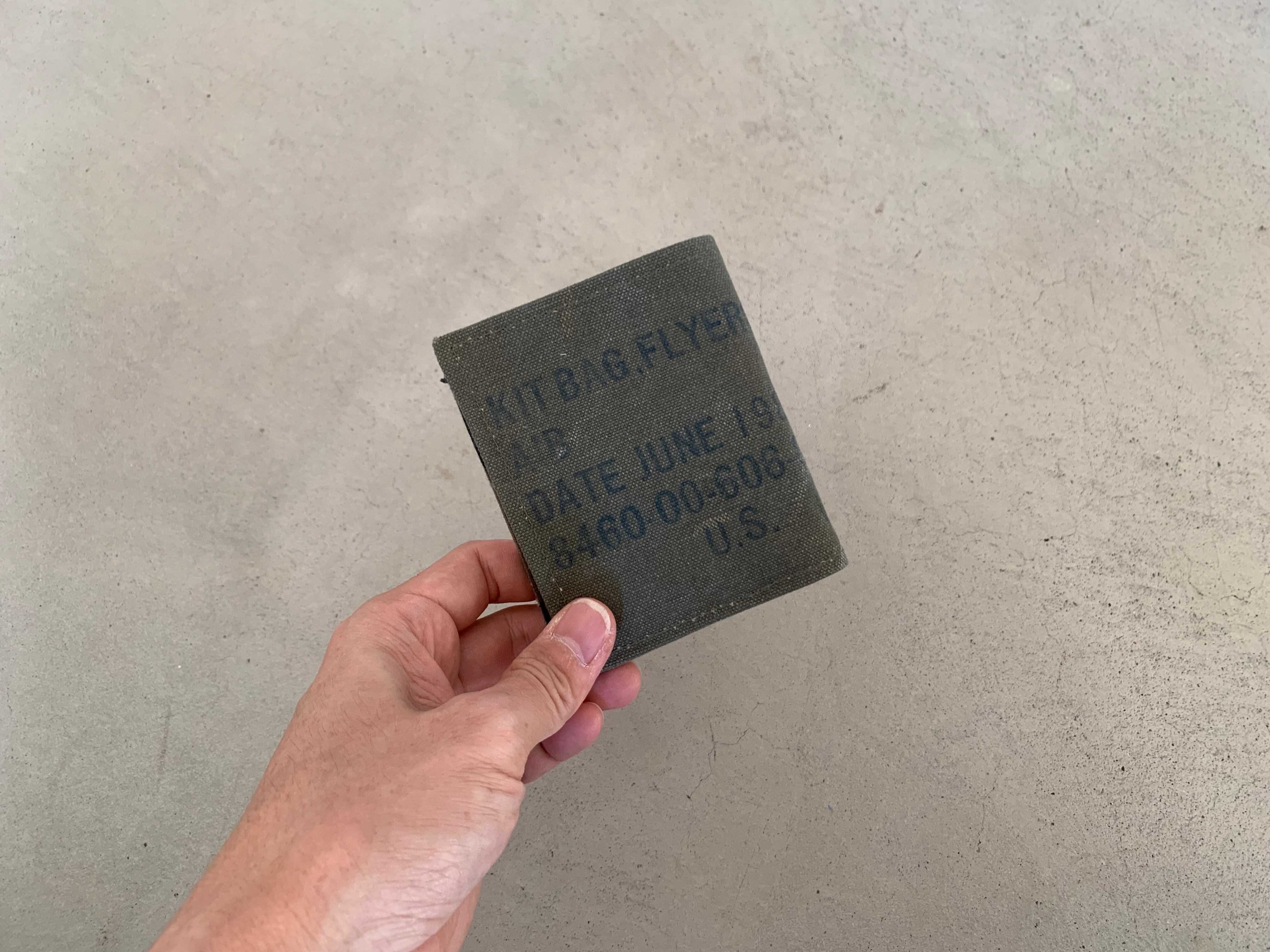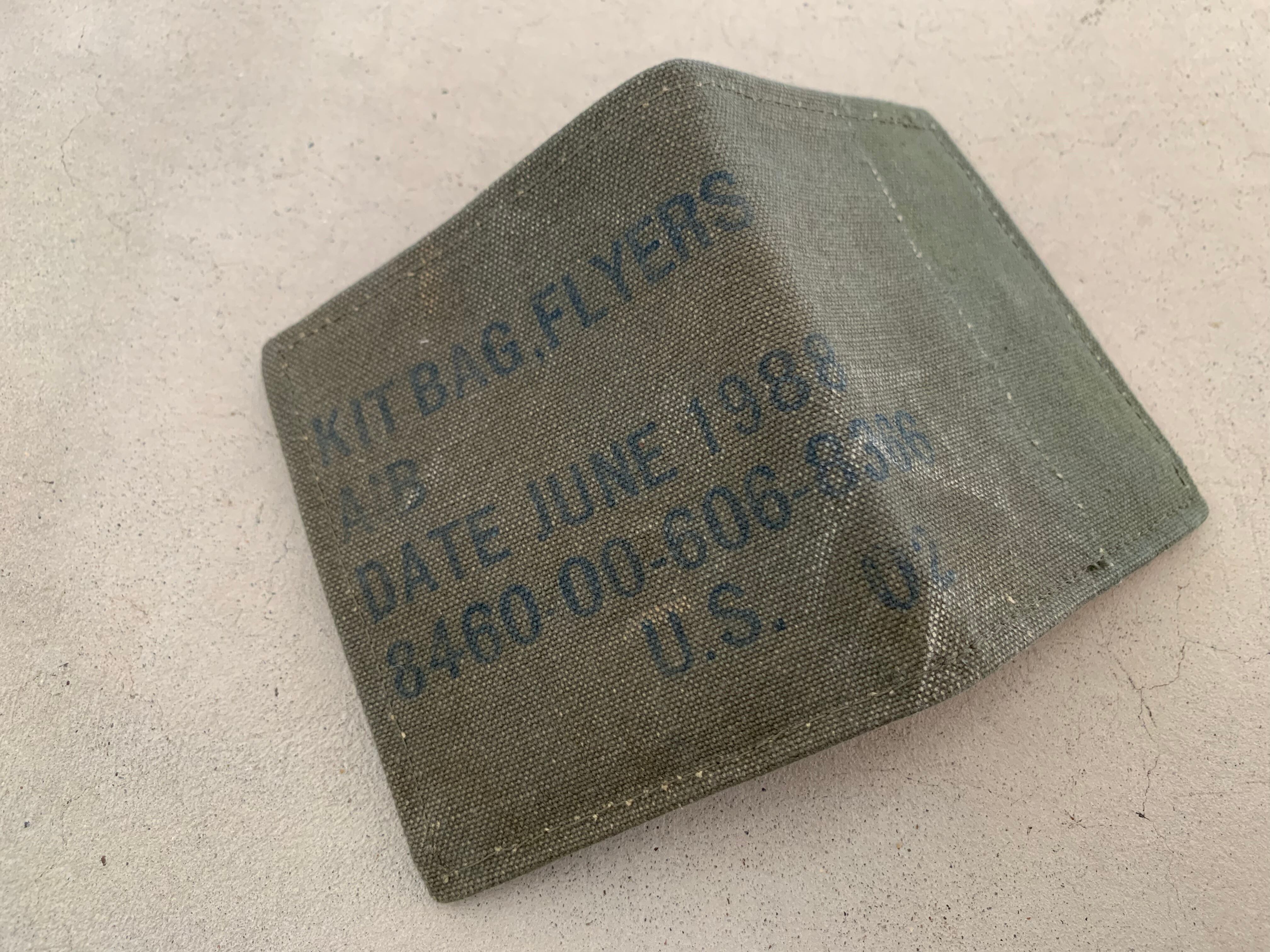 カード入れで使用しているキャンバステープは80年代、米軍のフライヤーズキットバッグから取り出しています。