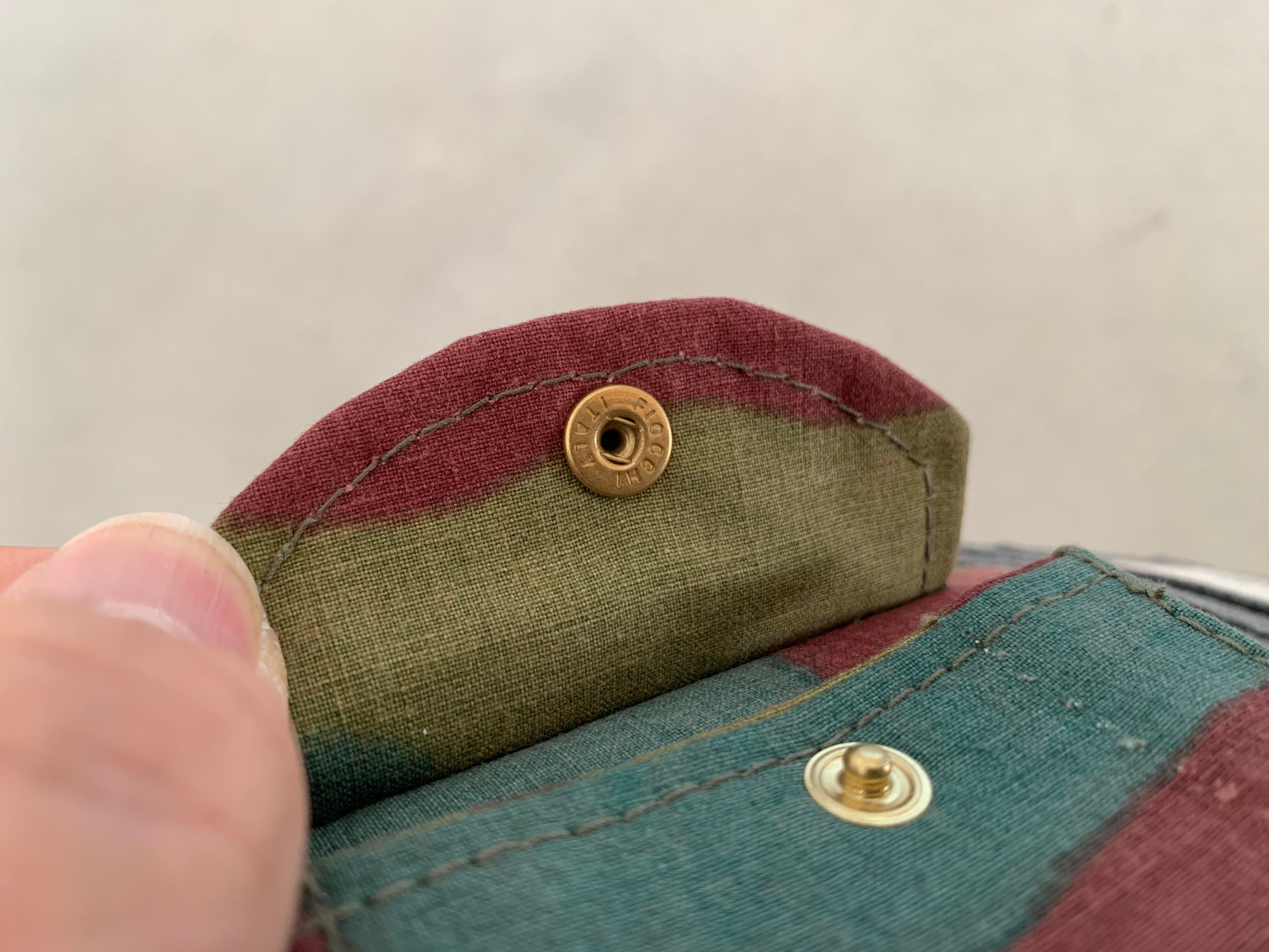 コインポケットのスナップボタンはフィオッキ。イタリア系の高級ブランドが好んで使用していたボタンですが、今は生産されておらず、貴重なデッドストックの物を使用しております。